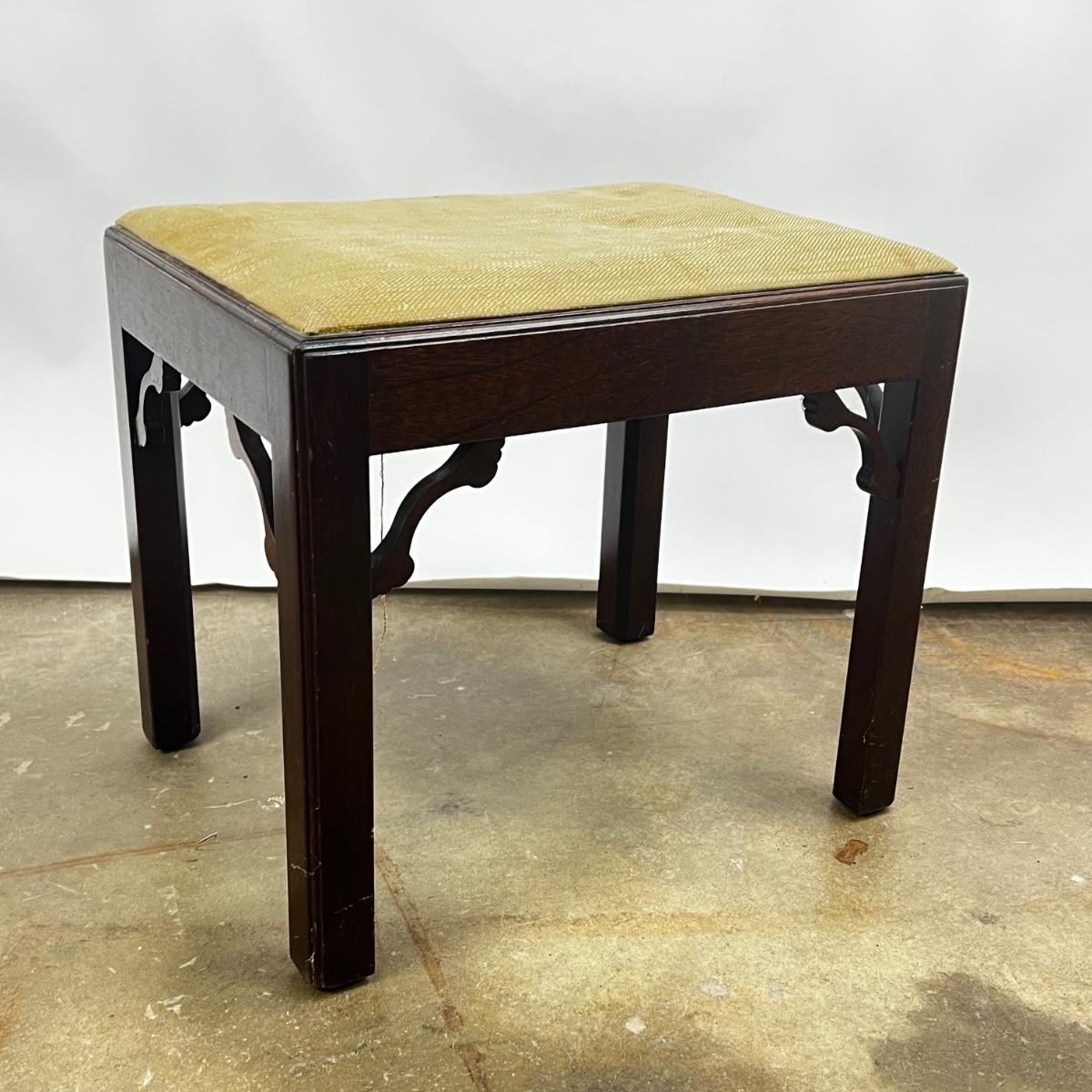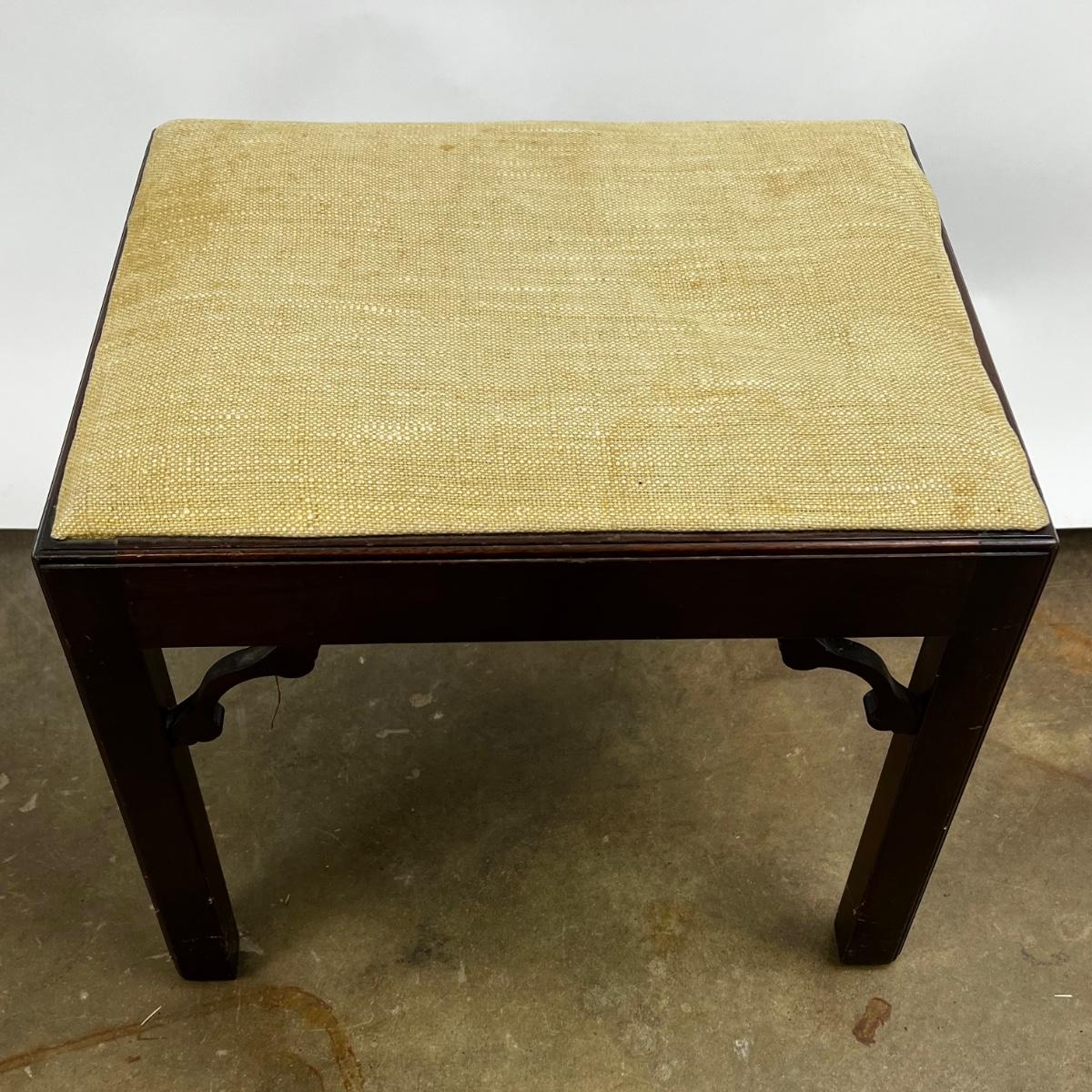 1463 Mahogany Chippendale Style Bench with Linen Seat