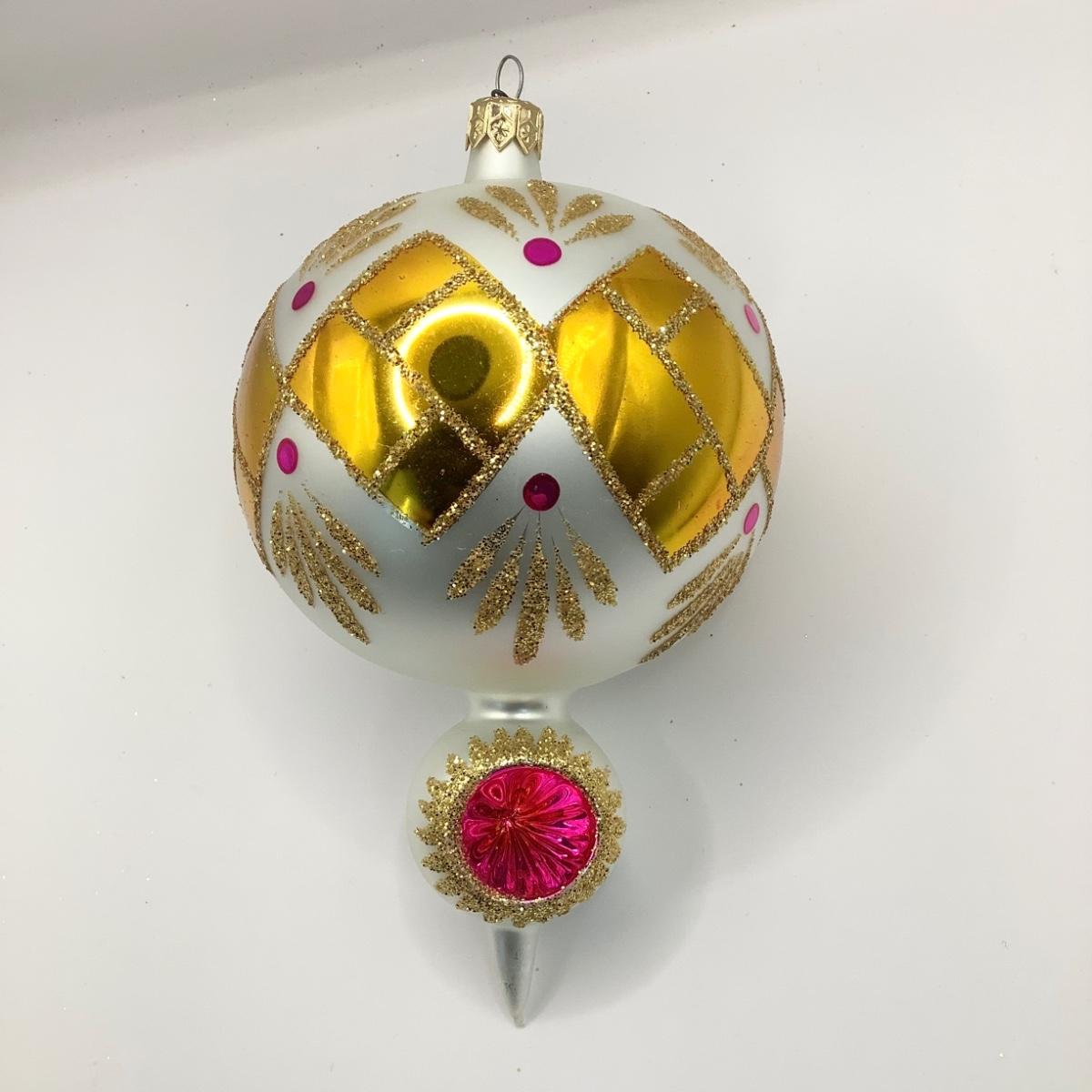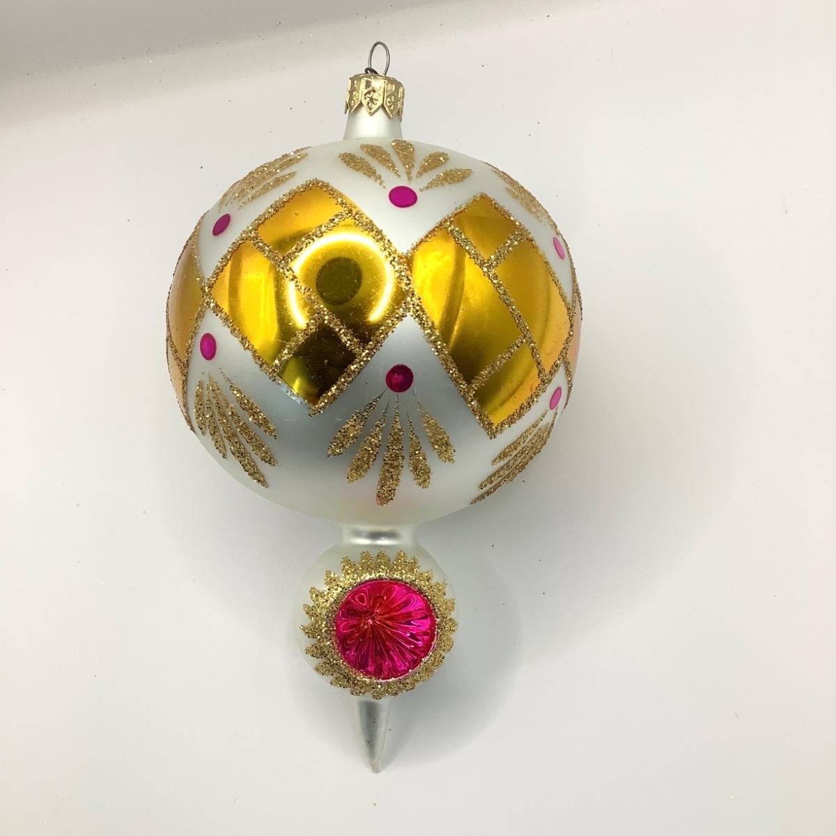 1464 Christopher Radko Large White and Pink Ball Glass Ornament