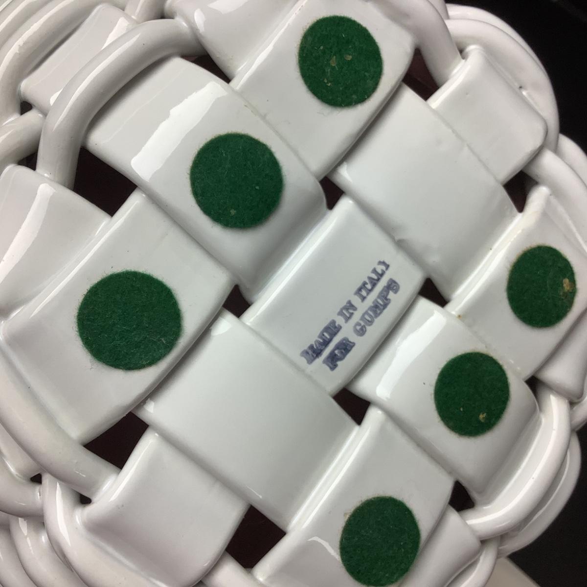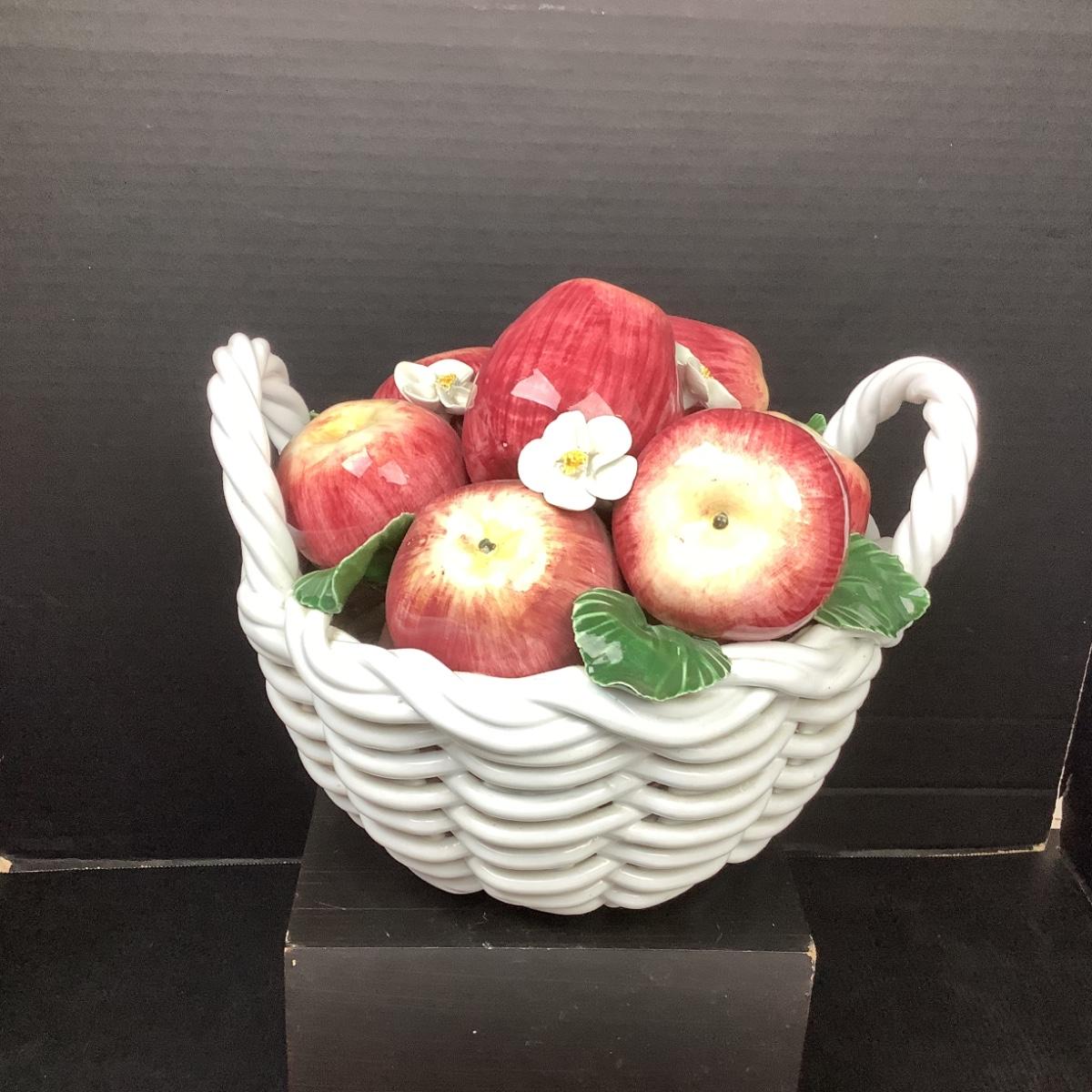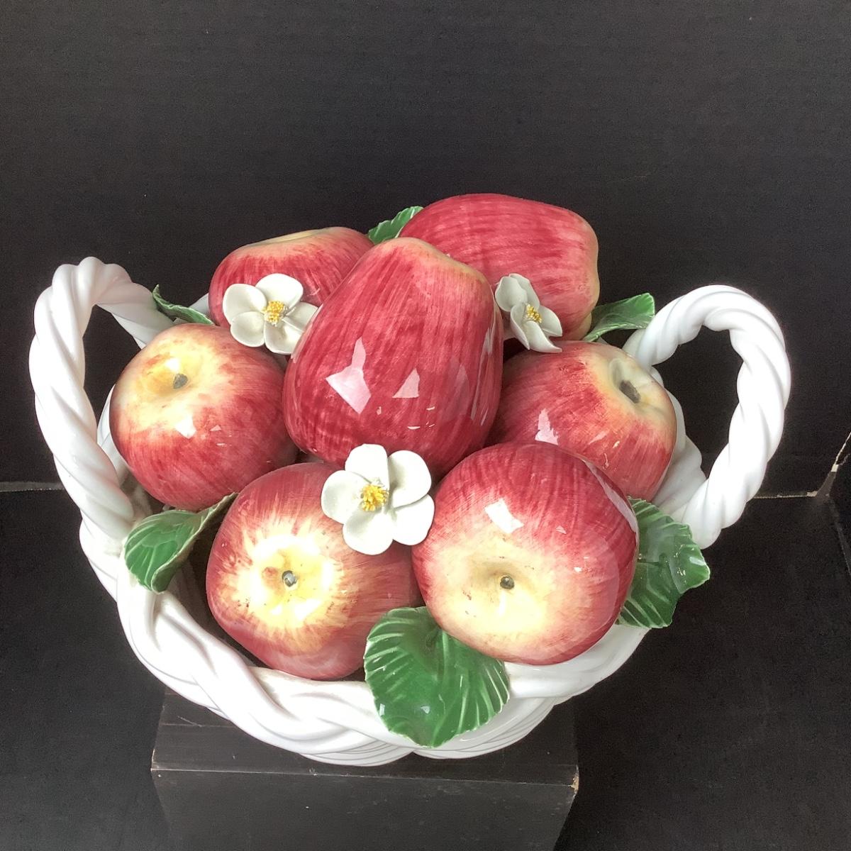 Ceramic basket with apples is 10" x 9", made for Gumps in Italy. There are no chips, cracks or crazing.