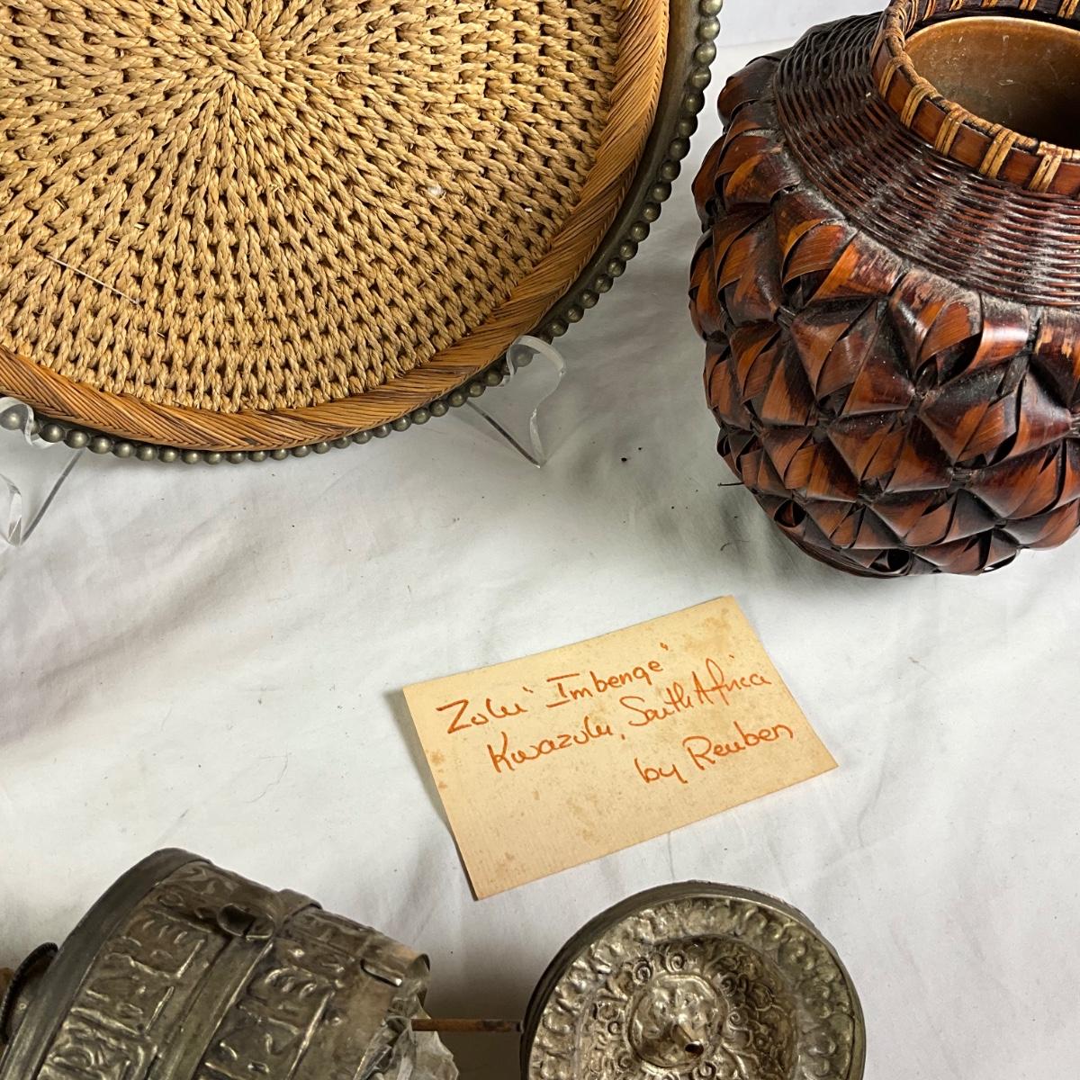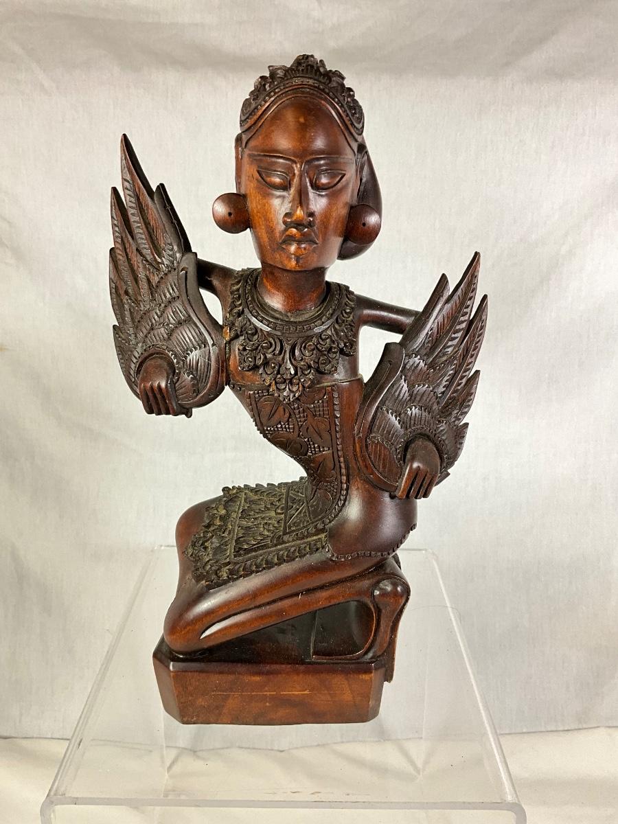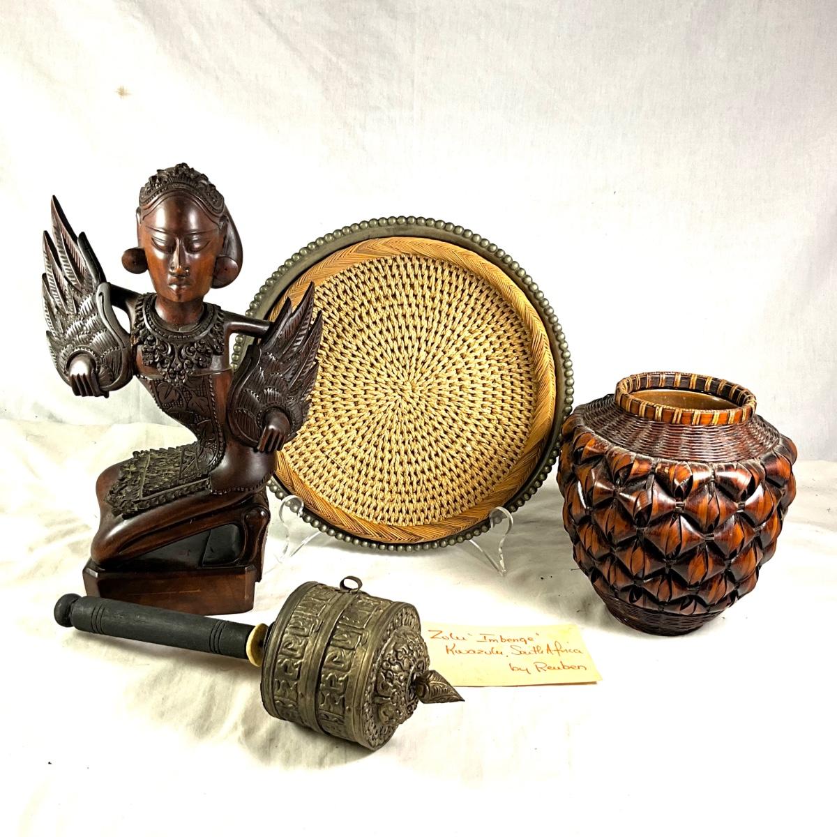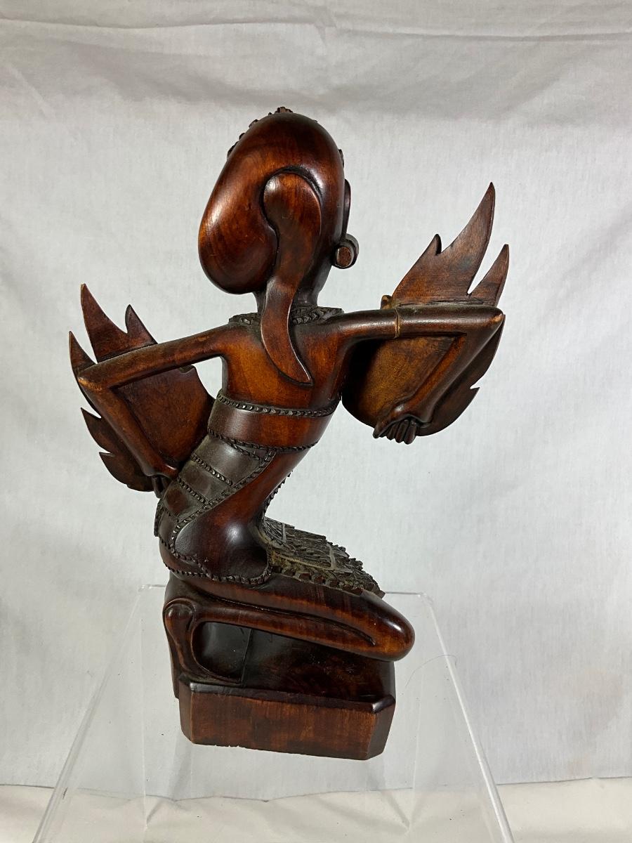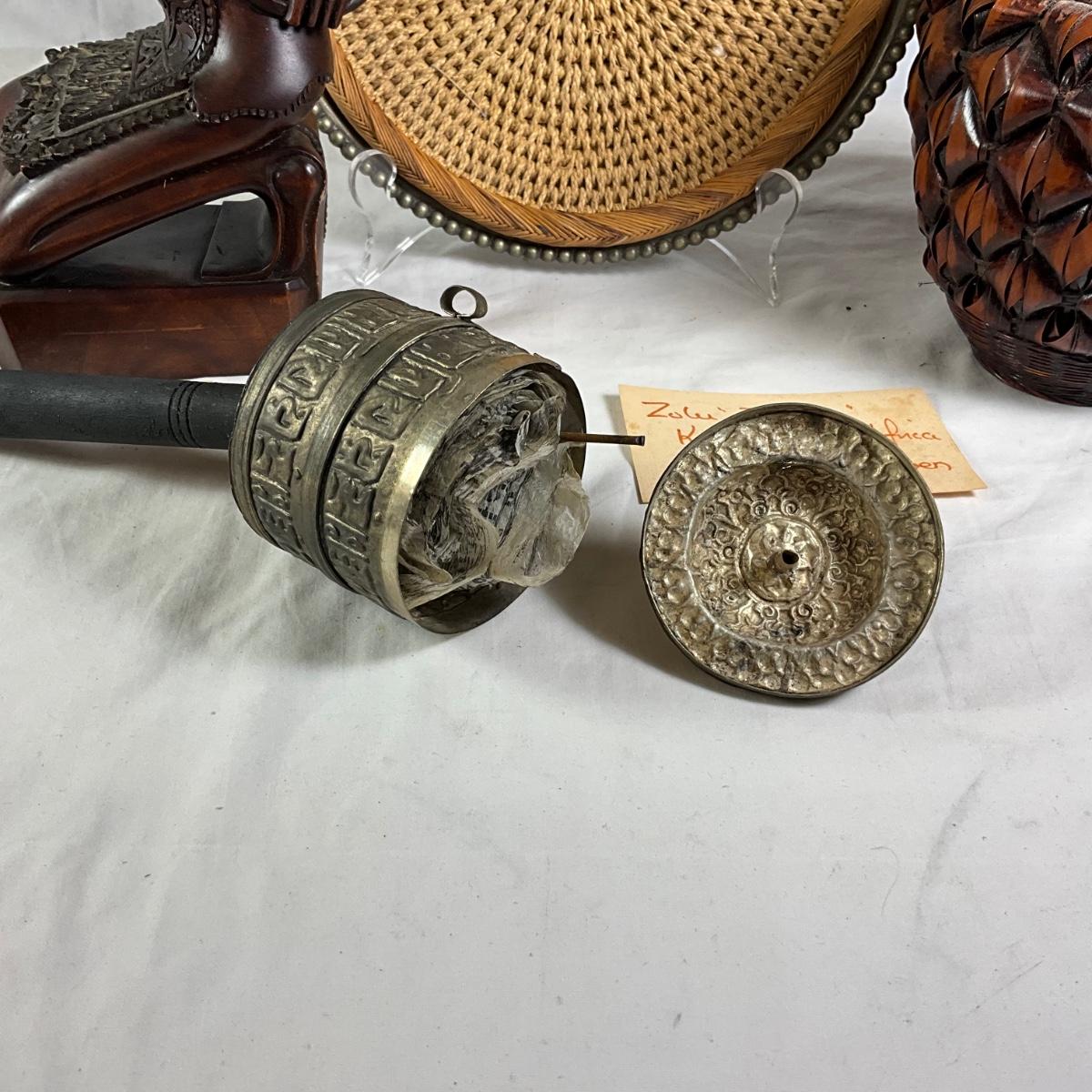 1466 Vintage Balinese Legong Dancer Carved Wooden Sculpture, Tibetan Prayer Wheel
