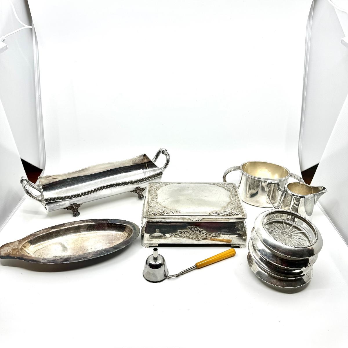 vintage silver plate hollowware with silver edge frank whiting coasters