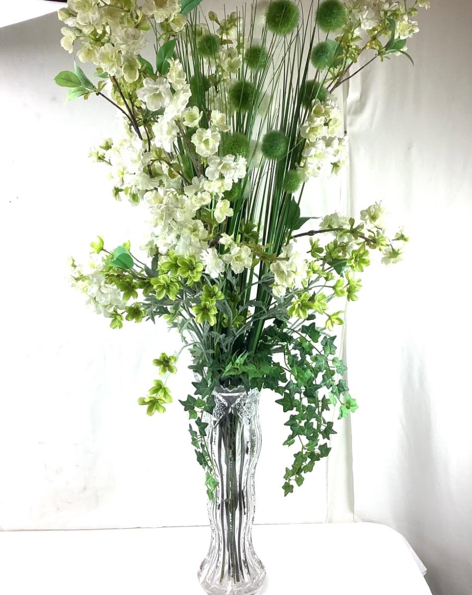 Vase measures 40" tall with silk flowers, vase alone is 40" x 16".
