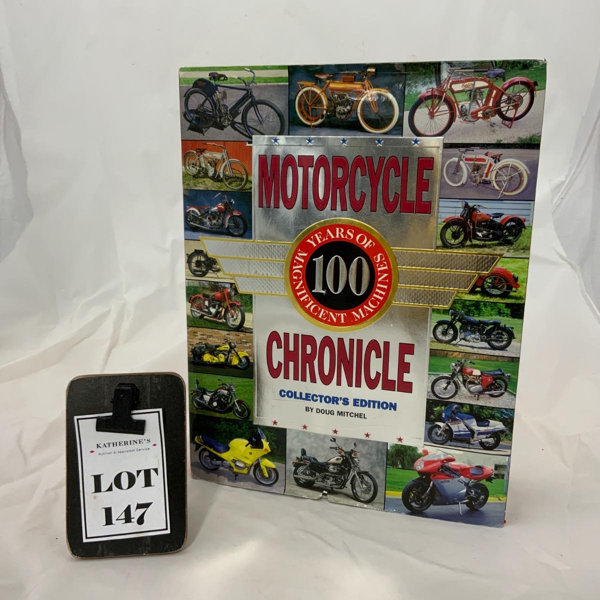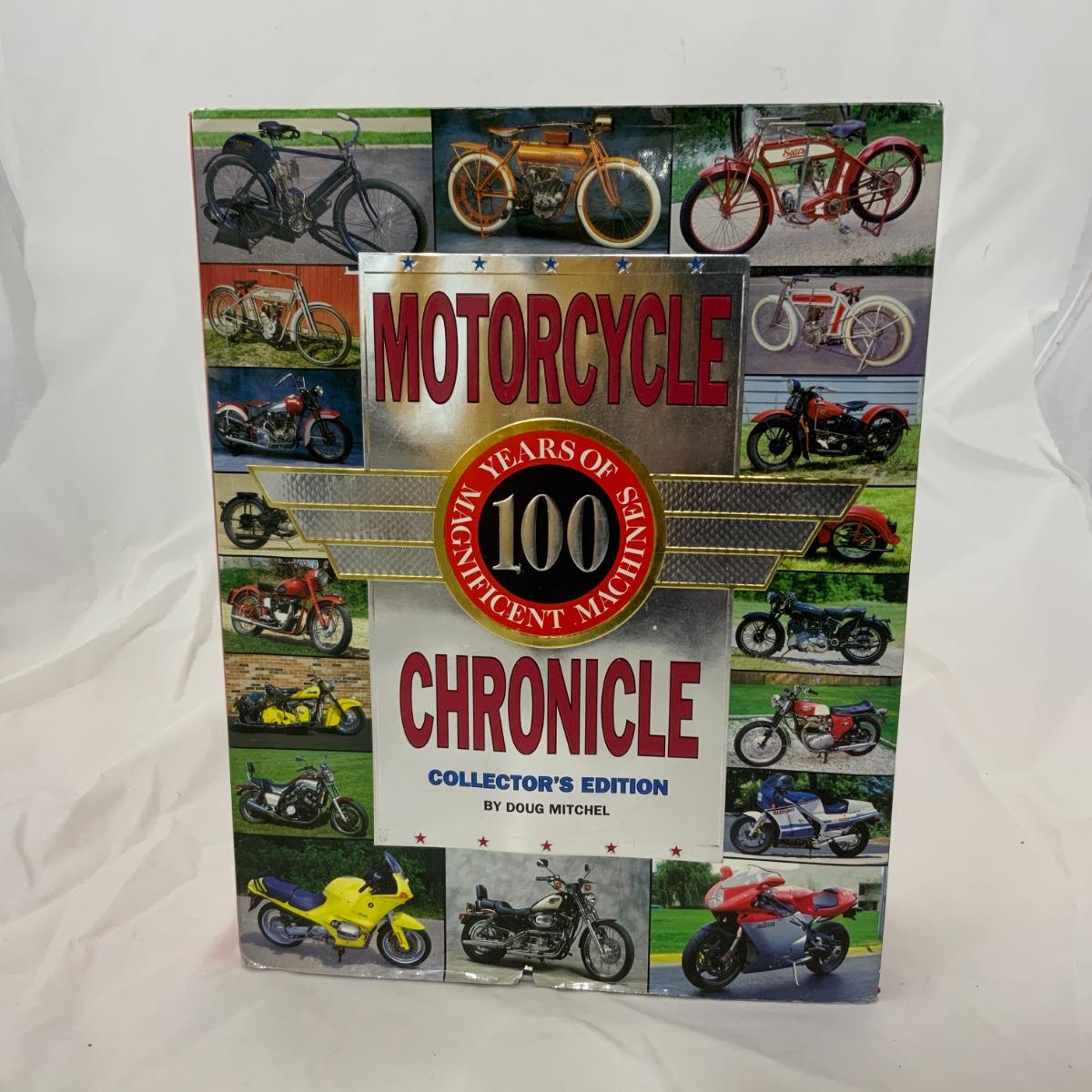 From the Estate of Peter Radovanovich: Excellent Large Coffee Table Sized Book titled Motorcycle Chronicle by Doug Mitchel. It covered 100 years of magnificent machines. Please see photos for details and condition. ::: Shipping is available on this lot. If you require shipping you must let us know at the close of the auction. We will coordinate with you after the item has been won. Shipping fees will include insurance up to or exceeding the value of all items being mailed. If you have any questions regarding this lot please contact the auctioneer either via this website, by direct email or by phone. PICK UP TIMES and other important information can be found in the TERMS and DESCRIPTION of the auction. Please take a look for pertinent information. Thanks!