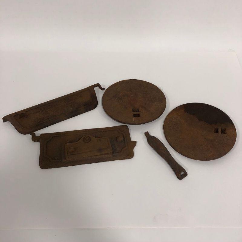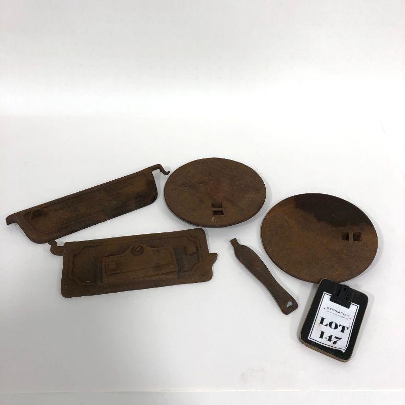 Mixed lot of Cast Iron Stove Pieces Including two burner covers and lifting tool.