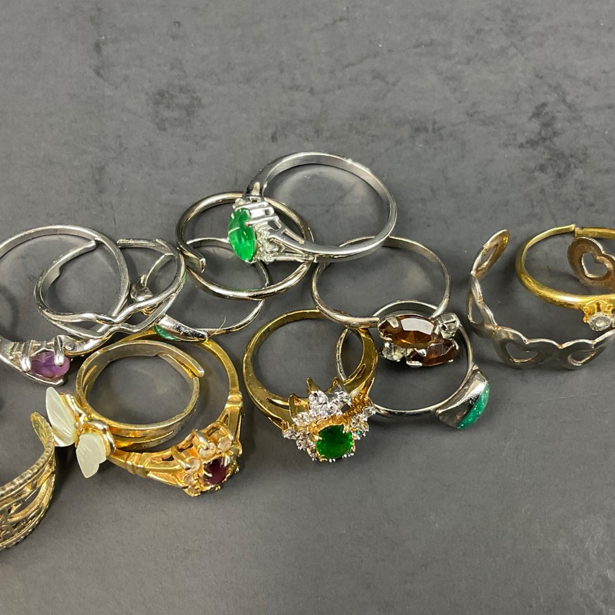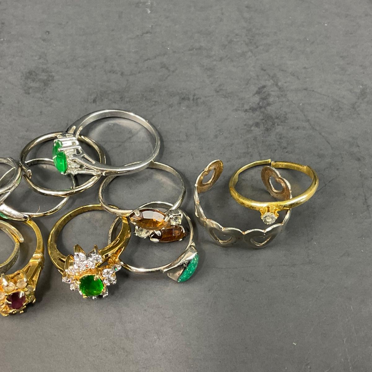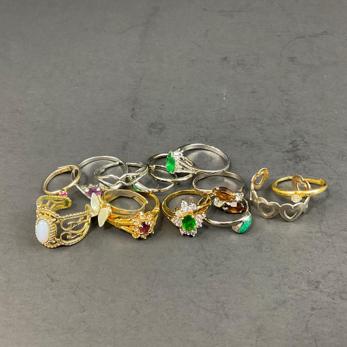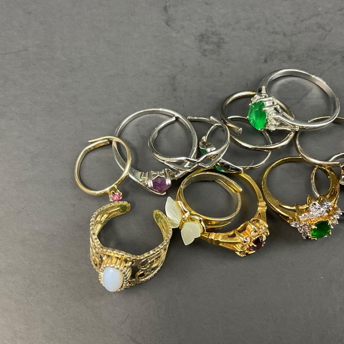 14 assorted costume jewelry rings ranging from size 6 to size 11.5 there are some adjustable rings as well. Please see photos for details and condition. Any condition statement is given as a courtesy to a client, is an opinion, and should not be treated as a statement of fact. Reference to condition written, oral or within a condition report shall not be regarded as a full account of condition and may not include all defects, alterations, or restorations. Absence of a condition report does not imply a lot is flawless or lacking imperfections or damage. Katherine’s Auction & Appraisal Service shall have no responsibility for any error or omission. Returns shall not be accepted on the basis of condition. ::: Shipping is available on this lot. If you require shipping you must let us know at the close of the auction. We will coordinate with you after the item has been won. Shipping fees will include insurance up to or exceeding the value of all items being mailed. If you have any questions regarding this lot please contact the auctioneer either via this website, by direct email or by phone. PICK UP TIMES and other important information can be found in the TERMS and DESCRIPTION of the auction. Please take a look for pertinent information. Thanks!