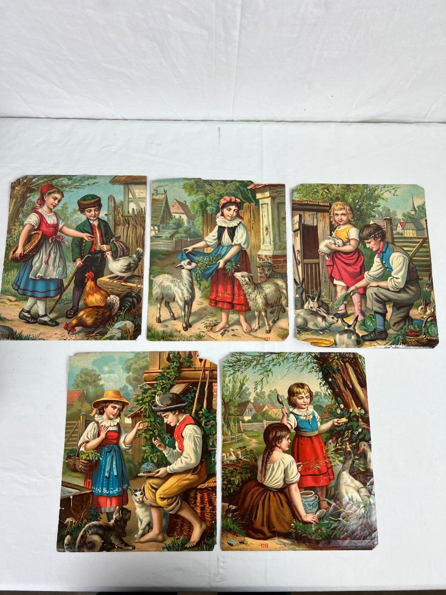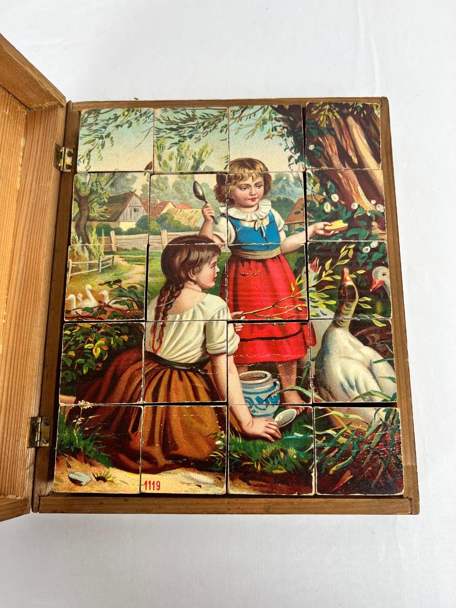 Large Antique German Toy Wooden Picture Block puzzle ( 5 pic )