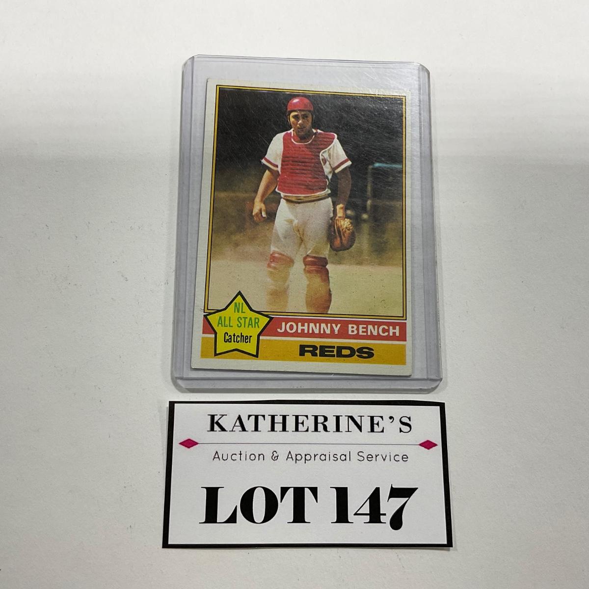 One Johnny Bench Reds #300 Card. Please see photos for details and condition. ::: Shipping is available on this lot. If you require shipping you must let us know at the close of the auction. We will coordinate with you after the item has been won. Shipping fees will include insurance up to or exceeding the value of all items being mailed. If you have any questions regarding this lot please contact the auctioneer either via this website, by direct email or by phone. PICK UP TIMES and other important information can be found in the TERMS and DESCRIPTION of the auction. Please take a look for pertinent information. Thanks!
