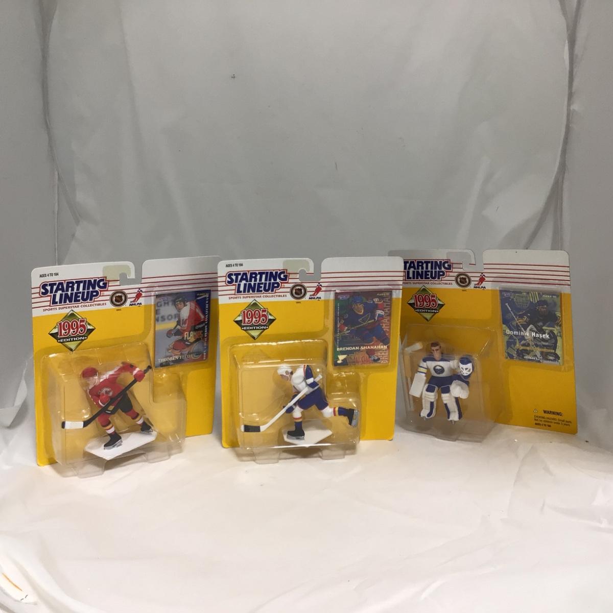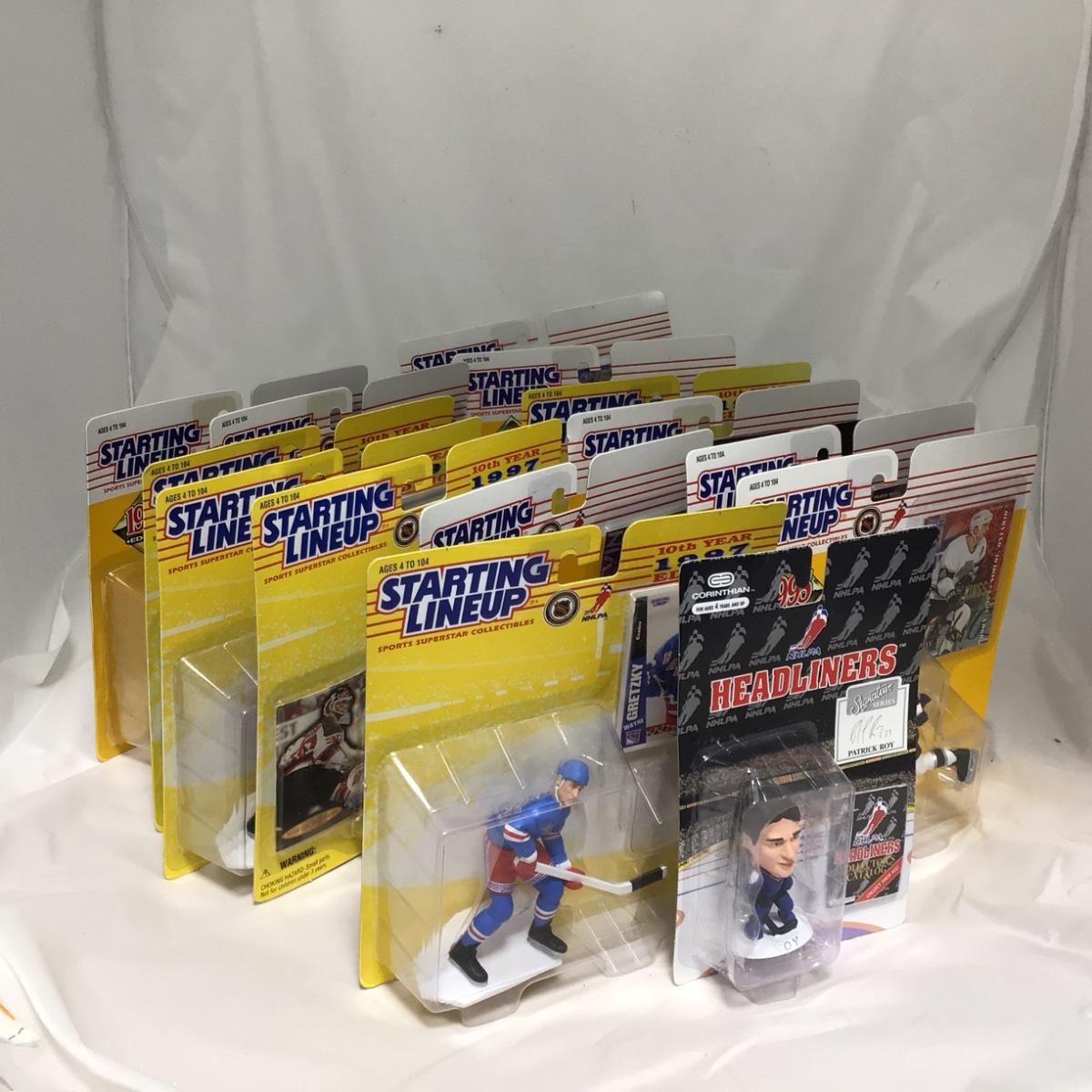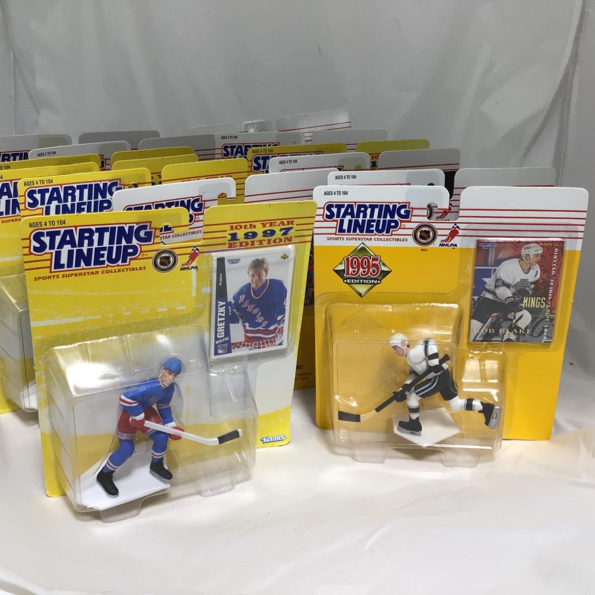 15 Starting Lineup hockey figures from years including: 1995 and 1997. Please see photos for details and condition. ::: Shipping is available on this lot. If you require shipping you must let us know at the close of the auction. We will coordinate with you after the item has been won. Shipping fees will include insurance up to or exceeding the value of all items being mailed. If you have any questions regarding this lot please contact the auctioneer either via this website, by direct email or by phone. PICK UP TIMES and other important information can be found in the TERMS and DESCRIPTION of the auction. Please take a look for pertinent information. Thanks!