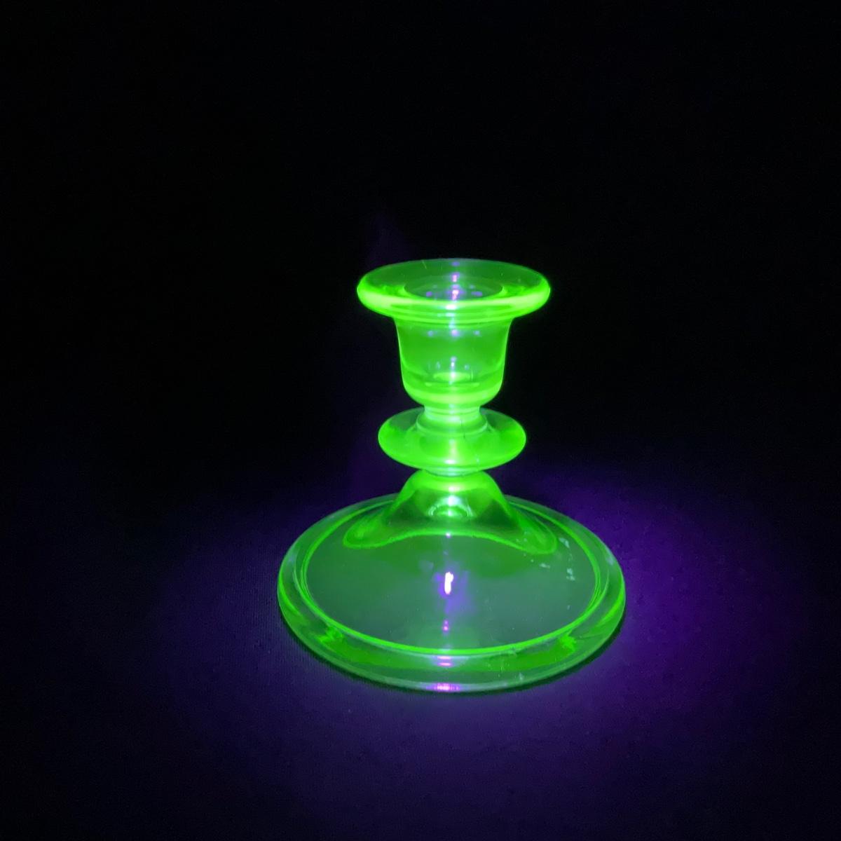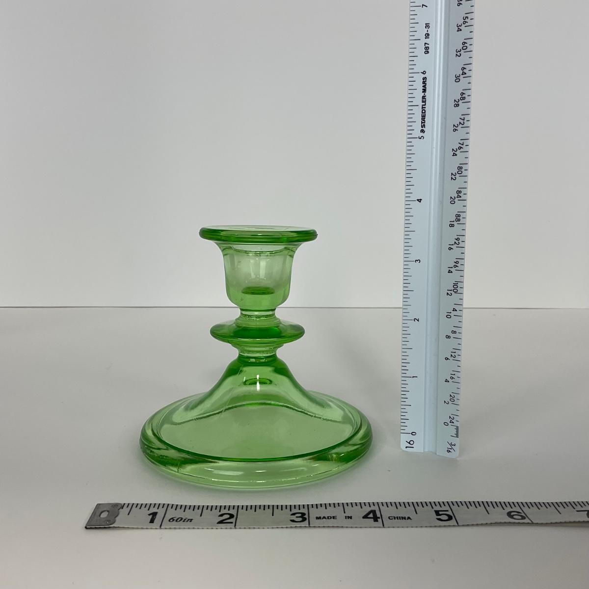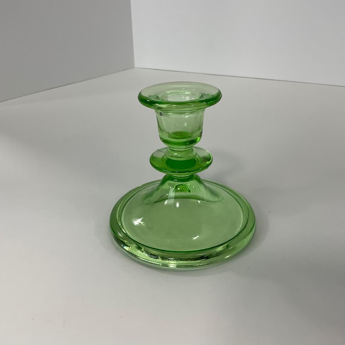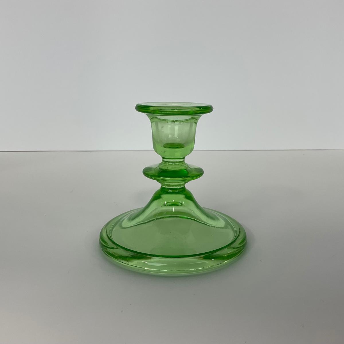 One green depression glass candle stick. I am Uranium glass so I DO GLOW under blacklight. Please see photos for details and condition. ::: Shipping is available on this lot. If you require shipping you must let us know at the close of the auction. We will coordinate with you after the item has been won. Shipping fees will include insurance up to or exceeding the value of all items being mailed. If you have any questions regarding this lot please contact the auctioneer either via this website, by direct email or by phone. PICK UP TIMES and other important information can be found in the TERMS and DESCRIPTION of the auction. Please take a look for pertinent information. Thanks!