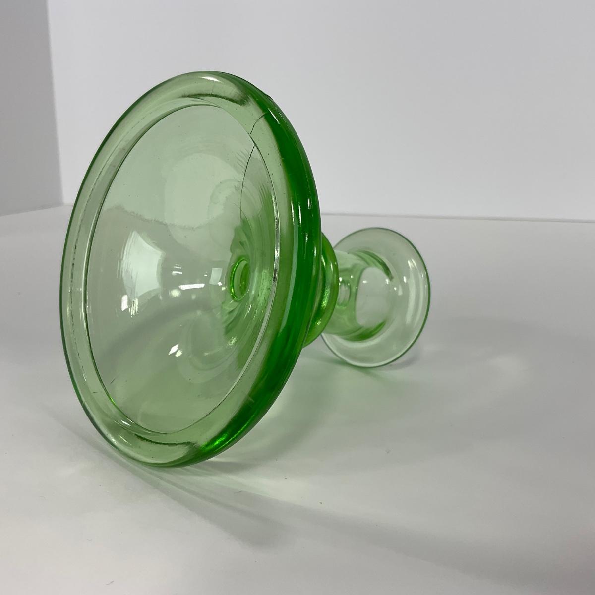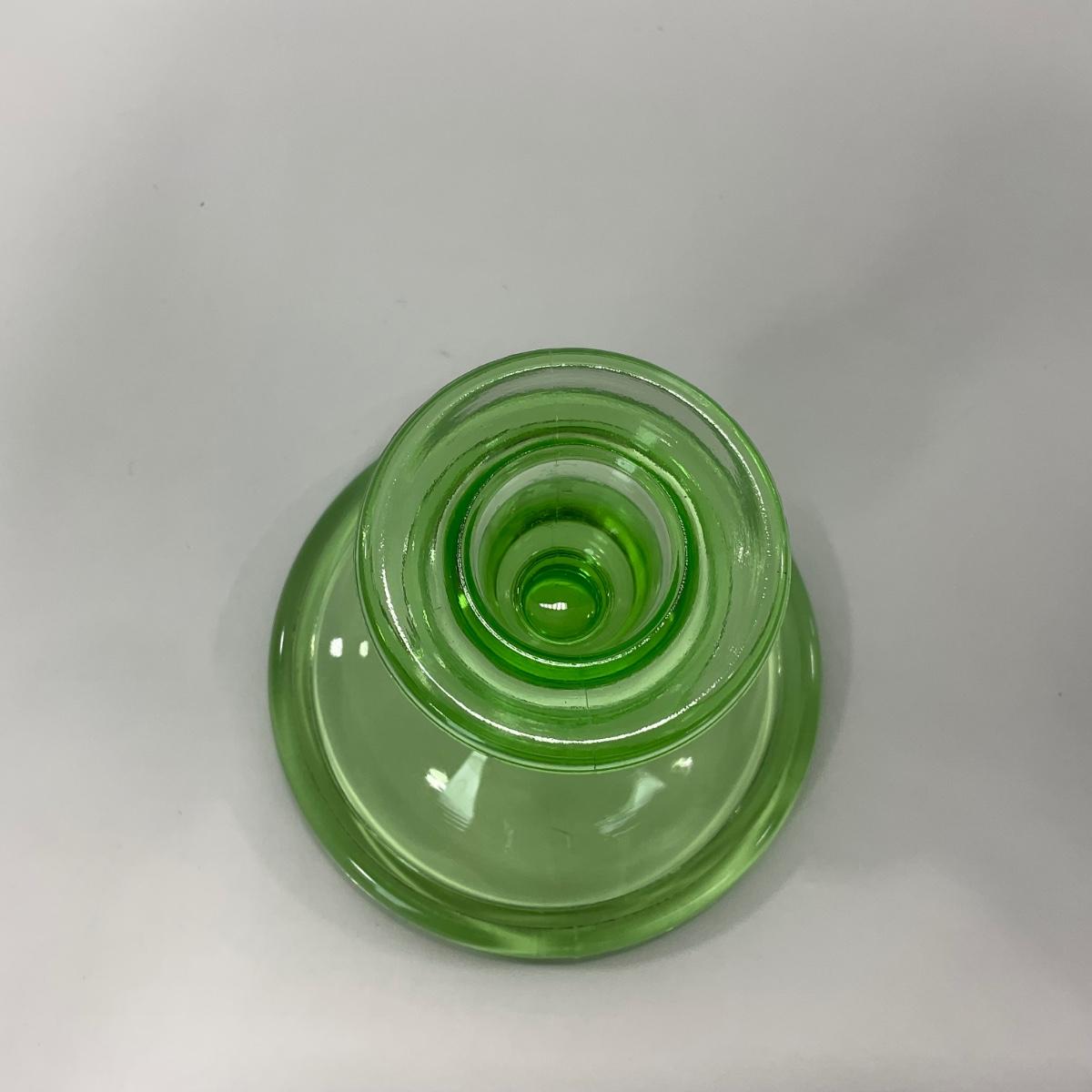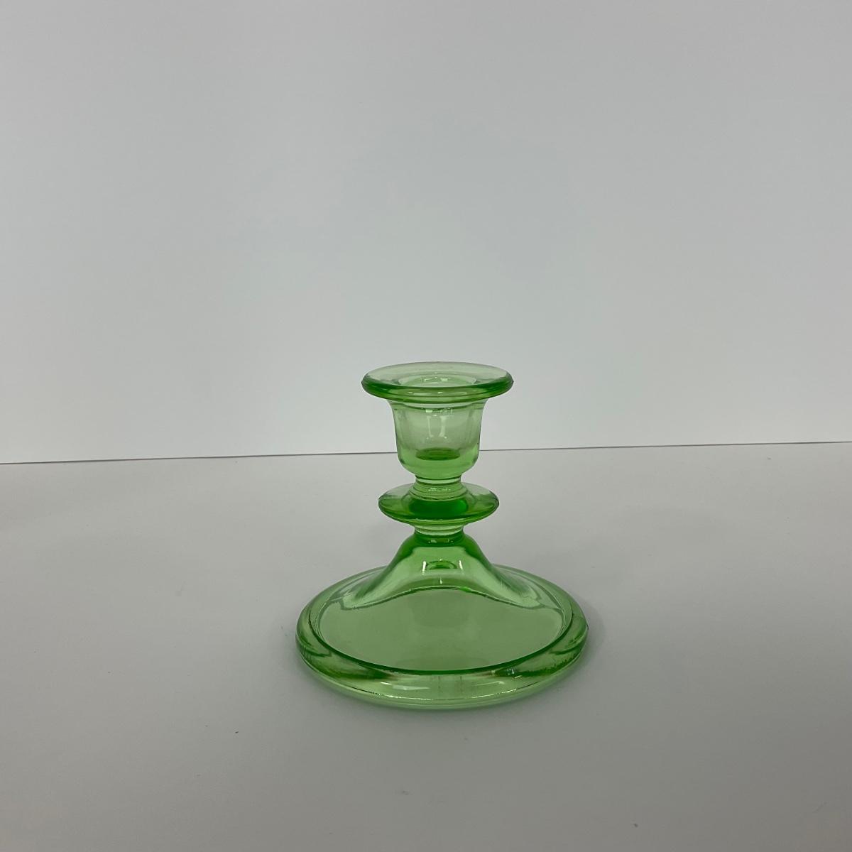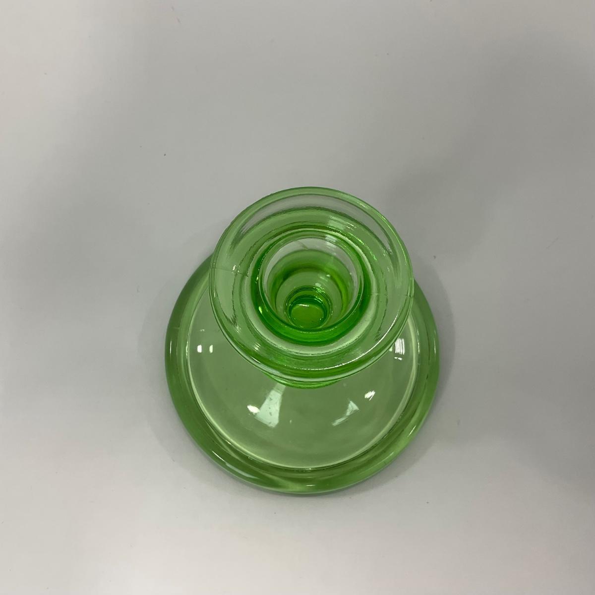 One green depression glass candle stick. I am Uranium glass so I DO GLOW under blacklight. Please see photos for details and condition. ::: Shipping is available on this lot. If you require shipping you must let us know at the close of the auction. We will coordinate with you after the item has been won. Shipping fees will include insurance up to or exceeding the value of all items being mailed. If you have any questions regarding this lot please contact the auctioneer either via this website, by direct email or by phone. PICK UP TIMES and other important information can be found in the TERMS and DESCRIPTION of the auction. Please take a look for pertinent information. Thanks!