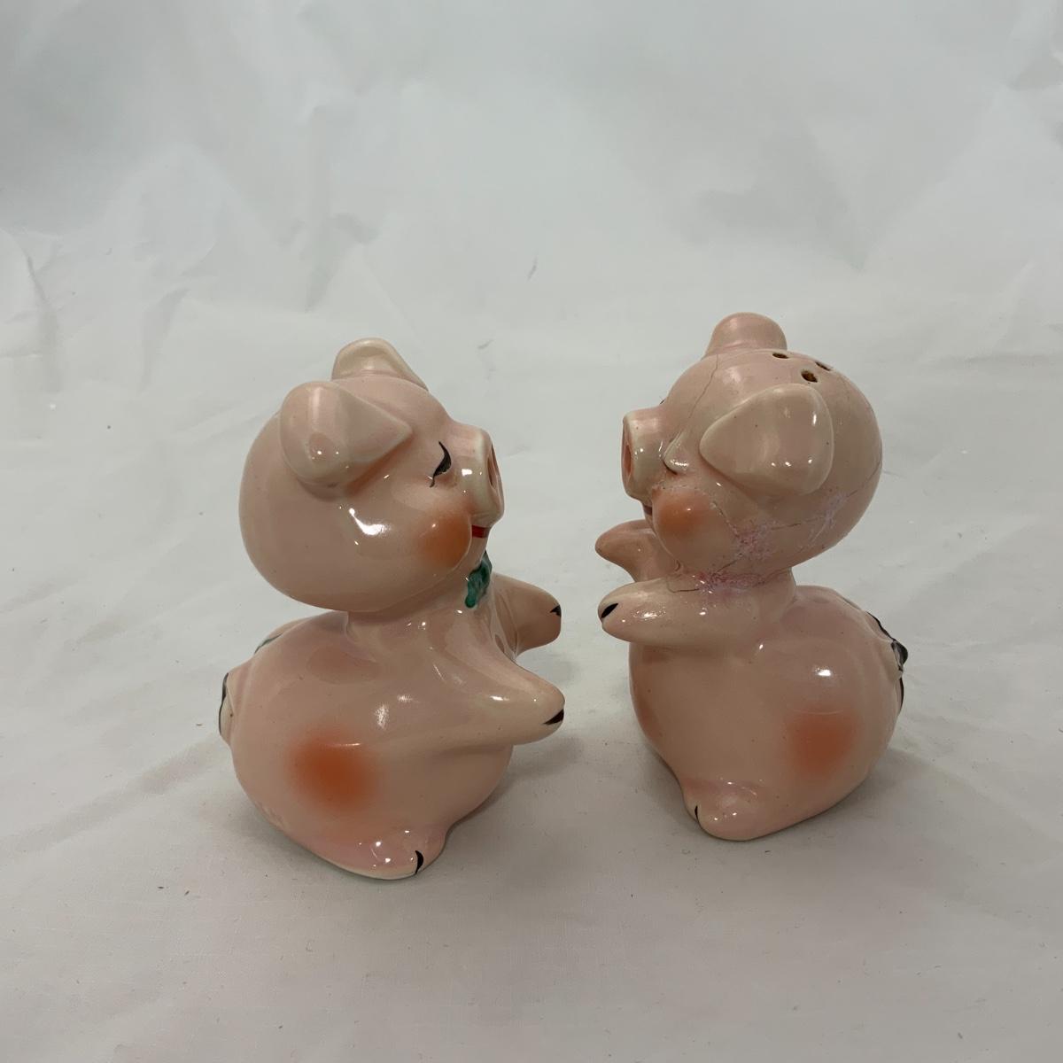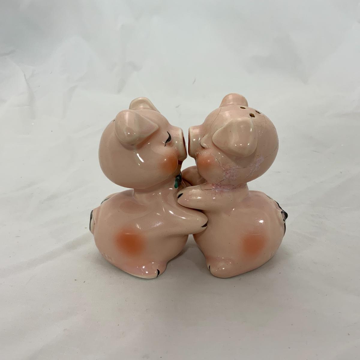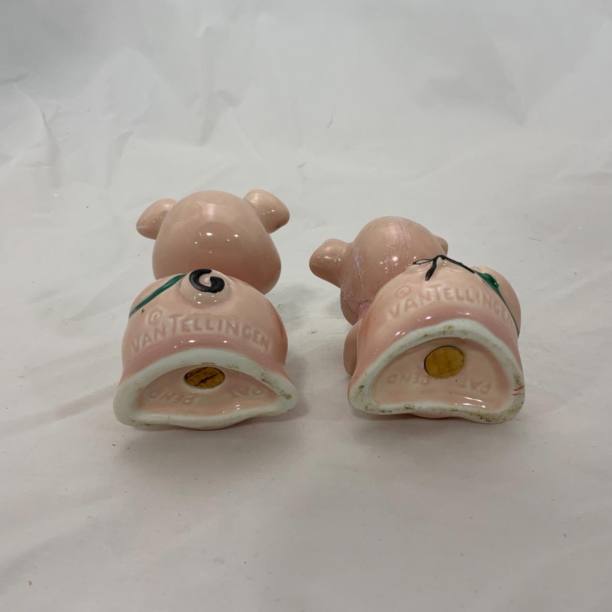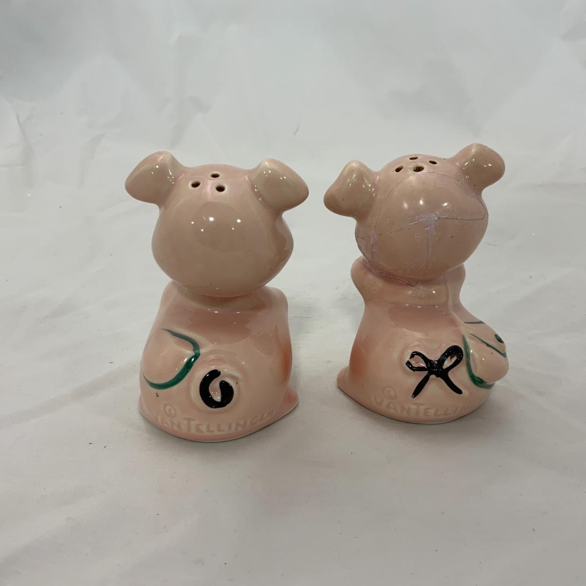 From the Estate of Peter and Alice Radovanovich: Adorable set of Van Tellingen Pig Huggies. Unfortunately one of them took a tumble and was repaired. PLEASE see photos for details and condition. ::: Shipping is NOT available on this lot. If you have any questions regarding this lot please contact the auctioneer either via this website, by direct email or by phone. PICK UP TIMES and other important information can be found in the TERMS and DESCRIPTION of the auction. Please take a look for pertinent information. Thanks!