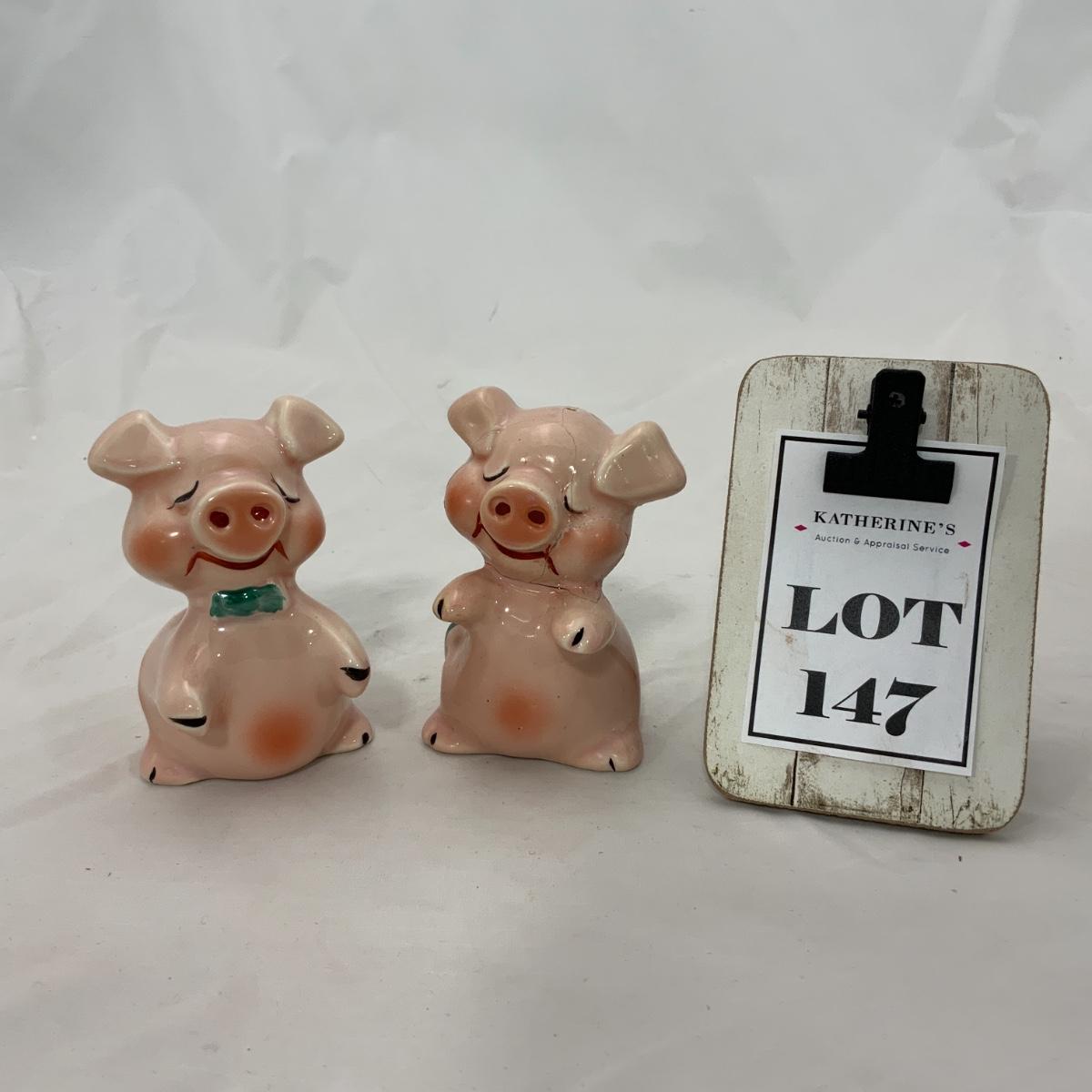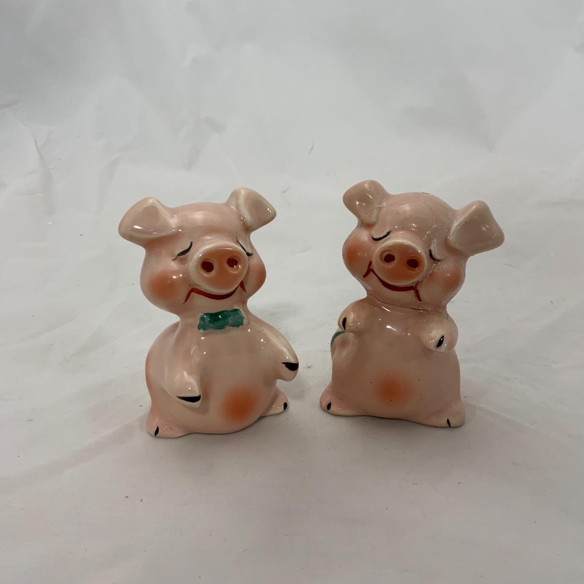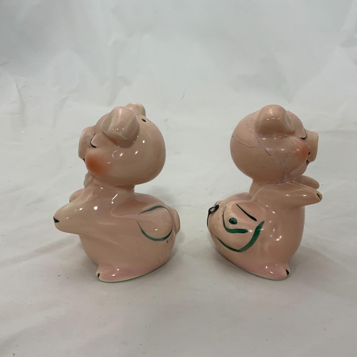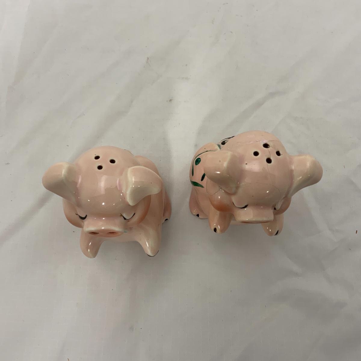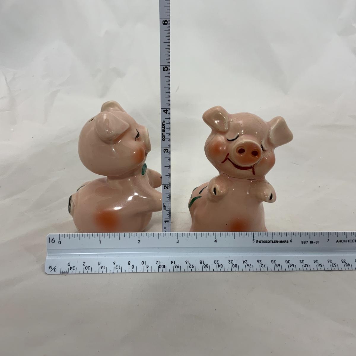 From the Estate of Peter and Alice Radovanovich: Adorable set of Van Tellingen Pig Huggies. Unfortunately one of them took a tumble and was repaired. PLEASE see photos for details and condition. ::: Shipping is NOT available on this lot. If you have any questions regarding this lot please contact the auctioneer either via this website, by direct email or by phone. PICK UP TIMES and other important information can be found in the TERMS and DESCRIPTION of the auction. Please take a look for pertinent information. Thanks!