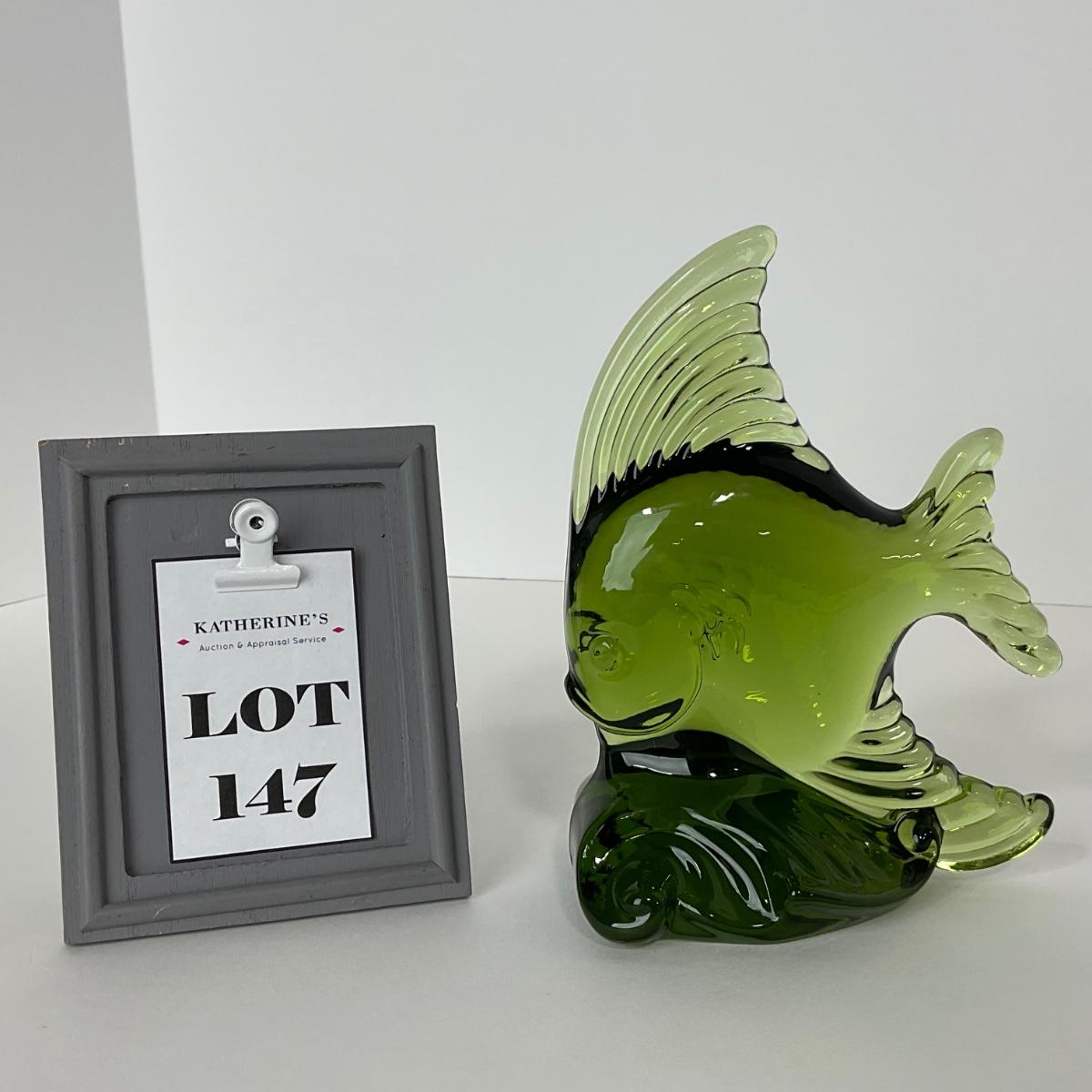 One Viking mid century epic green angel fish. 5 inches wide by 7 inches tall. This piece has no damage, and appears to be in great shape with no visable chips, cracks, or broken pieces. Please see photos for details and condition. Any condition statement is given as a courtesy to a client, is an opinion, and should not be treated as a statement of fact. Reference to condition written, oral or within a condition report shall not be regarded as a full account of condition and may not include all defects, alterations, or restorations. Absence of a condition report does not imply a lot is flawless or lacking imperfections or damage. Katherine’s Auction & Appraisal Service shall have no responsibility for any error or omission. Returns shall not be accepted on the basis of condition. ::: Shipping is available on this lot. If you require shipping you must let us know at the close of the auction. We will coordinate with you after the item has been won. Shipping fees will include insurance up to or exceeding the value of all items being mailed. If you have any questions regarding this lot please contact the auctioneer either via this website, by direct email or by phone. PICK UP TIMES and other important information can be found in the TERMS and DESCRIPTION of the auction. Please take a look for pertinent information. Thanks!