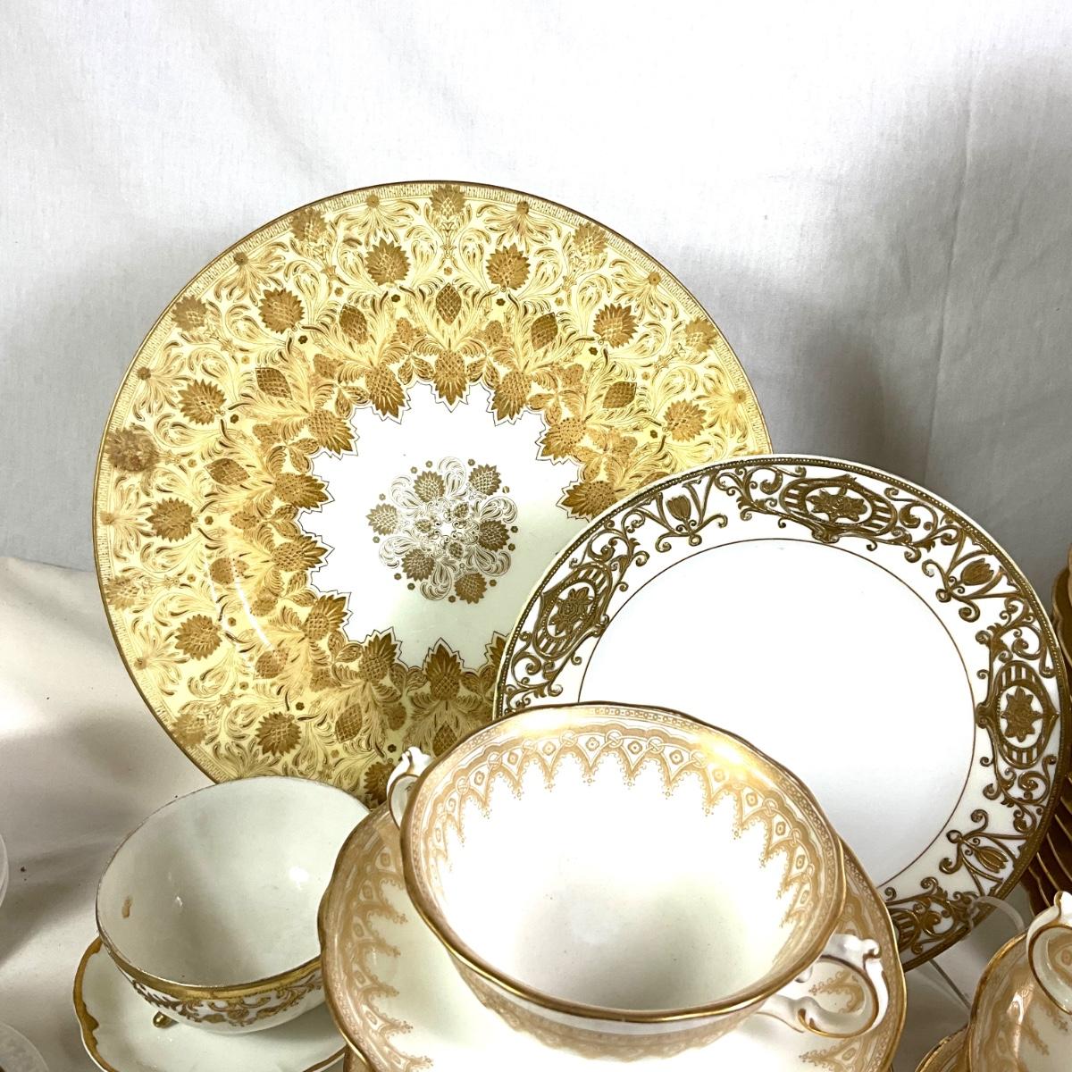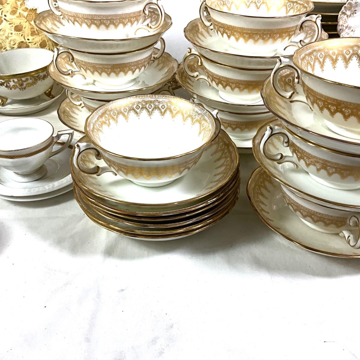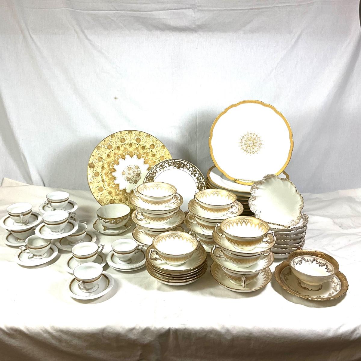 1470 Large Set of Vintage Limoge and Royal Doulton Gold and White China