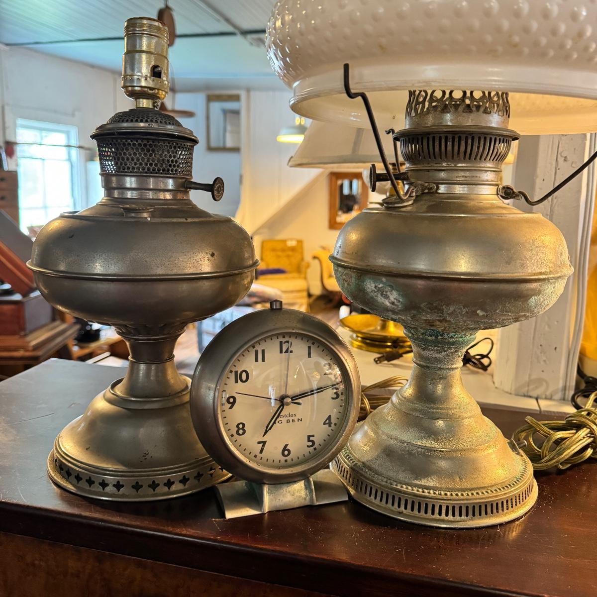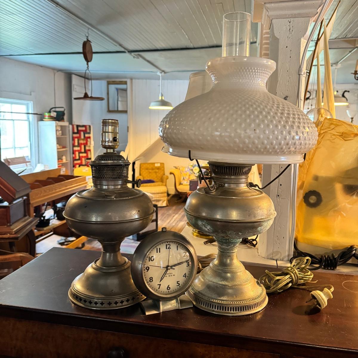 1470 Lot of 2 Pewter Electric Oil Lamps