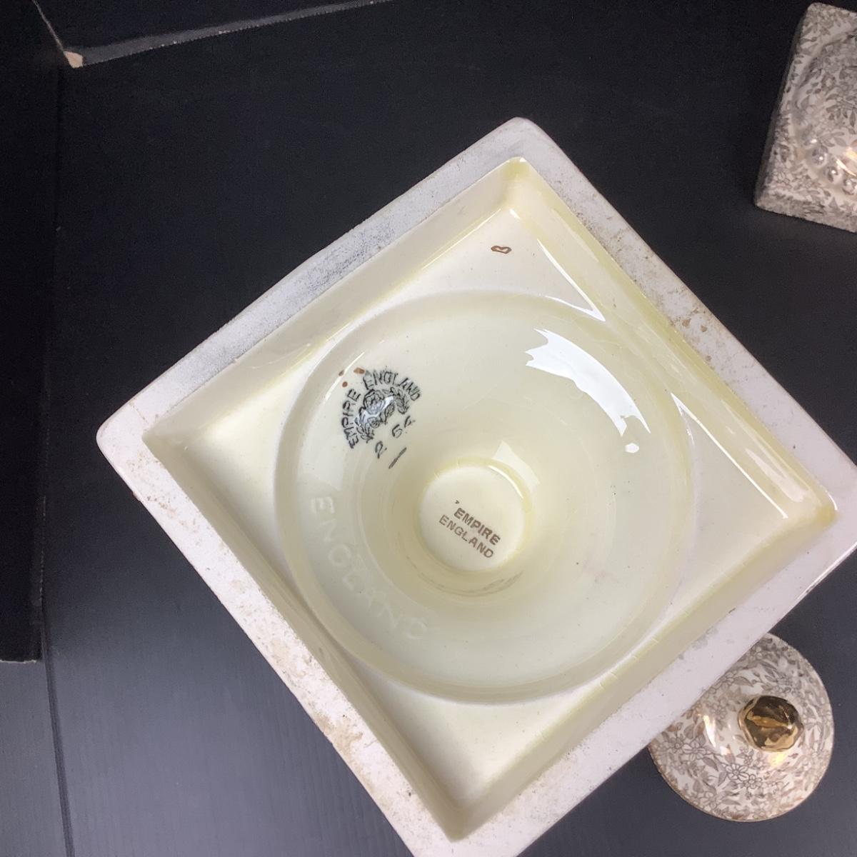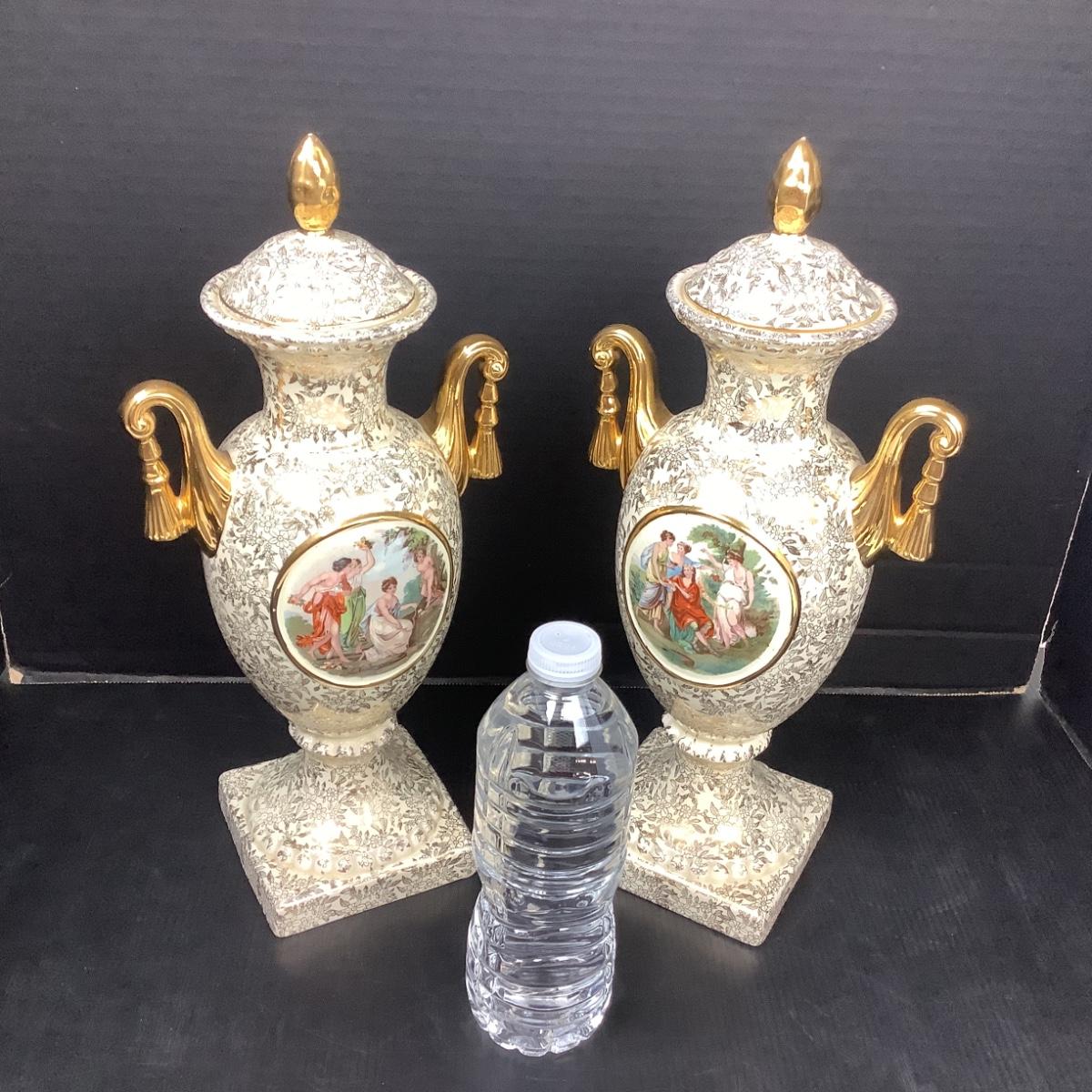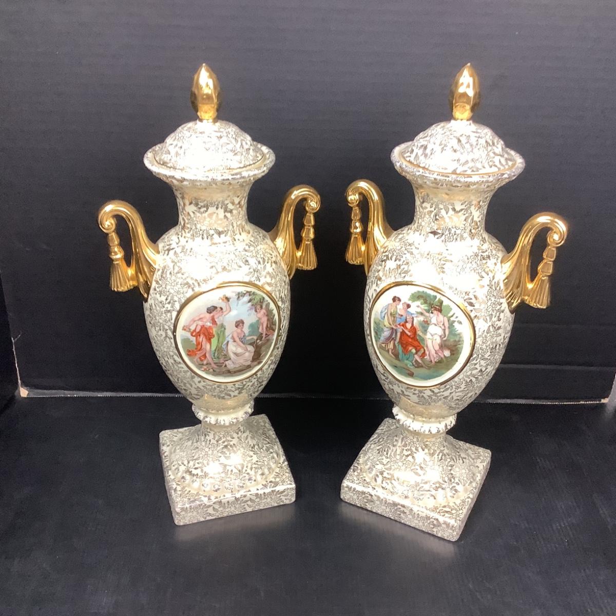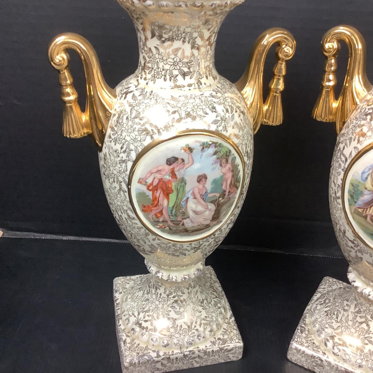 1472 Vintage Empire Ware Shelton Ivory Glaze Pedestal Urn Pair