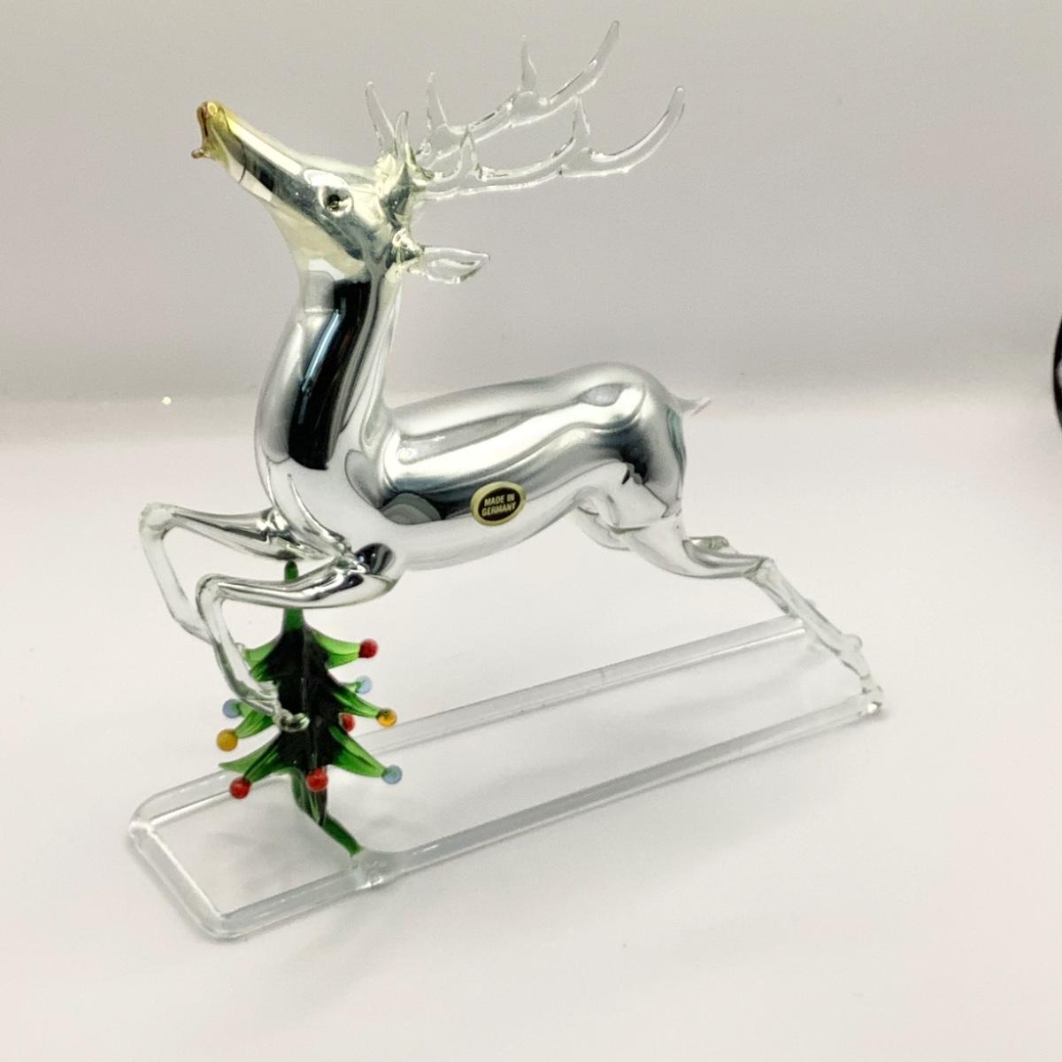 1476 Vintage German Mercury Glass Deer Decor  w/ Tree