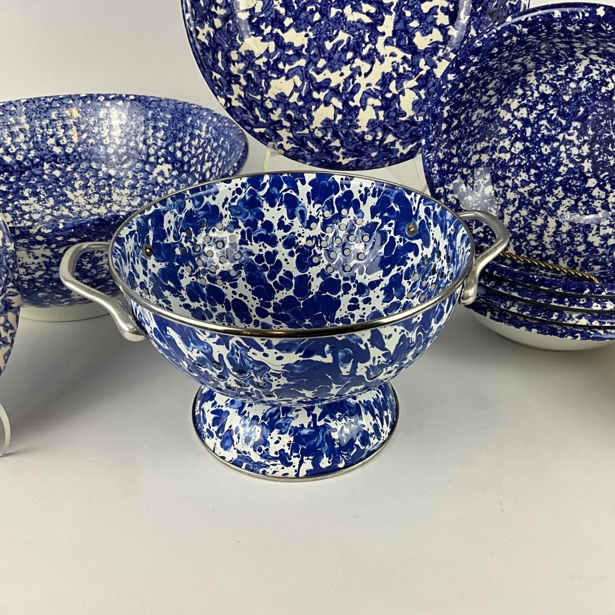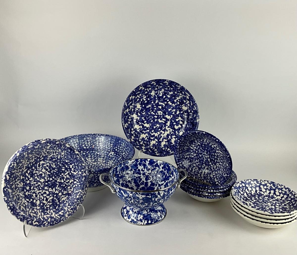 148 Blue & White Spatterware Roma Made In Italy Pottery Set