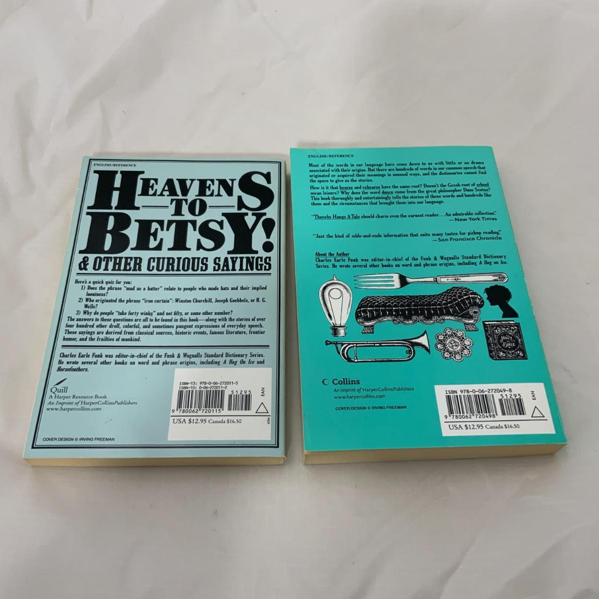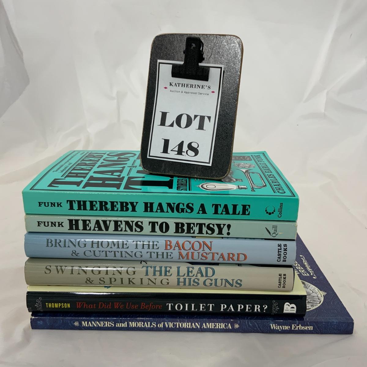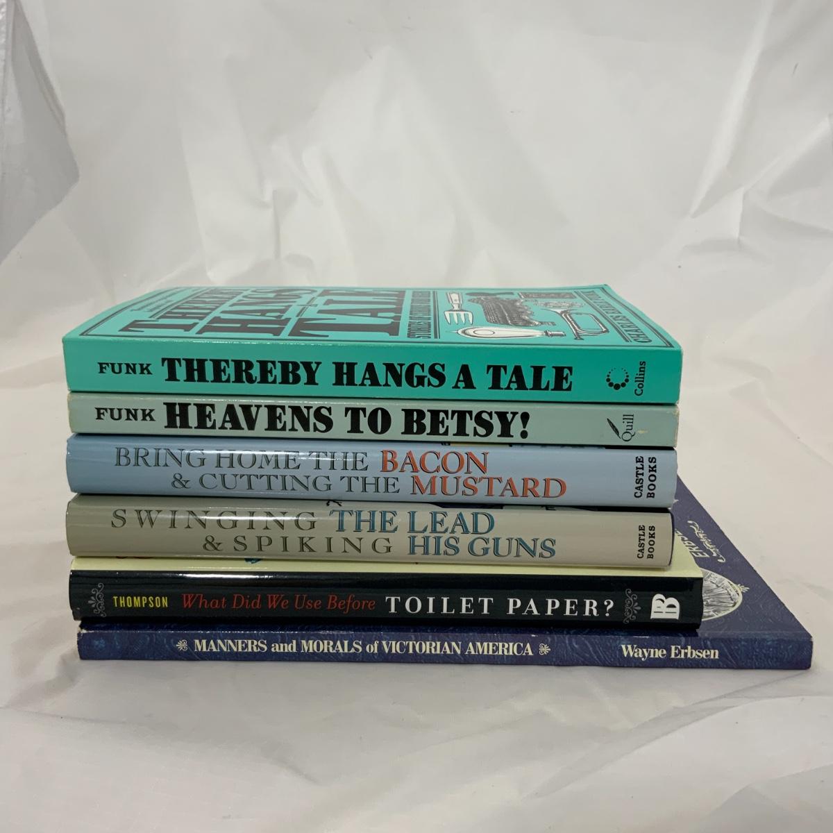From the Estate of Peter Radovanovich: Six Books of Odd Facts and Unconventional Reference. Books included are: Manners and Morals of Victorian America by Wayne Erbsen | What Did We Use Before Toilet Paper by Andrew Thompson | Swinging the Lead and Spiking His Guns & Bringing Home the Bacon and Cutting the Mustard from Castle Books | Heavens to Betsy & Thereby Hangs a Tale by Charles Earle Funk. Books are in excellent used condition. Please see photos for details and condition. ::: Shipping is available on this lot. If you require shipping you must let us know at the close of the auction. We will coordinate with you after the item has been won. Shipping fees will include insurance up to or exceeding the value of all items being mailed. If you have any questions regarding this lot please contact the auctioneer either via this website, by direct email or by phone. PICK UP TIMES and other important information can be found in the TERMS and DESCRIPTION of the auction. Please take a look for pertinent information. Thanks!