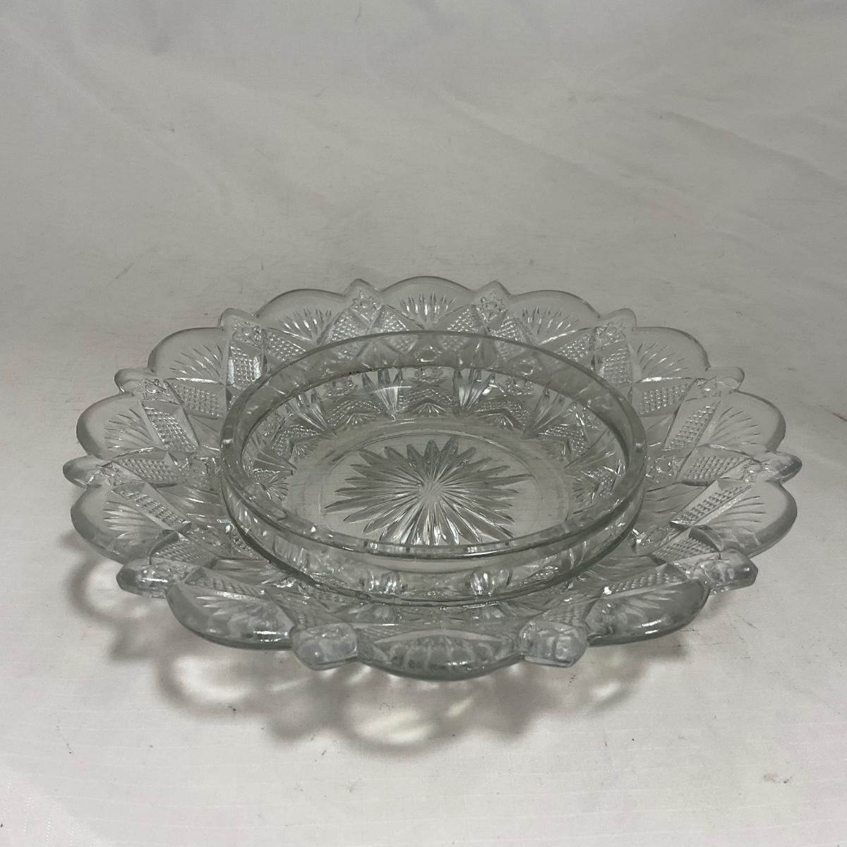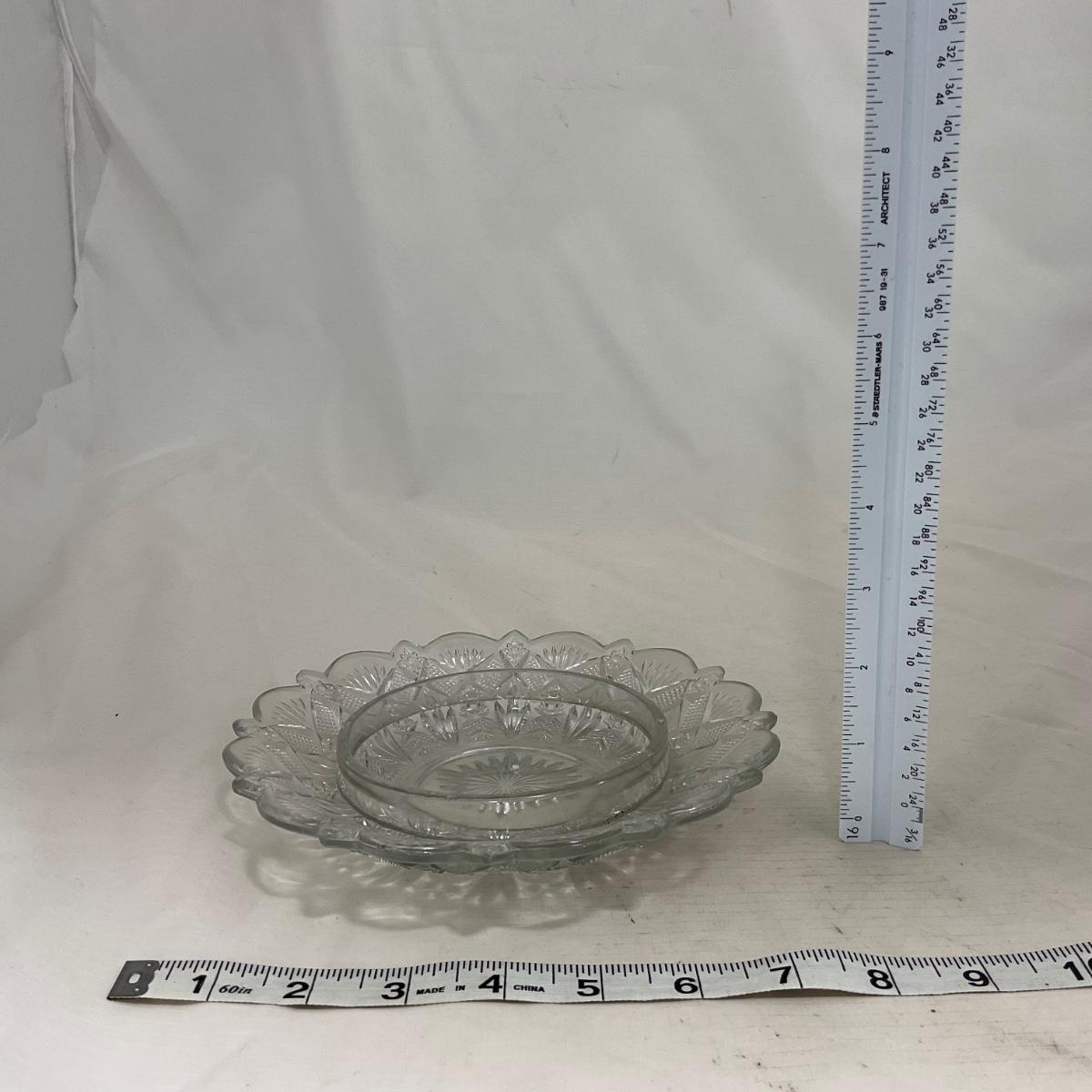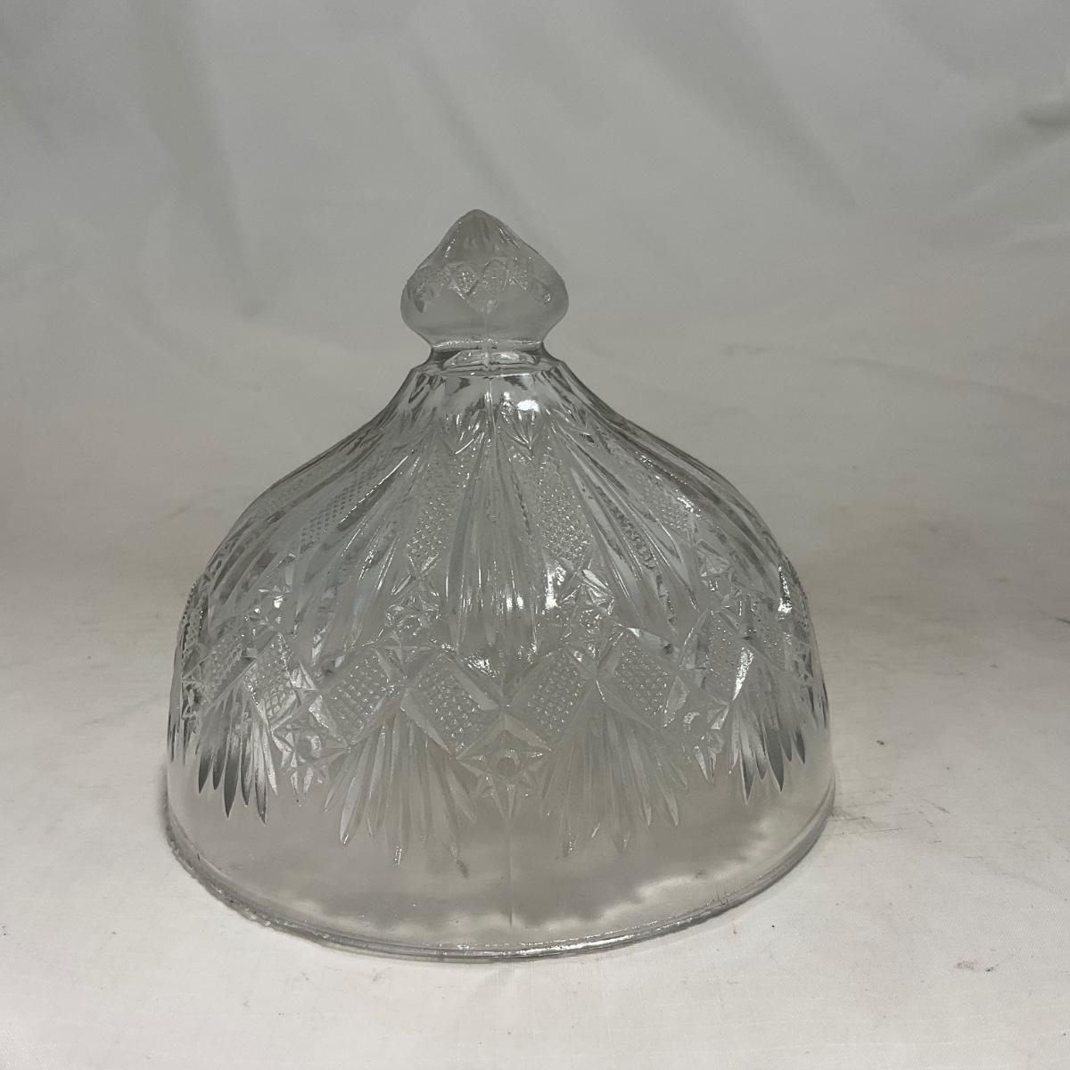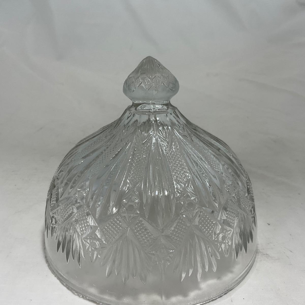 One clear glass covered butter dish with beautiful design. This piece is loved and worn were the top meets the base. Please see photos for details and condition. ::: Shipping is available on this lot. If you require shipping you must let us know at the close of the auction. We will coordinate with you after the item has been won. Shipping fees will include insurance up to or exceeding the value of all items being mailed. If you have any questions regarding this lot please contact the auctioneer either via this website, by direct email or by phone. PICK UP TIMES and other important information can be found in the TERMS and DESCRIPTION of the auction. Please take a look for pertinent information. Thanks!