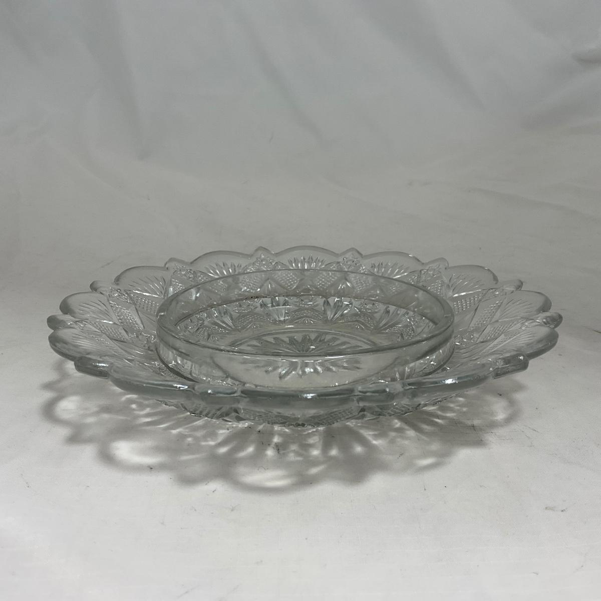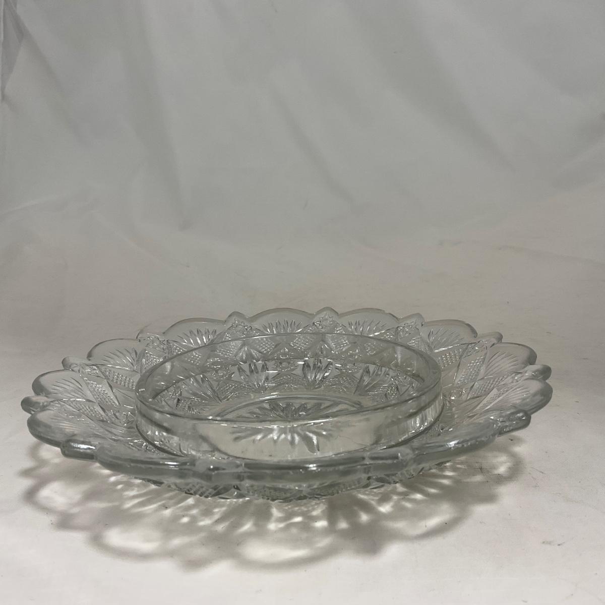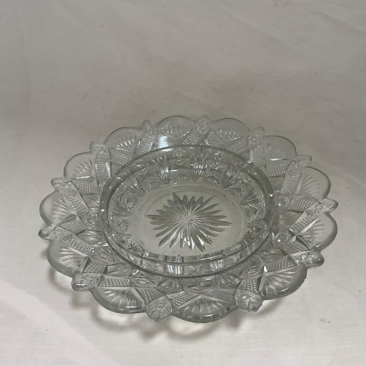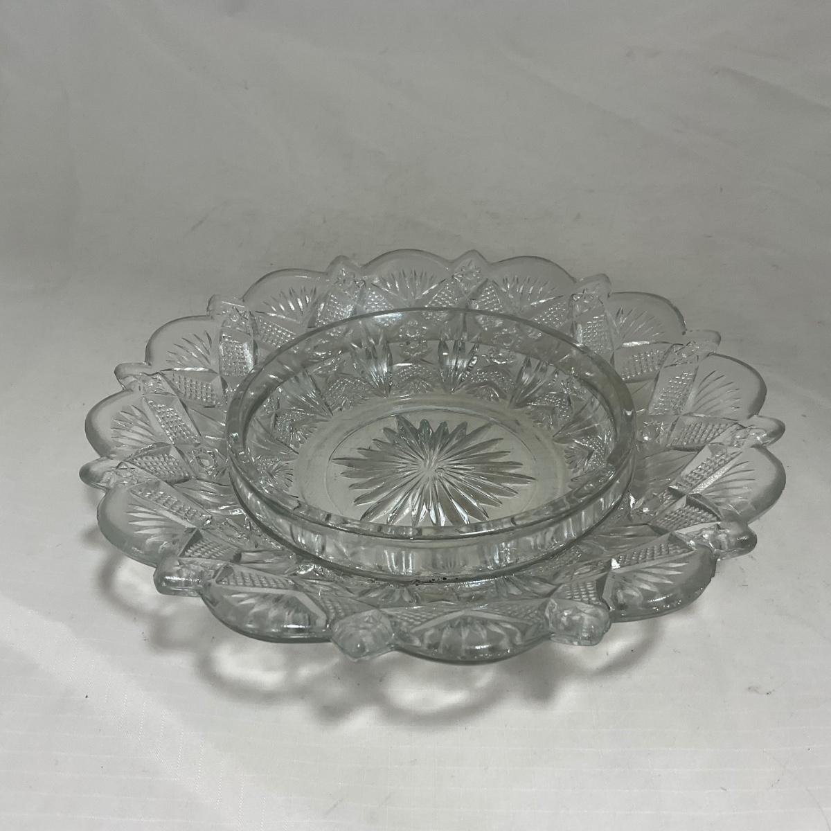 One clear glass covered butter dish with beautiful design. This piece is loved and worn were the top meets the base. Please see photos for details and condition. ::: Shipping is available on this lot. If you require shipping you must let us know at the close of the auction. We will coordinate with you after the item has been won. Shipping fees will include insurance up to or exceeding the value of all items being mailed. If you have any questions regarding this lot please contact the auctioneer either via this website, by direct email or by phone. PICK UP TIMES and other important information can be found in the TERMS and DESCRIPTION of the auction. Please take a look for pertinent information. Thanks!