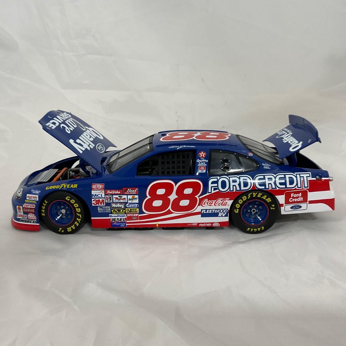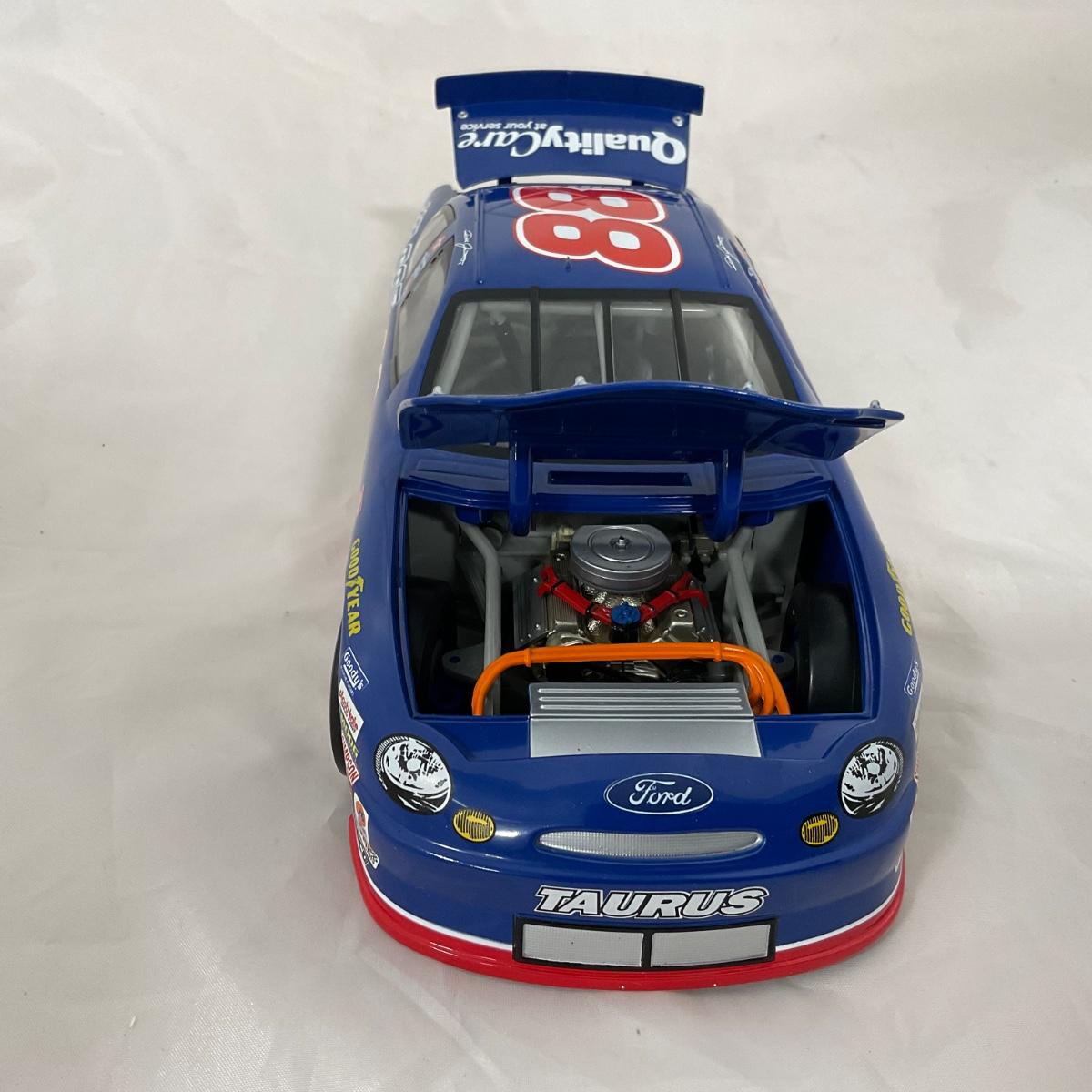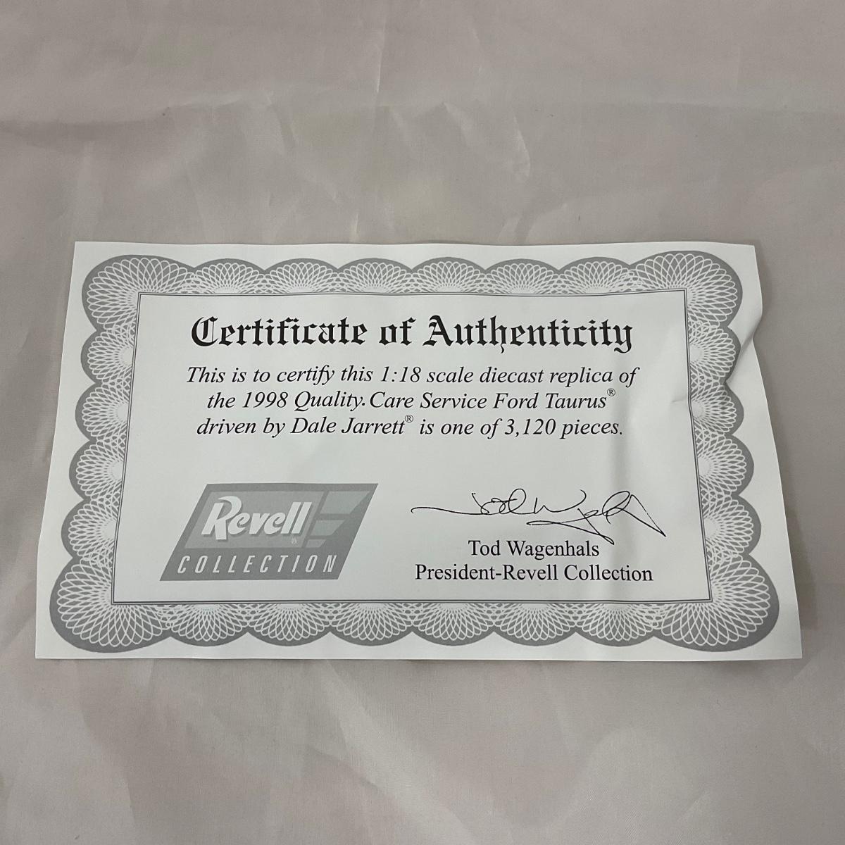 One NASCAR die cast 1:18 scale 1998 Quality Care Service Ford Taurus figure. Driver Dale Jarrett. Comes with a Certificate of Authenticity. Please see photos for details and condition. ::: Shipping is available on this lot. If you require shipping you must let us know at the close of the auction. We will coordinate with you after the item has been won. Shipping fees will include insurance up to or exceeding the value of all items being mailed. If you have any questions regarding this lot please contact the auctioneer either via this website, by direct email or by phone. PICK UP TIMES and other important information can be found in the TERMS and DESCRIPTION of the auction. Please take a look for pertinent information. Thanks!
