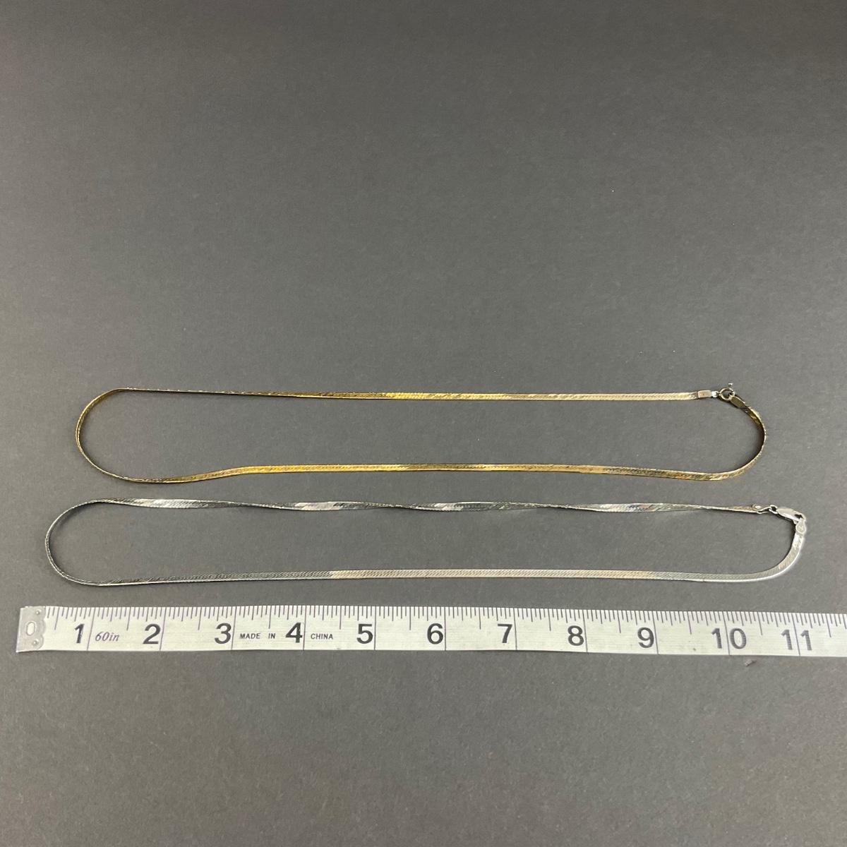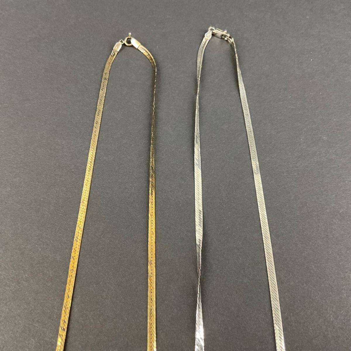 Two sterling silver 925 Italy chain necklaces. The total weight for these pieces is 16.7 grams. Please see photos for details and condition. Any condition statement is given as a courtesy to a client, is an opinion, and should not be treated as a statement of fact. Reference to condition written, oral or within a condition report shall not be regarded as a full account of condition and may not include all defects, alterations, or restorations. Absence of a condition report does not imply a lot is flawless or lacking imperfections or damage. Katherine’s Auction & Appraisal Service shall have no responsibility for any error or omission. Returns shall not be accepted on the basis of condition. ::: Shipping is available on this lot. If you require shipping you must let us know at the close of the auction. We will coordinate with you after the item has been won. Shipping fees will include insurance up to or exceeding the value of all items being mailed. If you have any questions regarding this lot please contact the auctioneer either via this website, by direct email or by phone. PICK UP TIMES and other important information can be found in the TERMS and DESCRIPTION of the auction. Please take a look for pertinent information. Thanks!