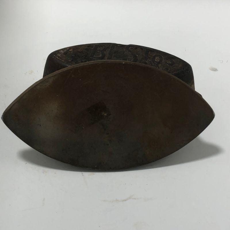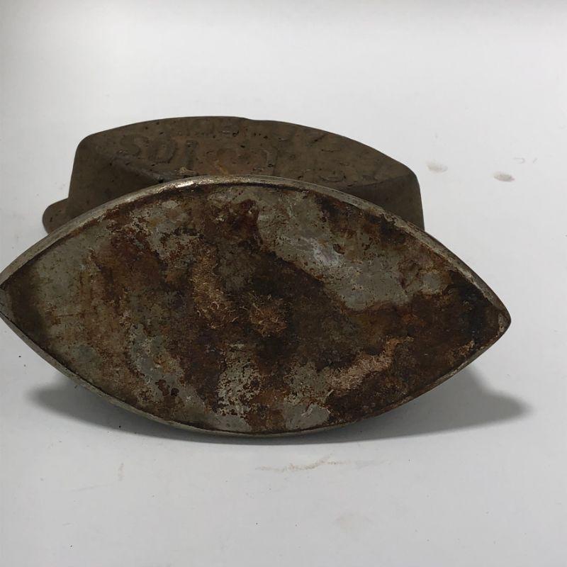 Lot of Three Sad Irons. Re-purpose them as door stops! Use them as home defense! Give them as gag gifts! Acquire a few more and keep them in your trunk to prevent sliding on the ice in the winter. The possibilities are truly endless. Point to point 6.5" 3.5" wide