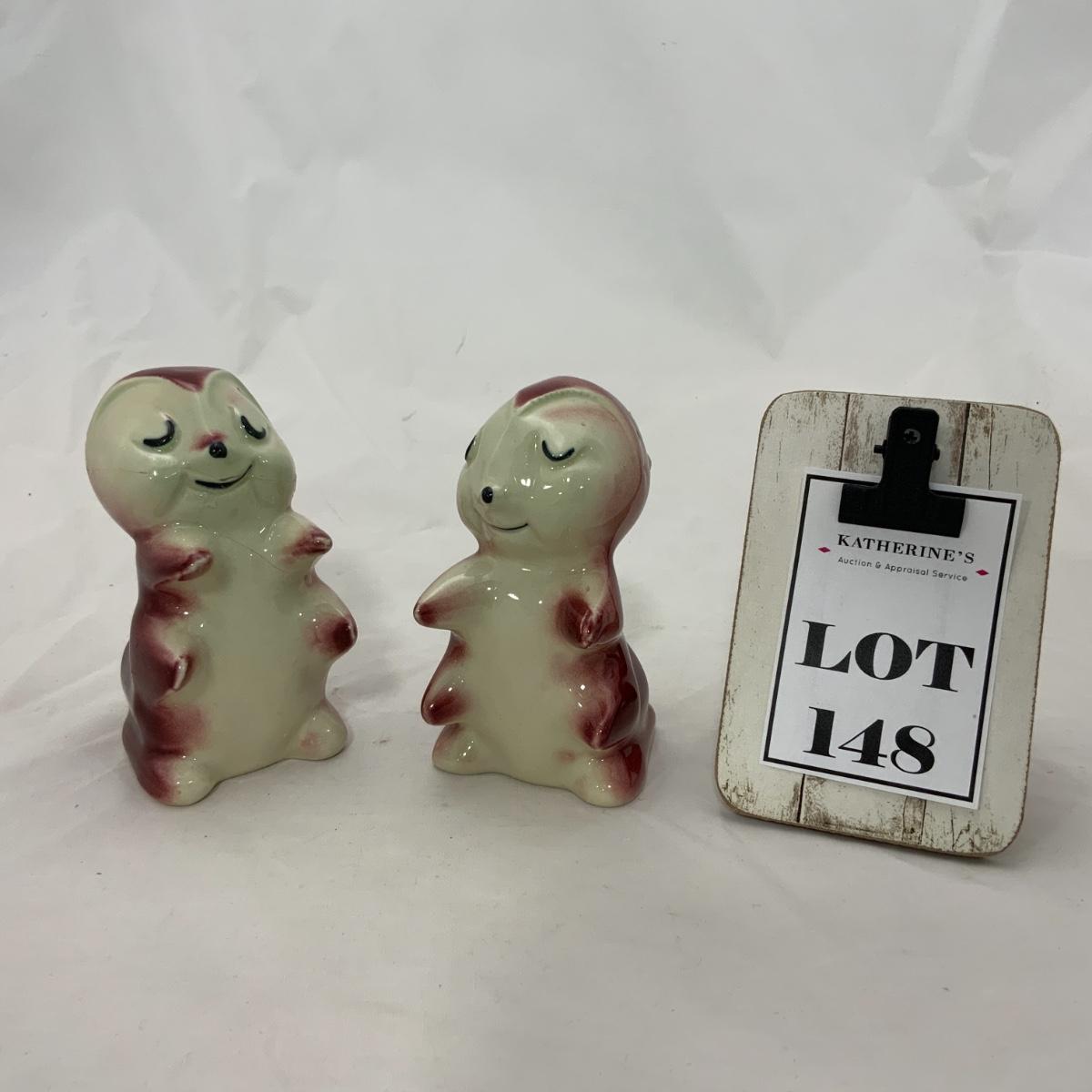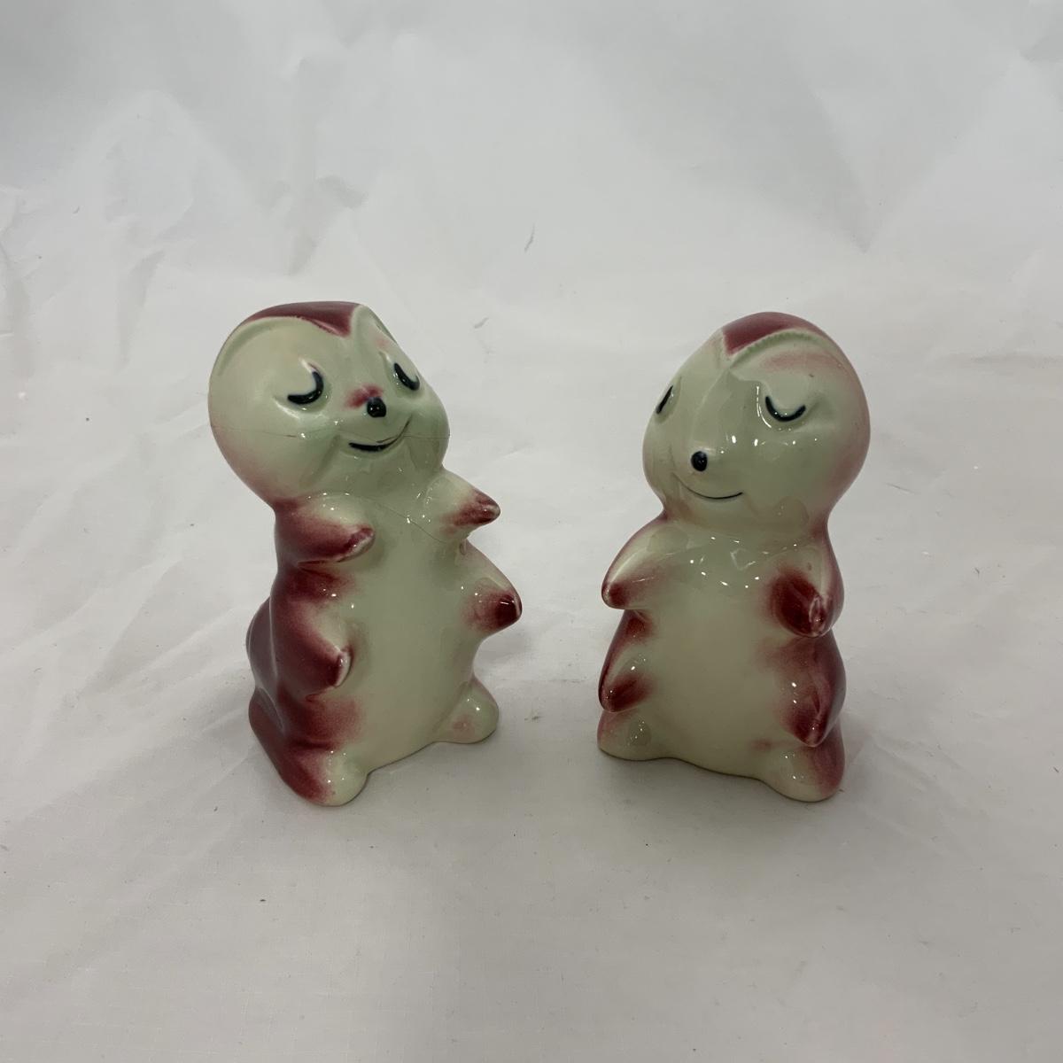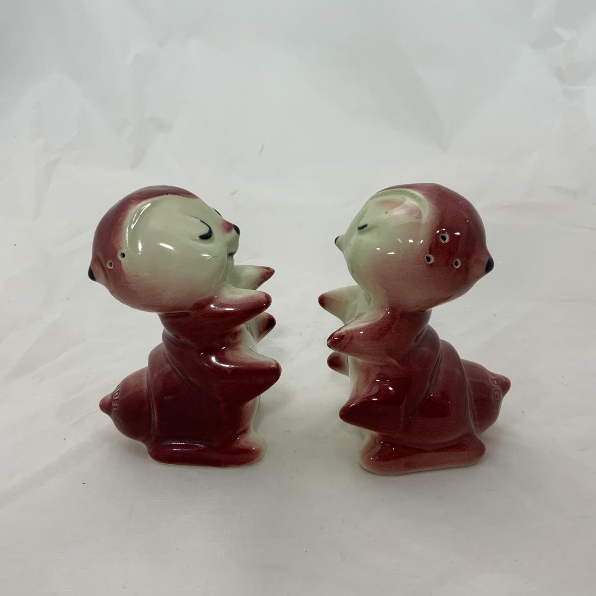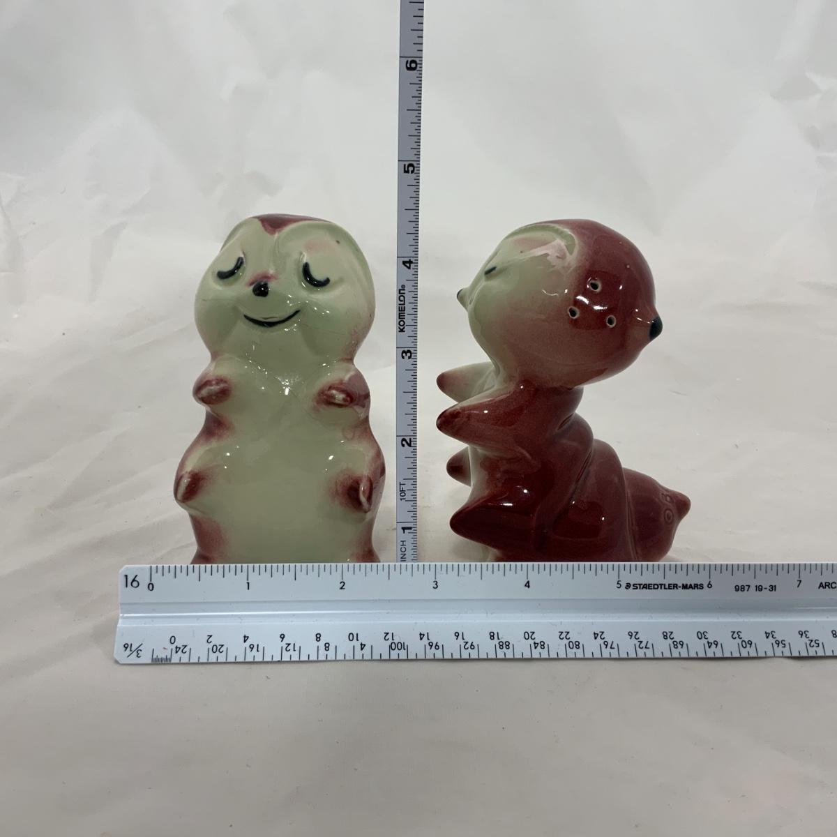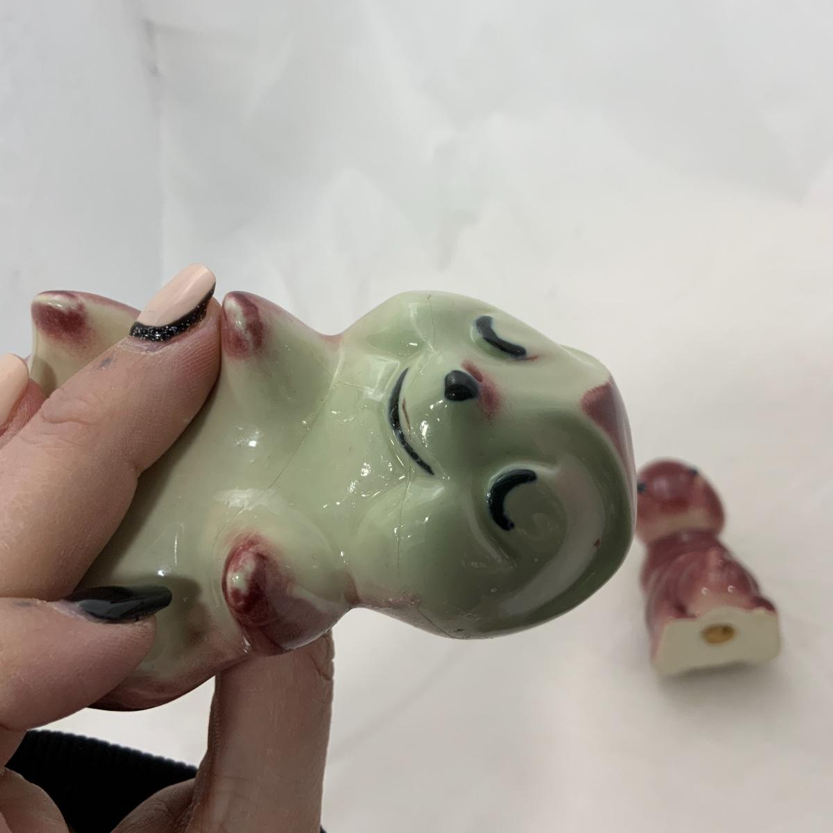 From the Estate of Peter and Alice Radovanovich: A sweet little set of 1950s R. Bendel Love Bug Huggies. Unfortunately one of them has taken a tumble, and was repaired. PLEASE see photos for details and condition. ::: Shipping is NOT available on this lot. If you have any questions regarding this lot please contact the auctioneer either via this website, by direct email or by phone. PICK UP TIMES and other important information can be found in the TERMS and DESCRIPTION of the auction. Please take a look for pertinent information. Thanks!