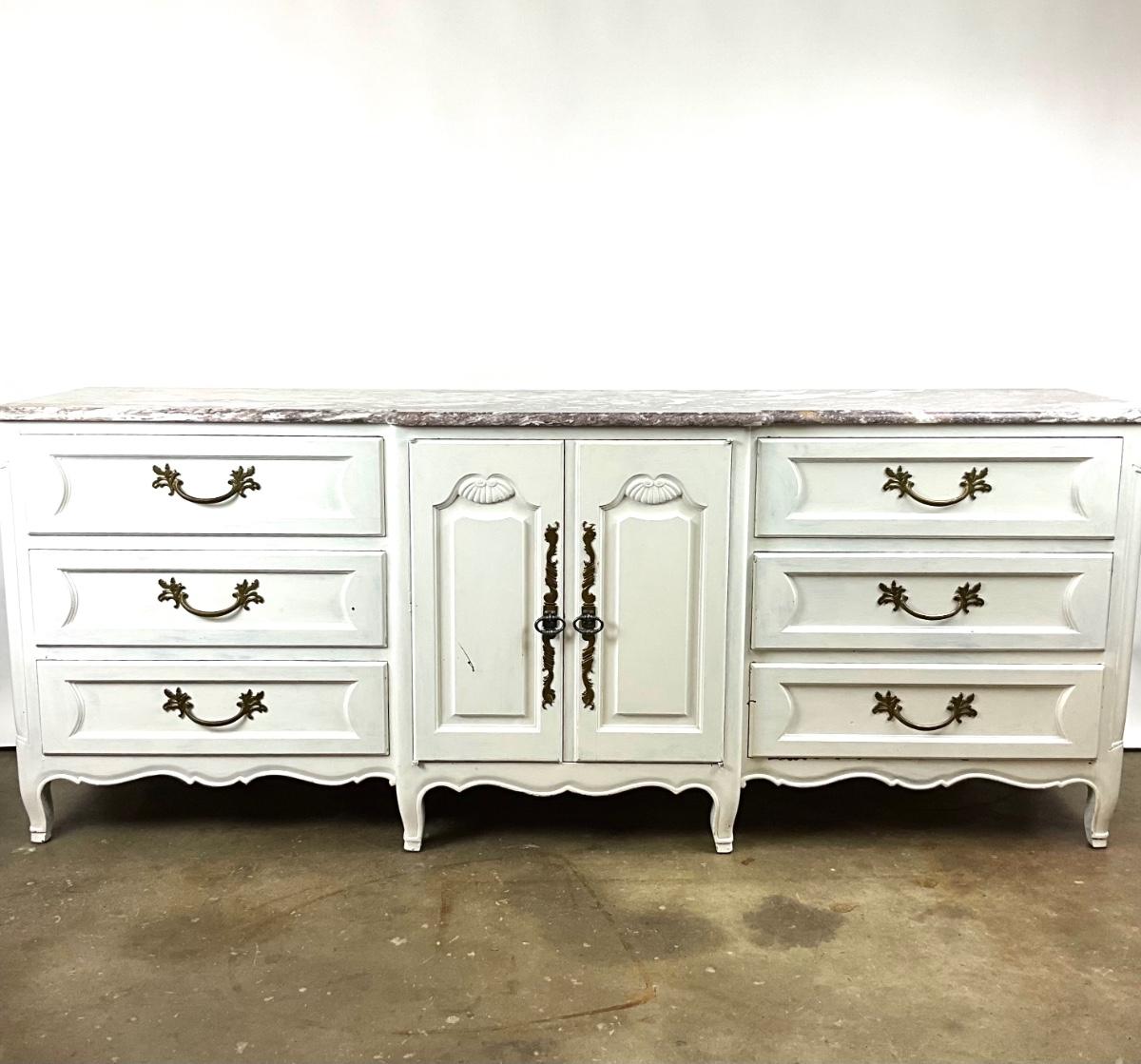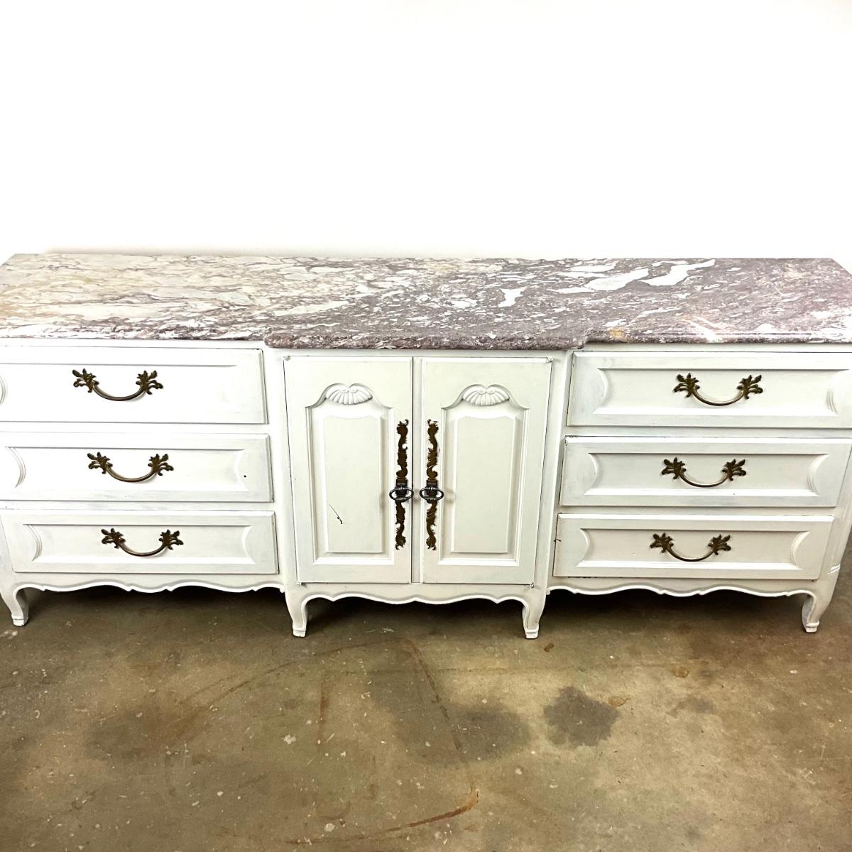 1484 Vintage Painted Marble Top Dresser