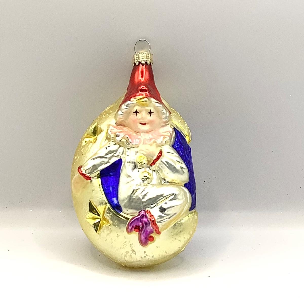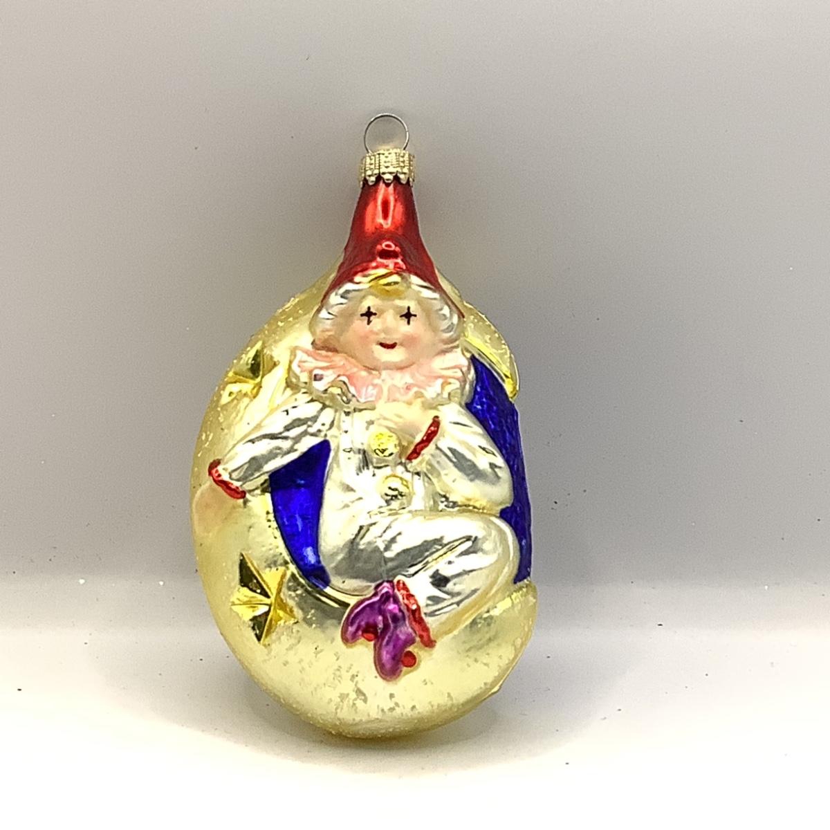 1485 Christopher Radko 1993 Mooning Over You Clown Glass Ornament