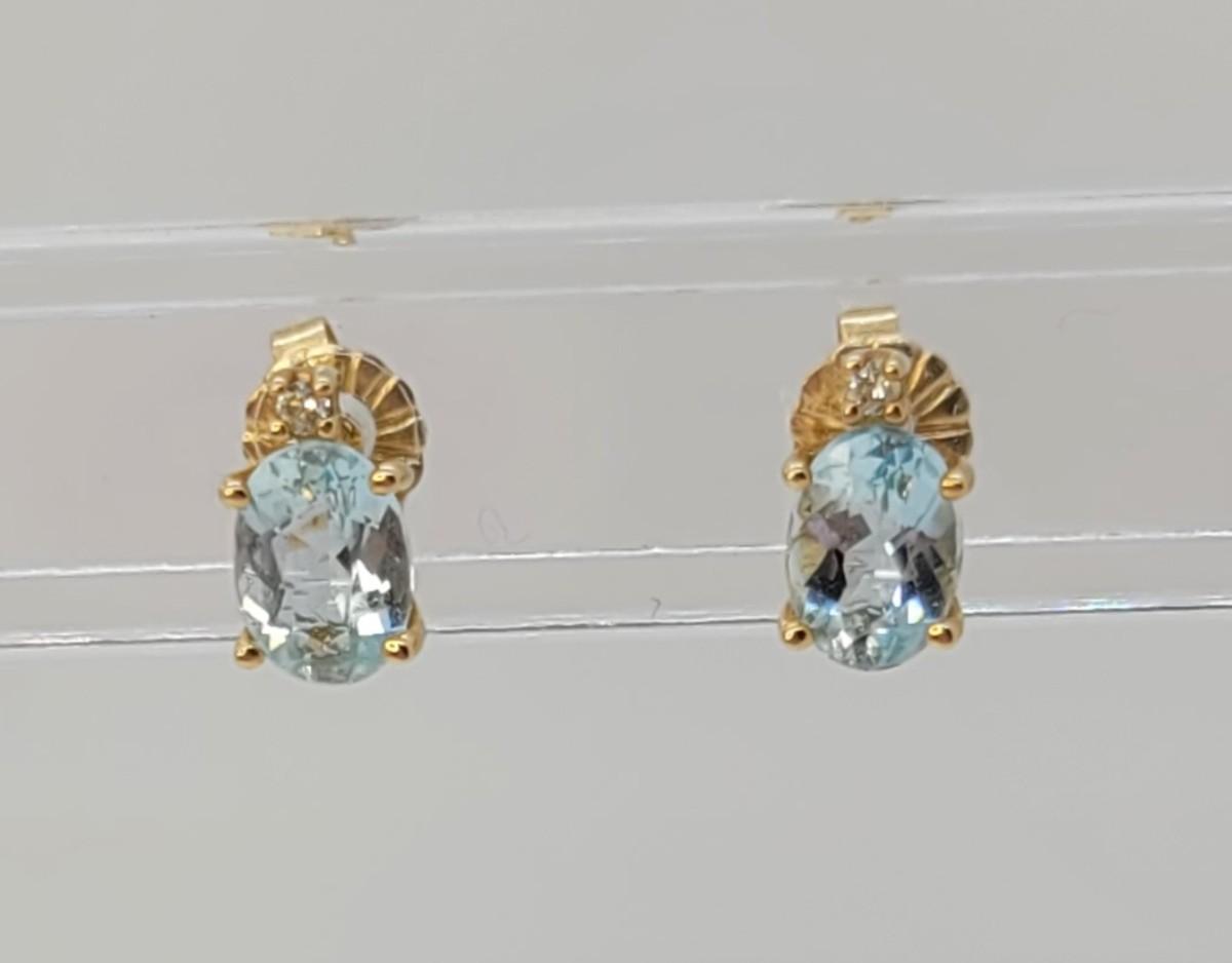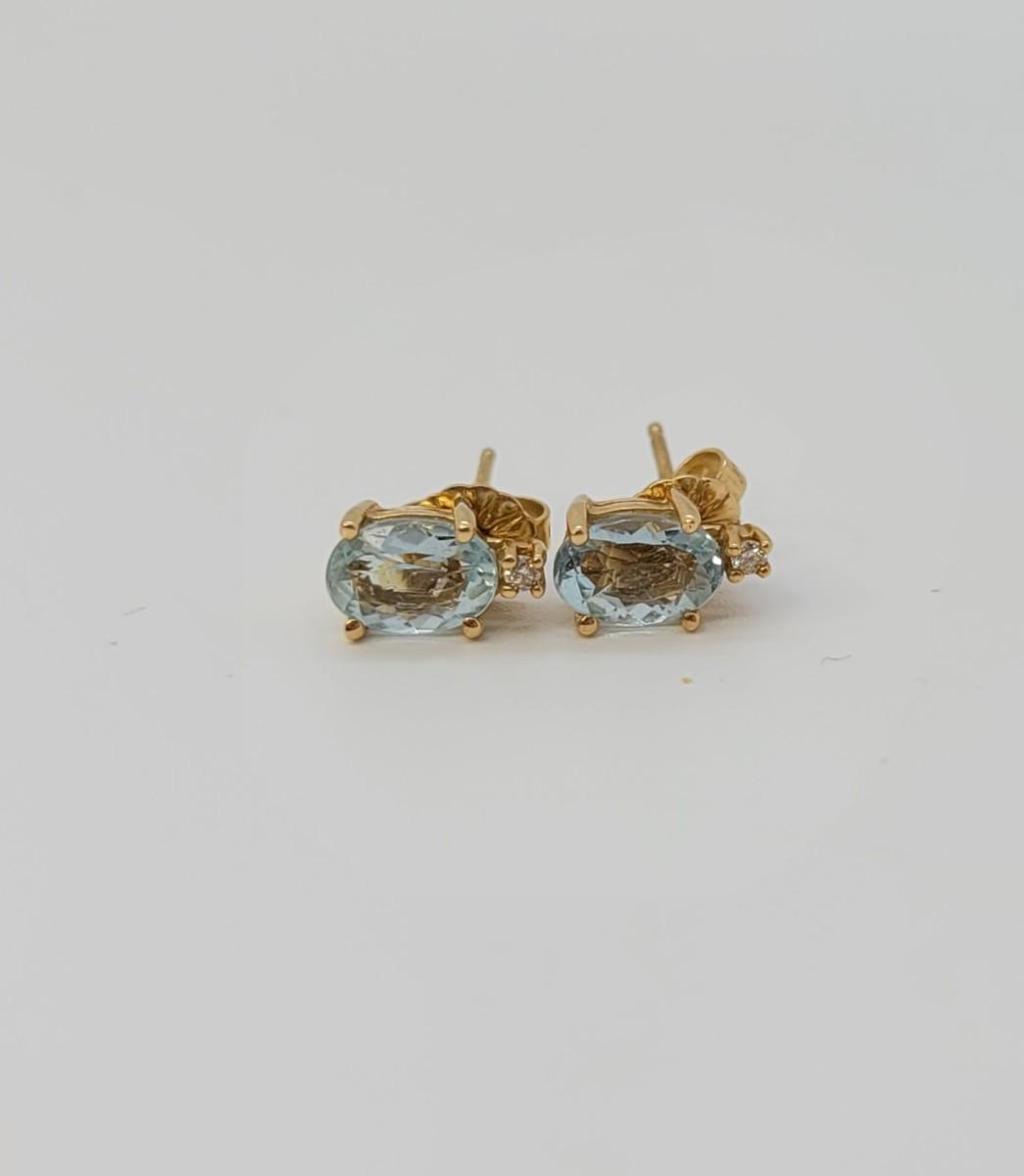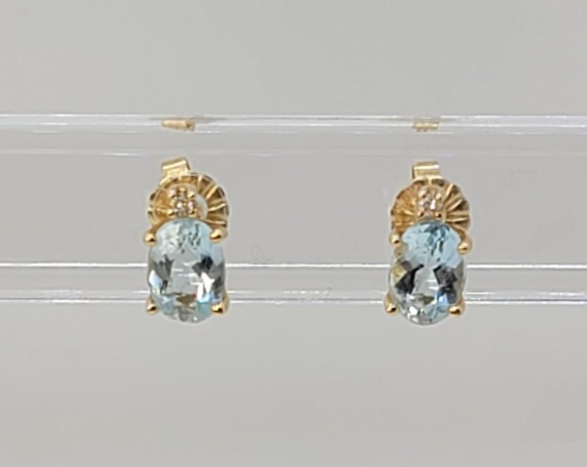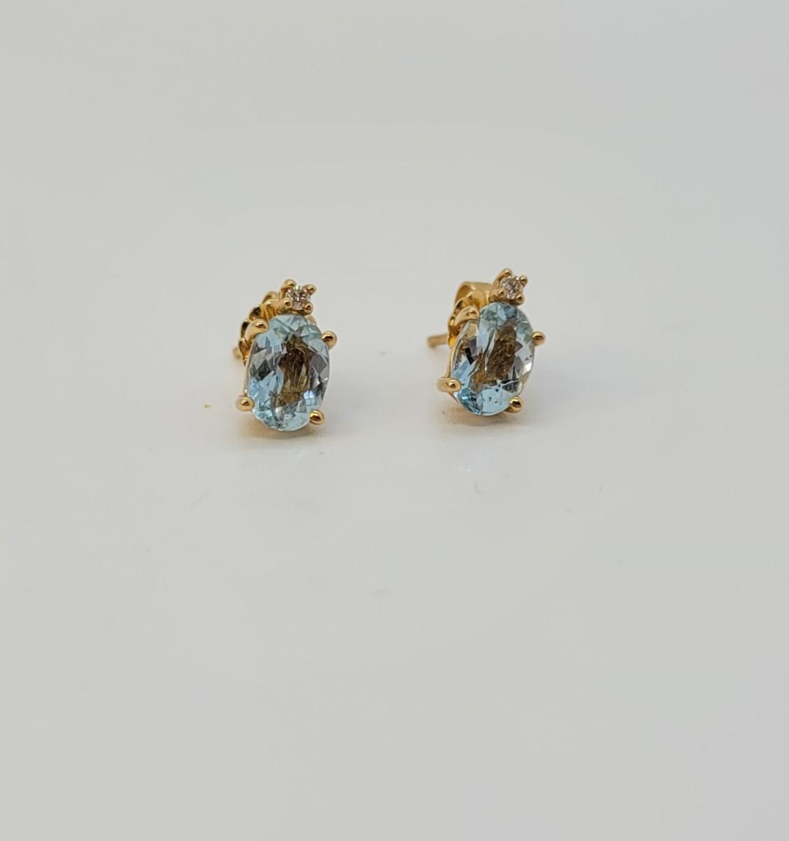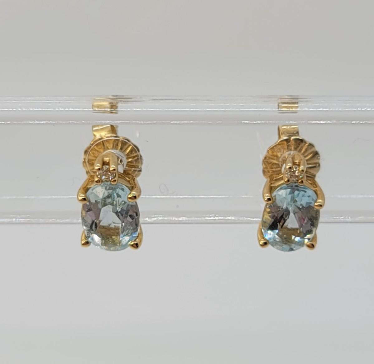 149: 1.5g 14k Blue Topaz with diamond chip pierced earrings
