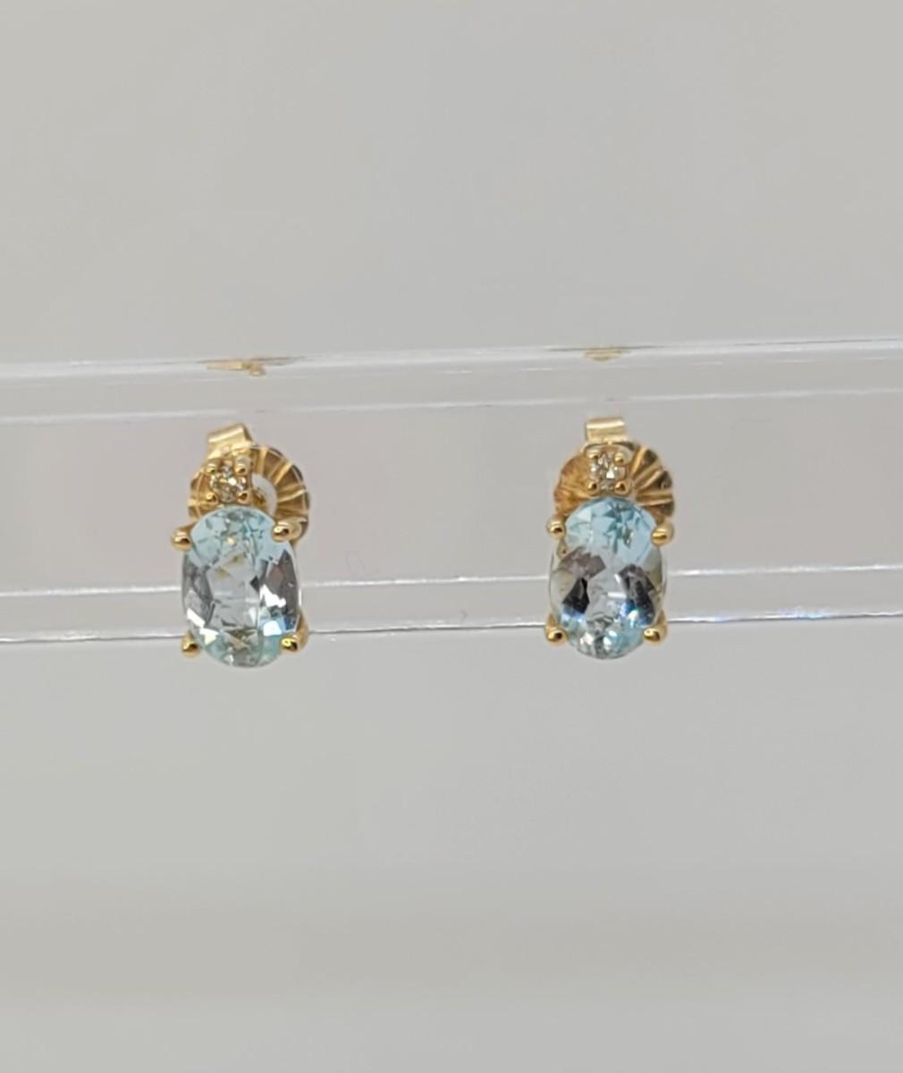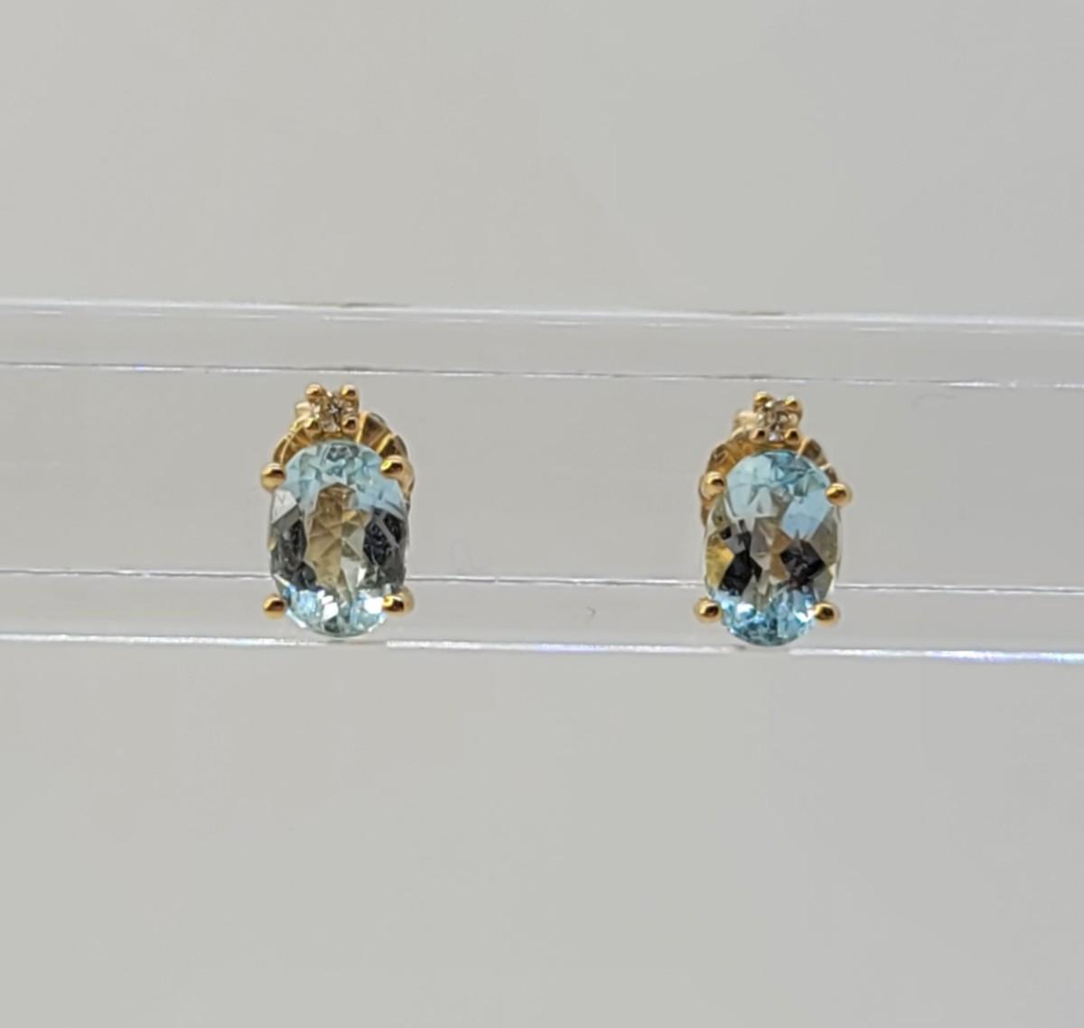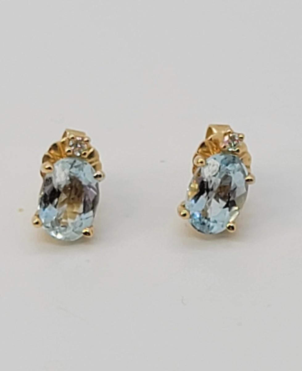 1.5g 14k Blue Topaz with diamond chip pierced earrings