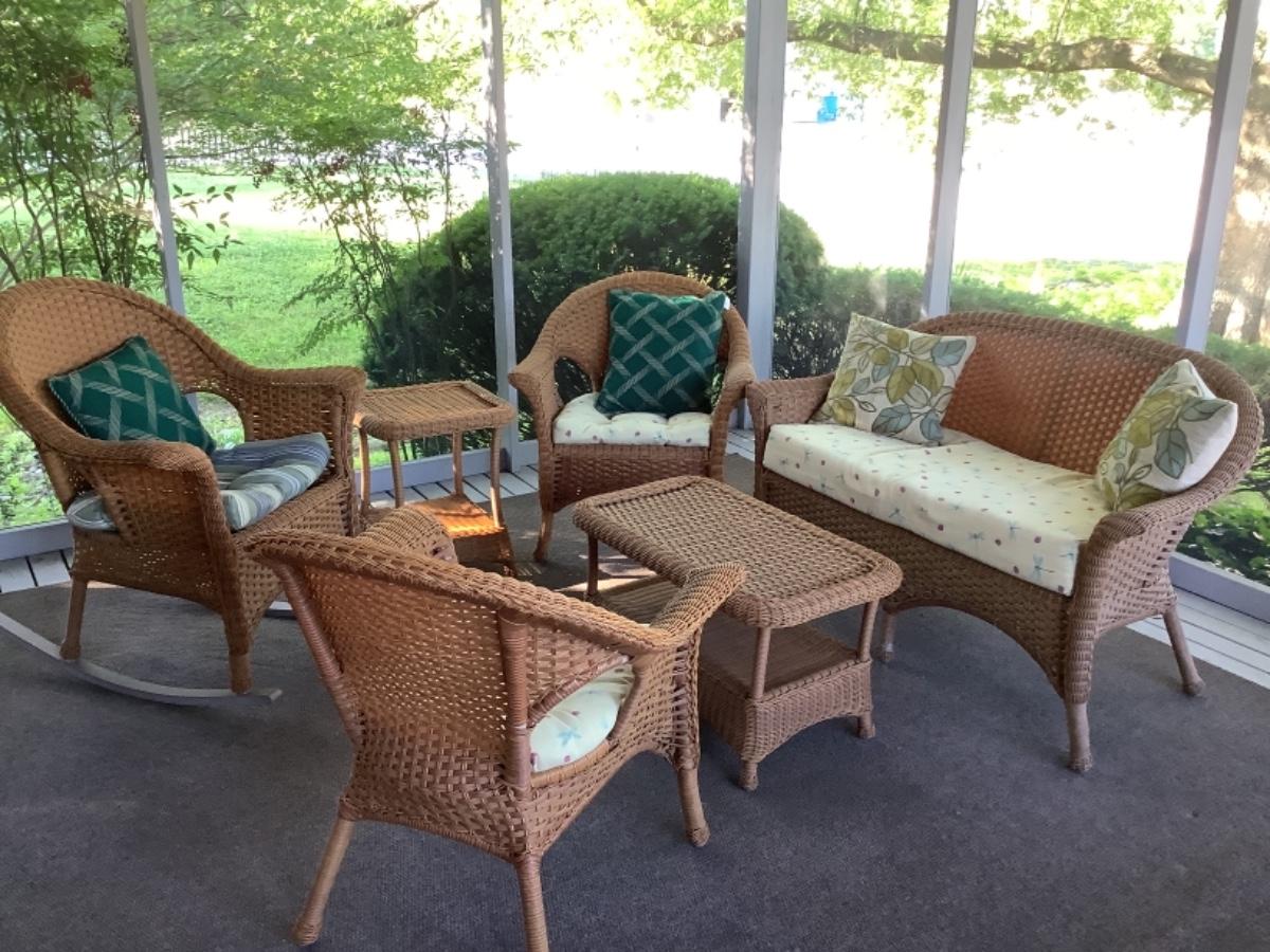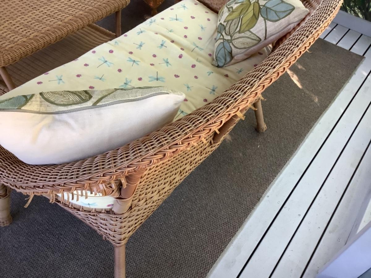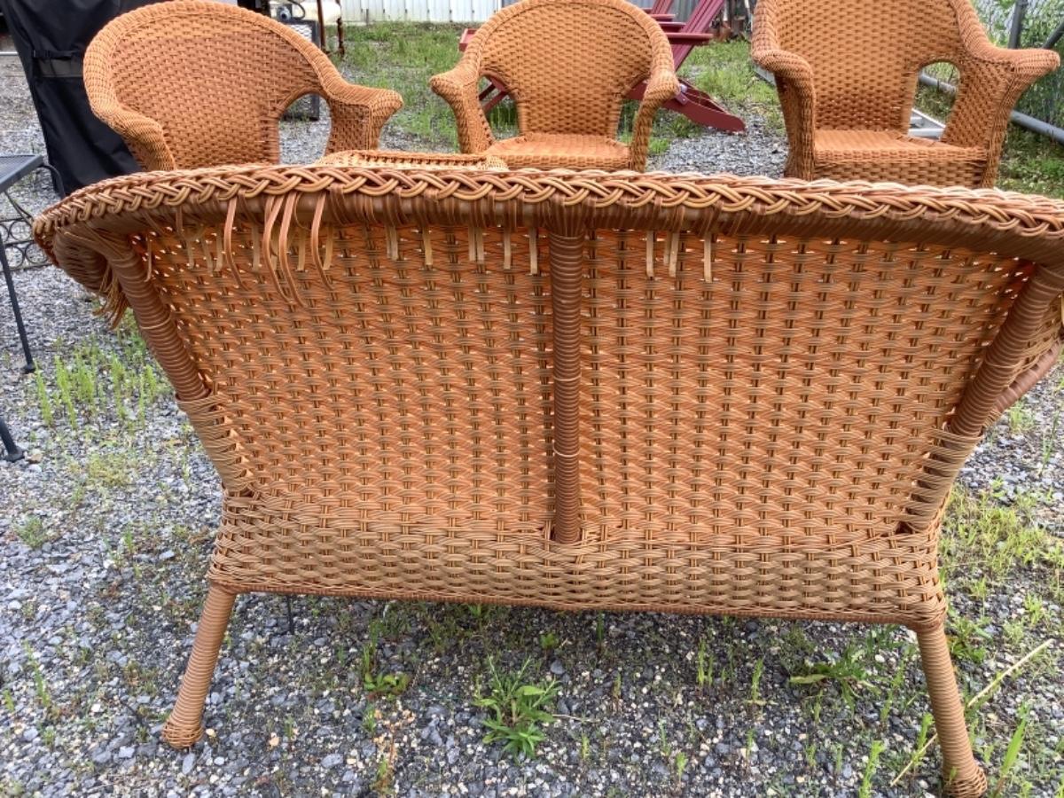 Love Seat - measures 51” Wide x 21” Deep x 33” Tall (back of loveseat is coming unraveled)