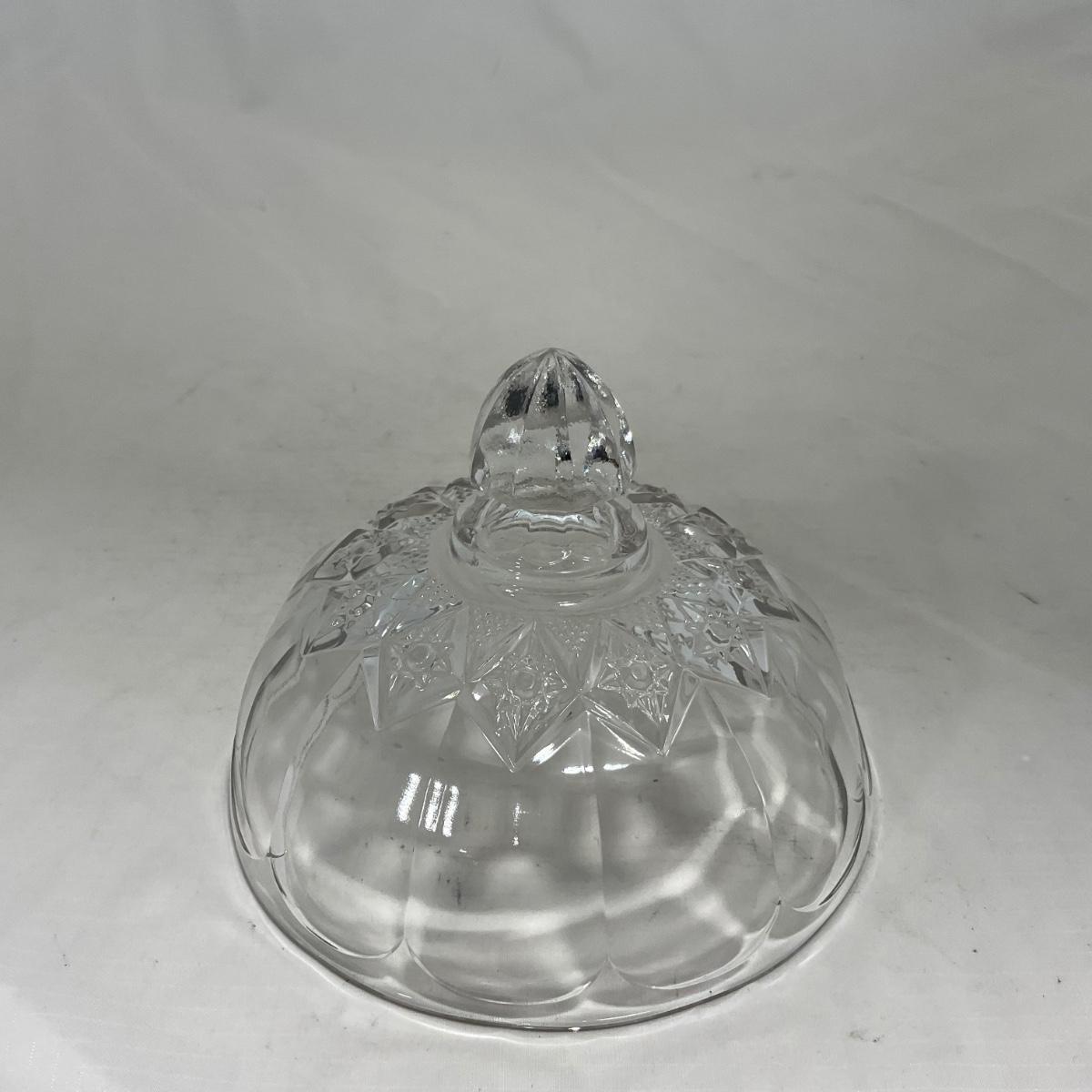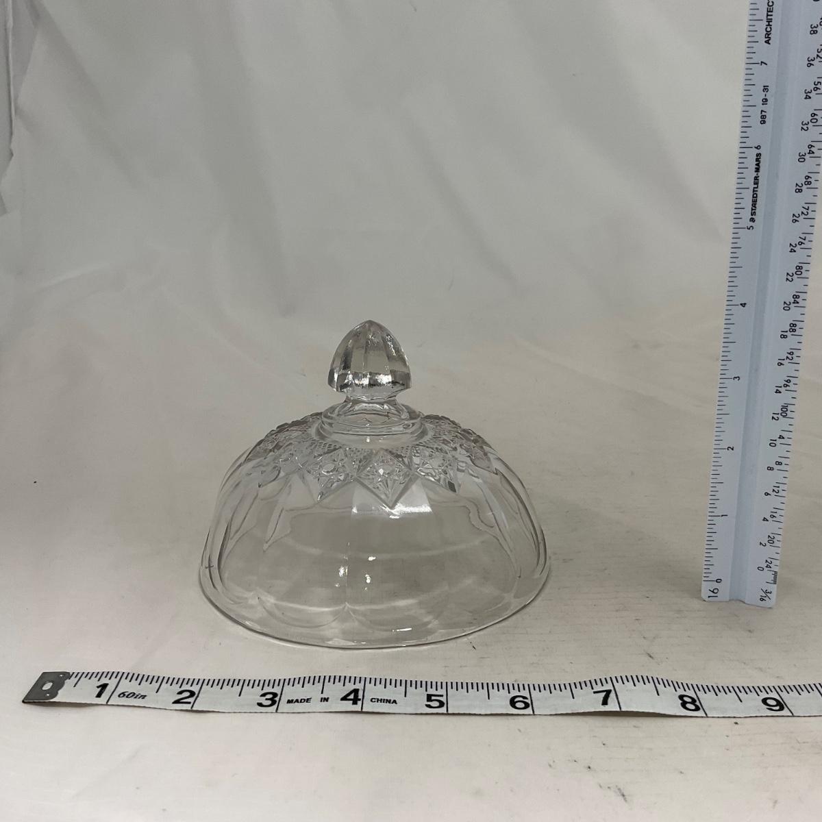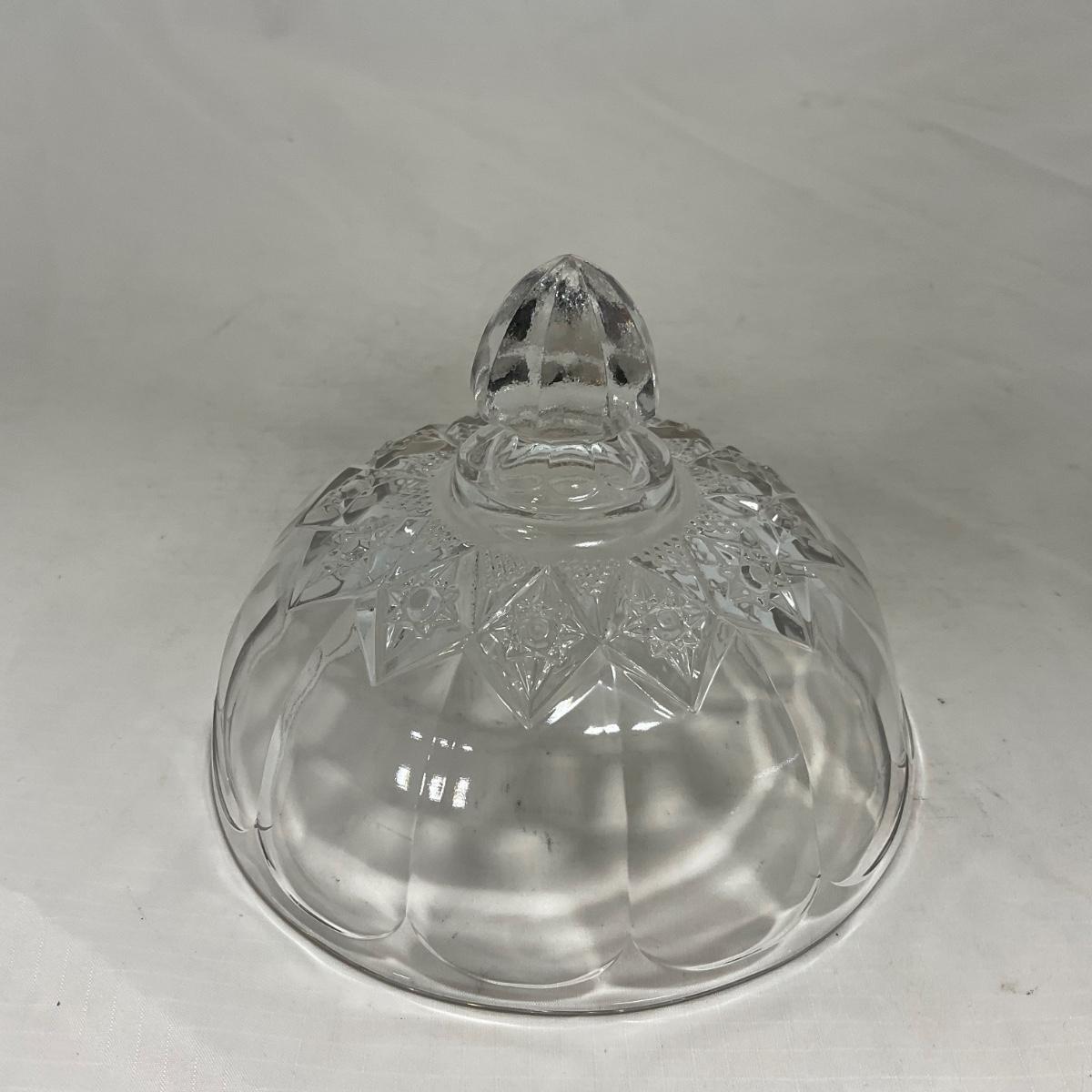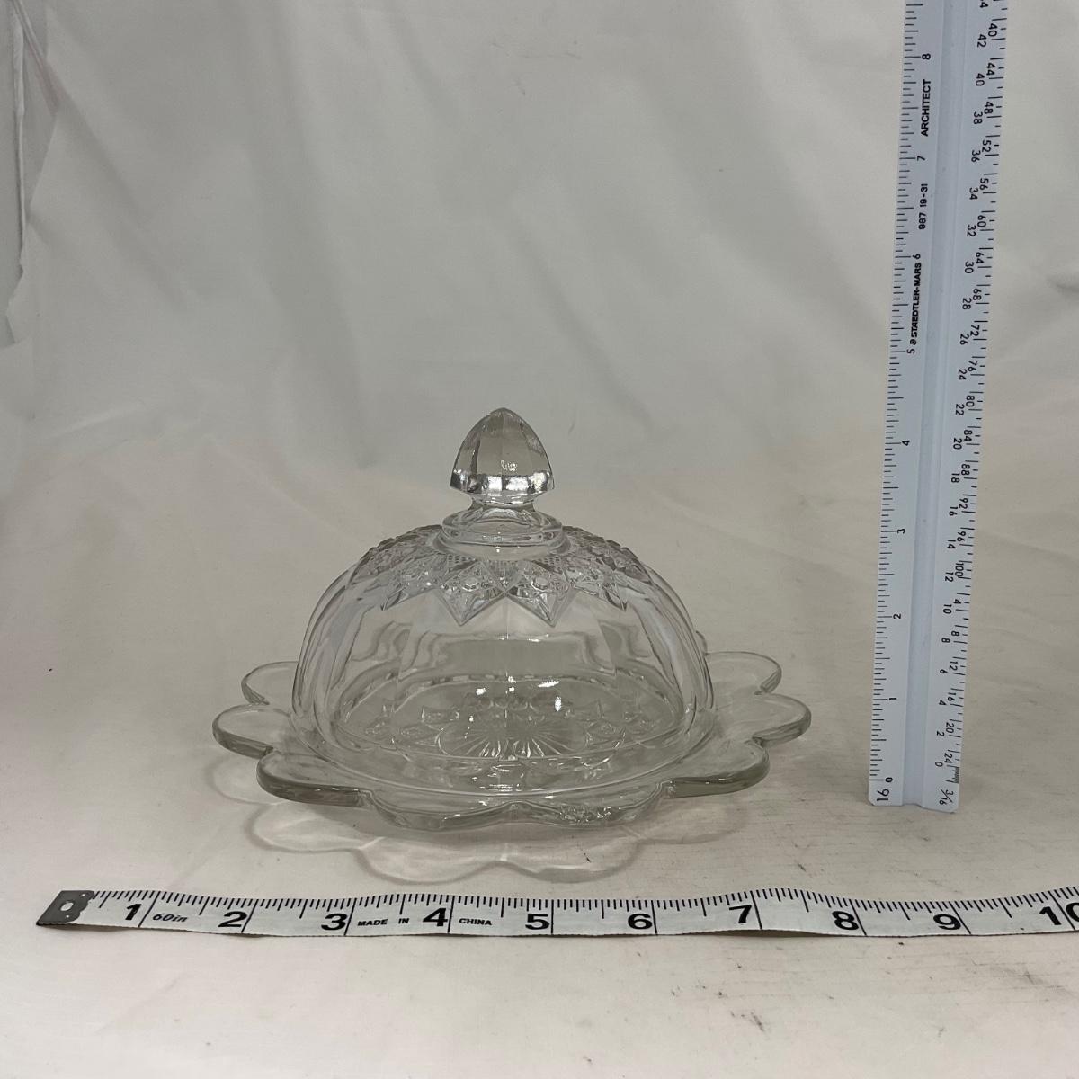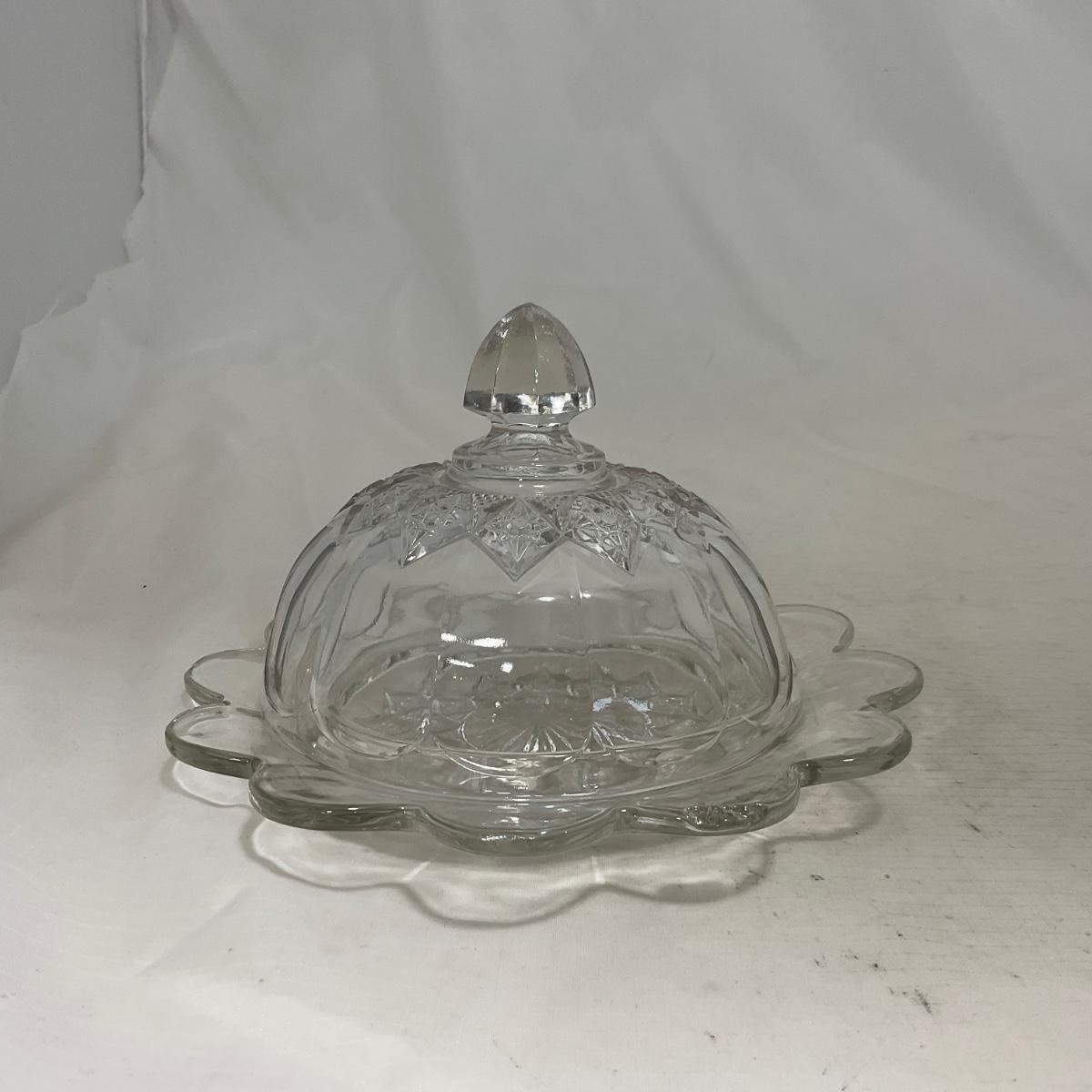 One clear simple clear glass covered butter dish. When looking at this piece I did notice what I though to be a chip but upon looking closer it is smooth so I do believe to just be a defect in the butter mold. Please see photos for details and condition. ::: Shipping is available on this lot. If you require shipping you must let us know at the close of the auction. We will coordinate with you after the item has been won. Shipping fees will include insurance up to or exceeding the value of all items being mailed. If you have any questions regarding this lot please contact the auctioneer either via this website, by direct email or by phone. PICK UP TIMES and other important information can be found in the TERMS and DESCRIPTION of the auction. Please take a look for pertinent information. Thanks!