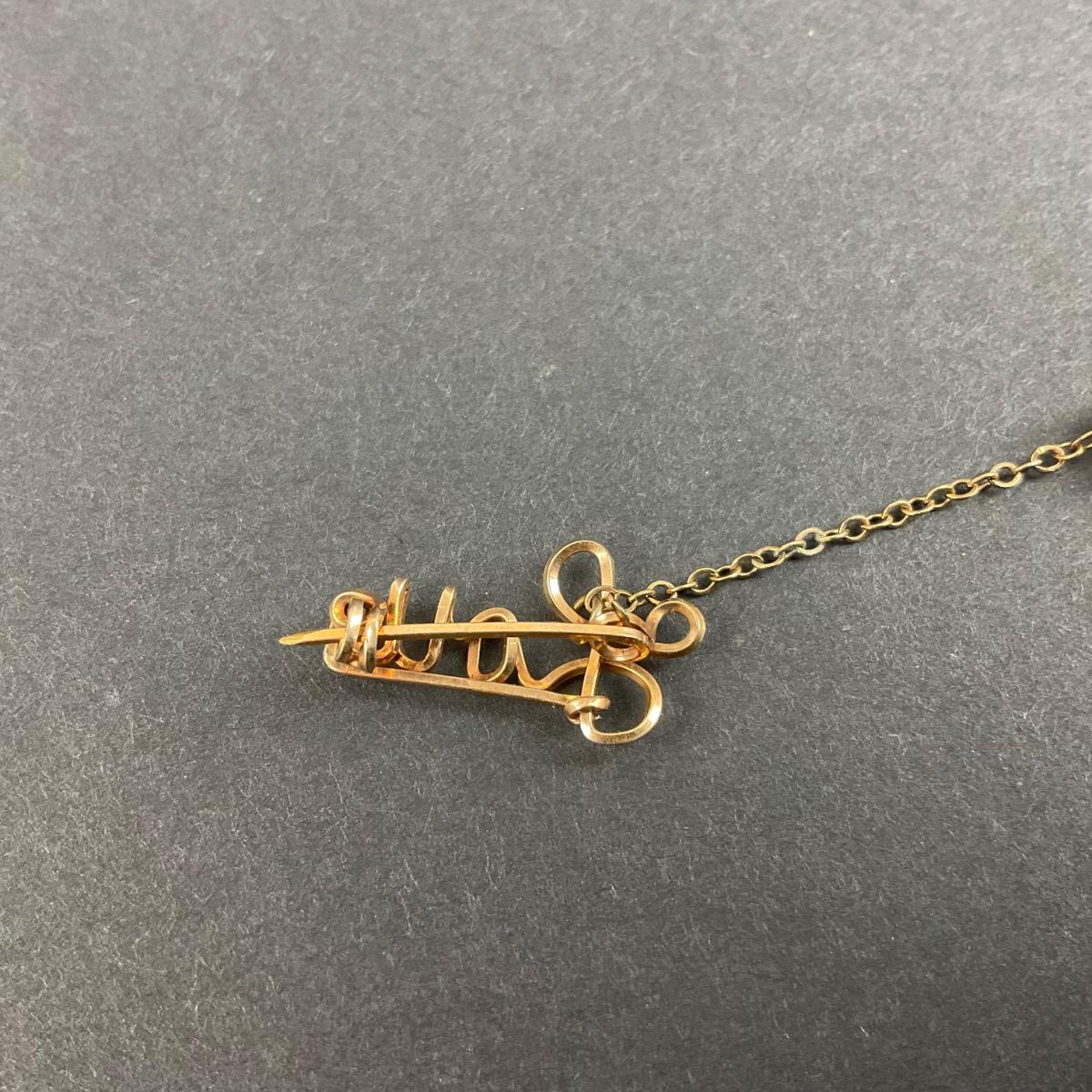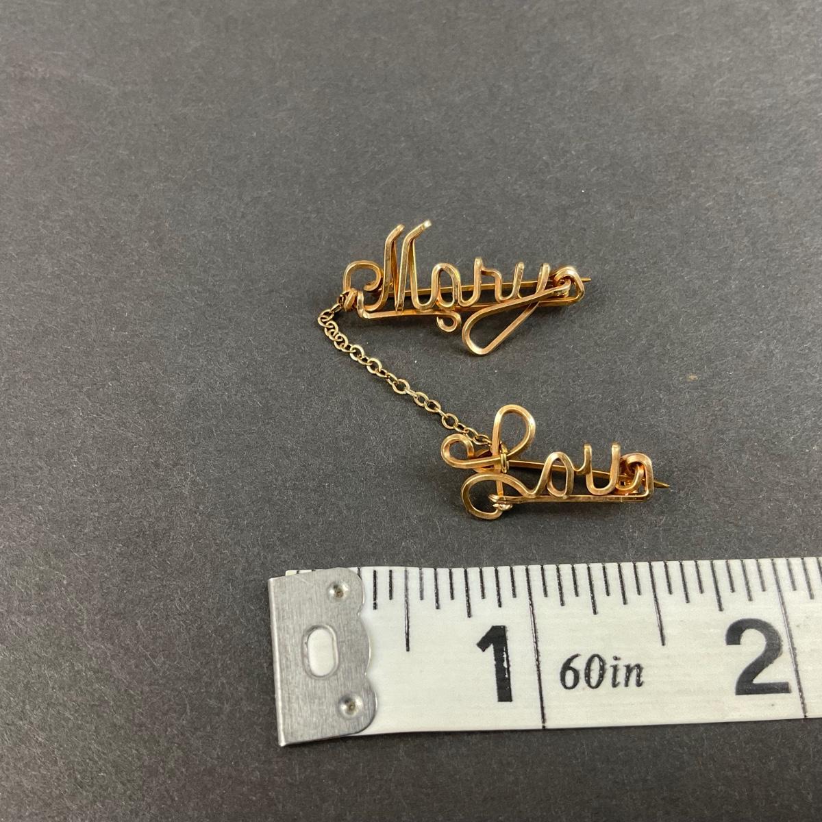 One 12K Gold (Tested) Mary Lou handmade pin. The total weight of this piece is 1.2 DWT. Please see photos for details and condition. Any condition statement is given as a courtesy to a client, is an opinion, and should not be treated as a statement of fact. Reference to condition written, oral or within a condition report shall not be regarded as a full account of condition and may not include all defects, alterations, or restorations. Absence of a condition report does not imply a lot is flawless or lacking imperfections or damage. Katherine’s Auction & Appraisal Service shall have no responsibility for any error or omission. Returns shall not be accepted on the basis of condition. ::: Shipping is available on this lot. If you require shipping you must let us know at the close of the auction. We will coordinate with you after the item has been won. Shipping fees will include insurance up to or exceeding the value of all items being mailed. If you have any questions regarding this lot please contact the auctioneer either via this website, by direct email or by phone. PICK UP TIMES and other important information can be found in the TERMS and DESCRIPTION of the auction. Please take a look for pertinent information. Thanks!