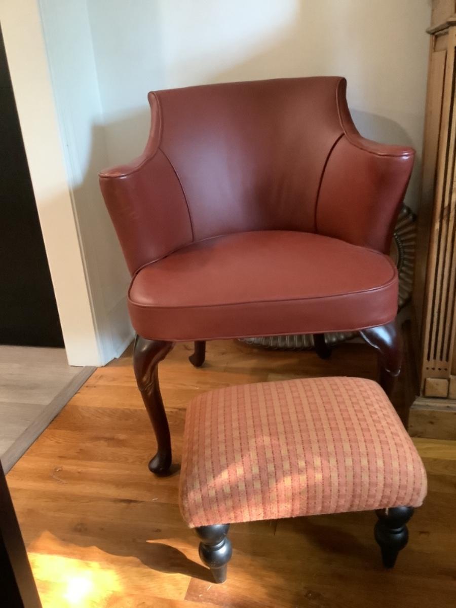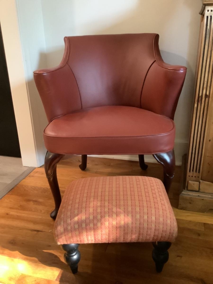 Red Leather Arm Chair with Small Foot Stool