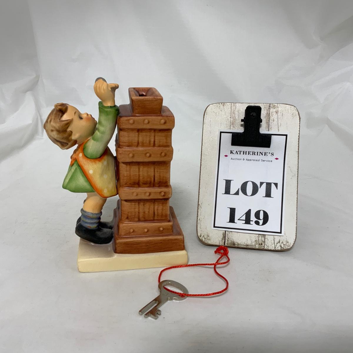 We’ve even got the key! Little Thrifty Bank, Hum 118. TMK-6. Please see photos for details and condition. Crazing noted. ::: Shipping is available on this lot. If you require shipping you must let us know at the close of the auction. We will coordinate with you after the item has been won. Shipping fees will include insurance up to or exceeding the value of all items being mailed. If you have any questions regarding this lot please contact the auctioneer either via this website, by direct email or by phone. PICK UP TIMES and other important information can be found in the TERMS and DESCRIPTION of the auction. Please take a look for pertinent information. Thanks!