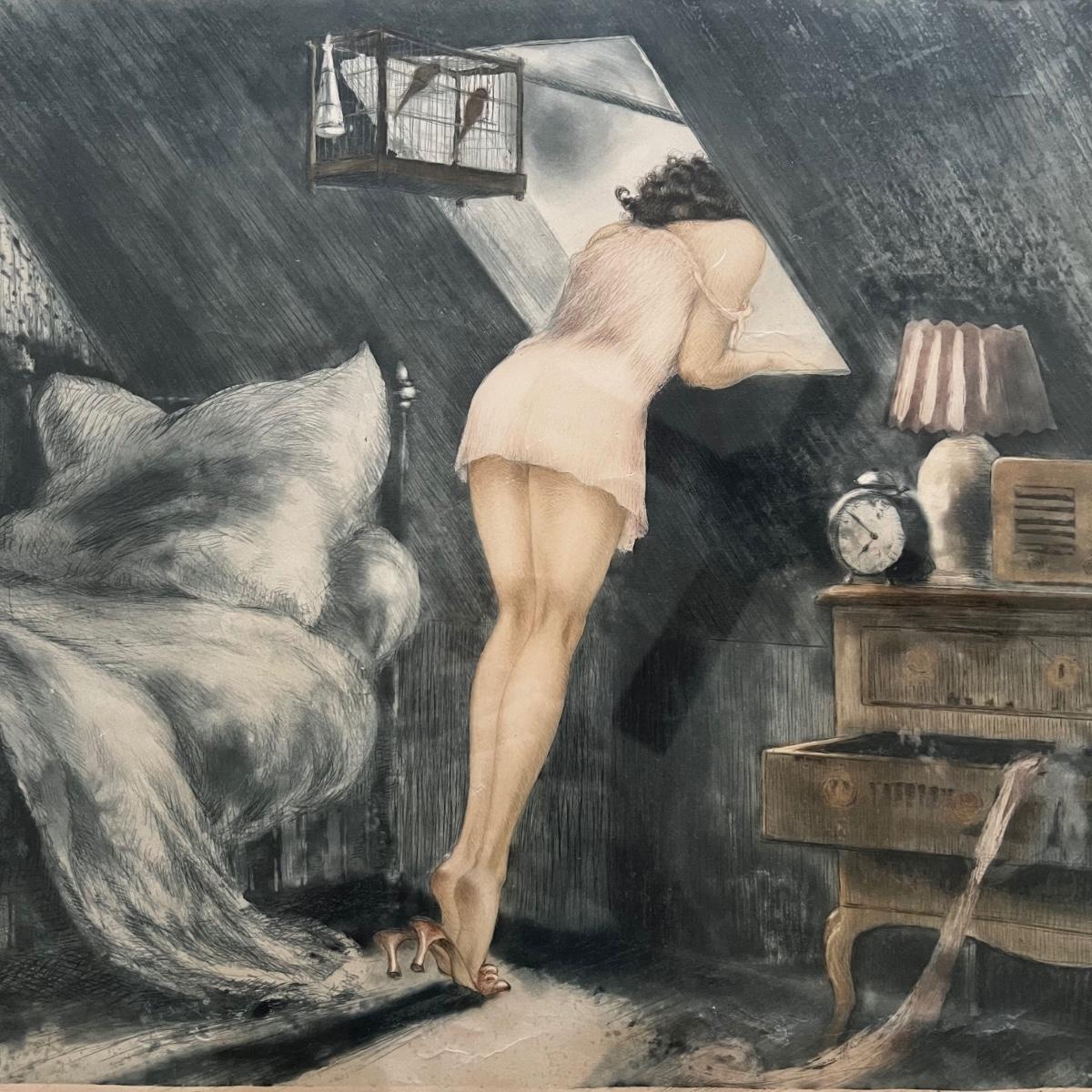 149 Louis Icart Pencil Signed Etching ( 1888 - 1950 )