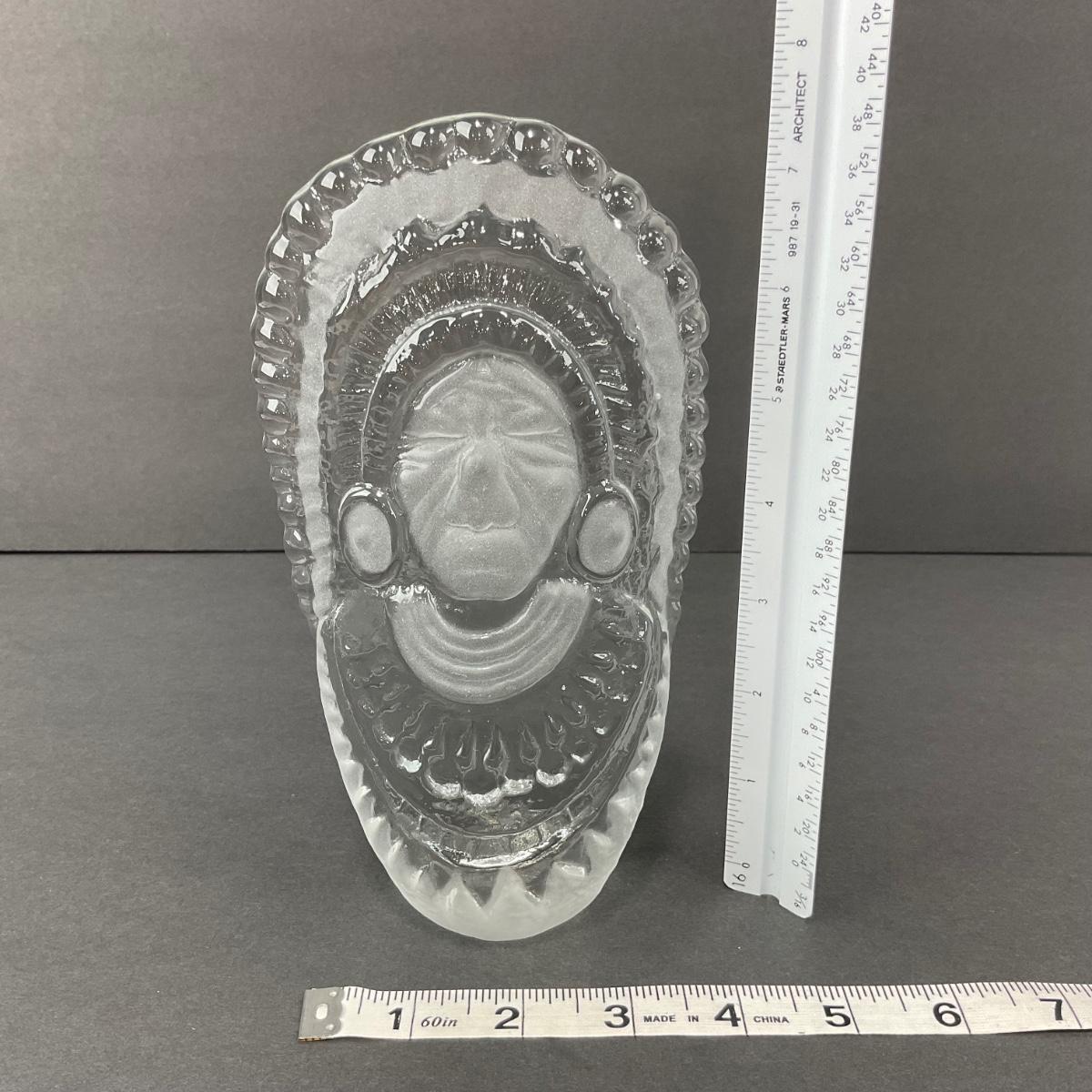 One believed to be Mats Jonasson Swedish Crystal Indian chief figure. Please see photos for details and condition. Any condition statement is given as a courtesy to a client, is an opinion, and should not be treated as a statement of fact. Reference to condition written, oral or within a condition report shall not be regarded as a full account of condition and may not include all defects, alterations, or restorations. Absence of a condition report does not imply a lot is flawless or lacking imperfections or damage. Katherine’s Auction & Appraisal Service shall have no responsibility for any error or omission. Returns shall not be accepted on the basis of condition. ::: Shipping is available on this lot. If you require shipping you must let us know at the close of the auction. We will coordinate with you after the item has been won. Shipping fees will include insurance up to or exceeding the value of all items being mailed. If you have any questions regarding this lot please contact the auctioneer either via this website, by direct email or by phone. PICK UP TIMES and other important information can be found in the TERMS and DESCRIPTION of the auction. Please take a look for pertinent information. Thanks!