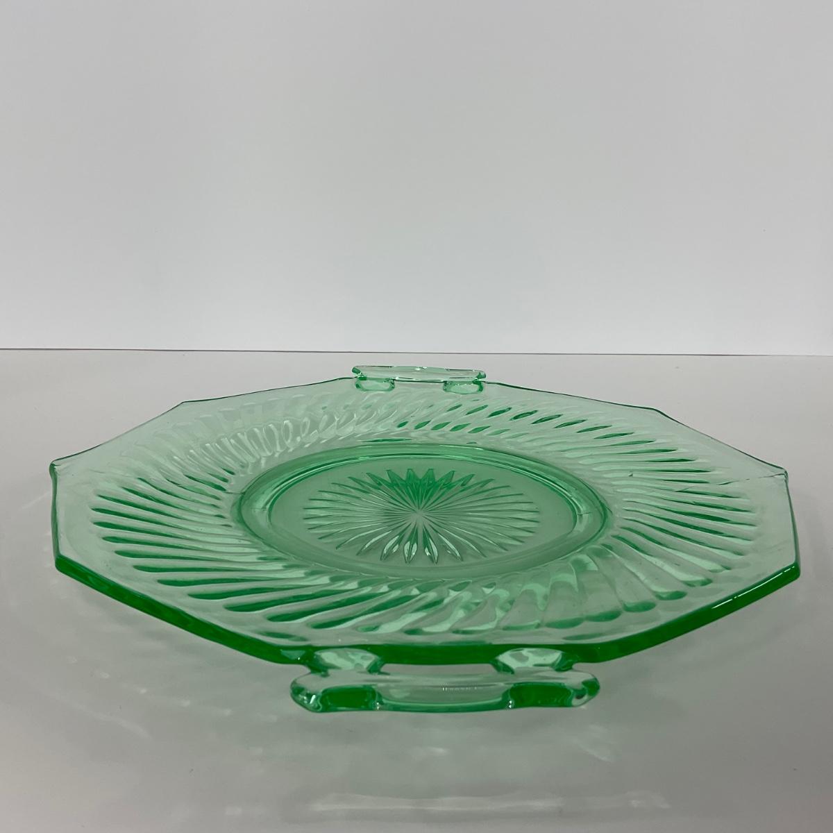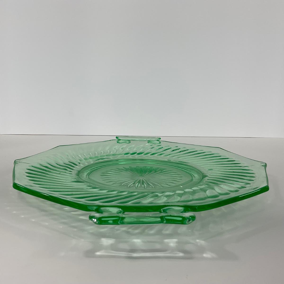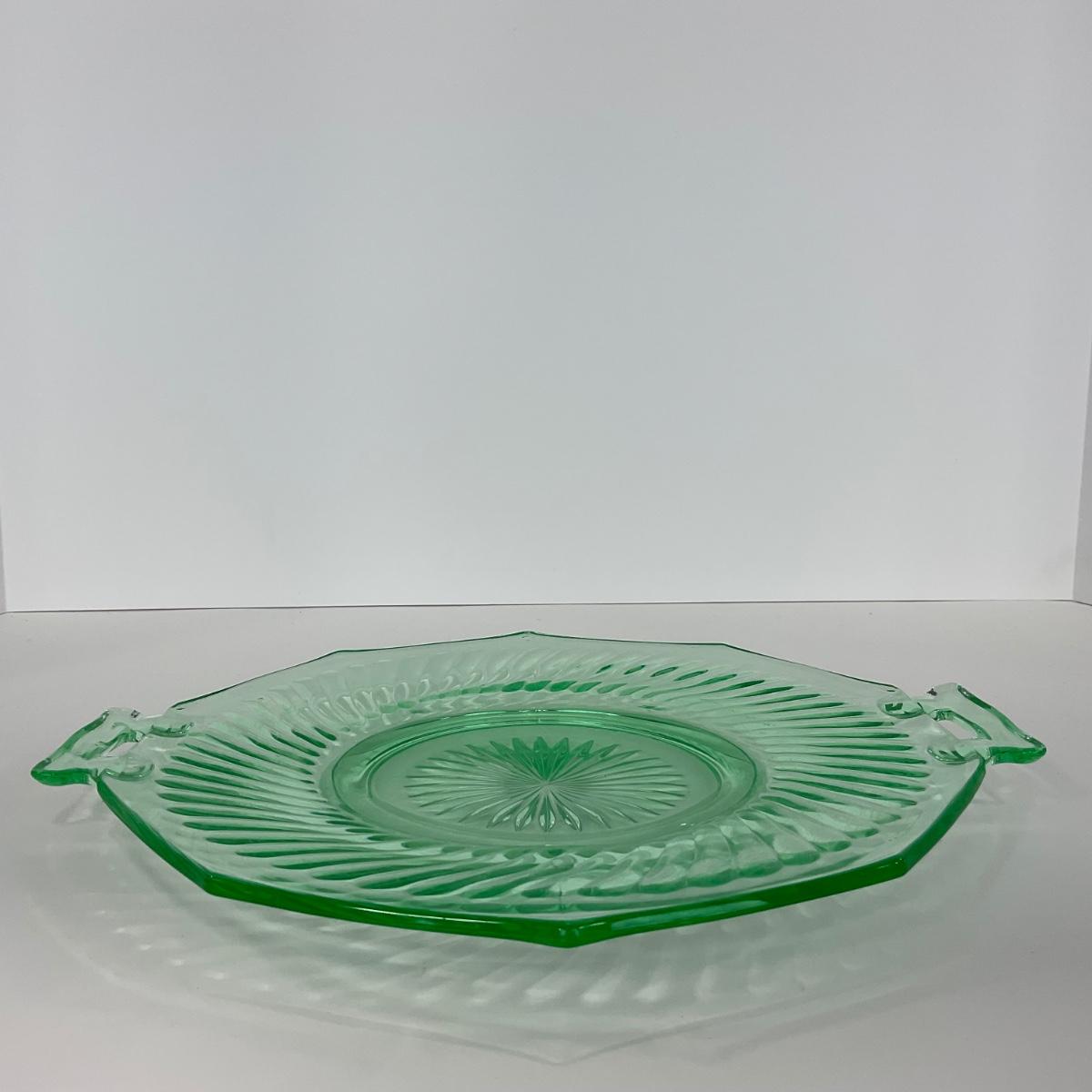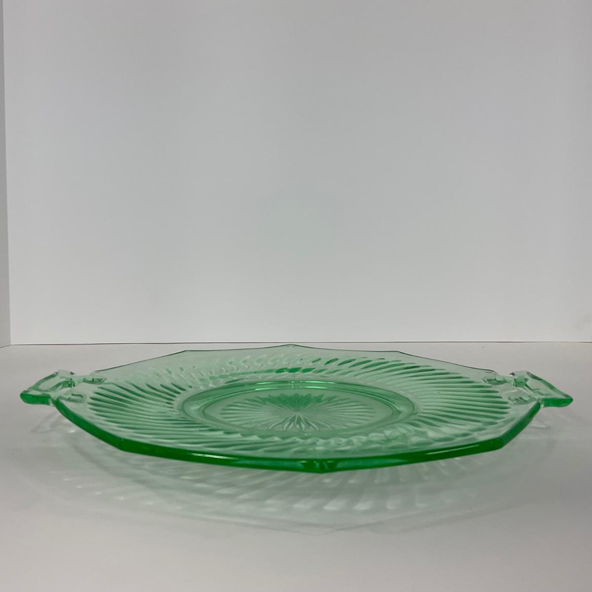 -149- URANIUM | Green Imperial Twisted Optic Cake Plate