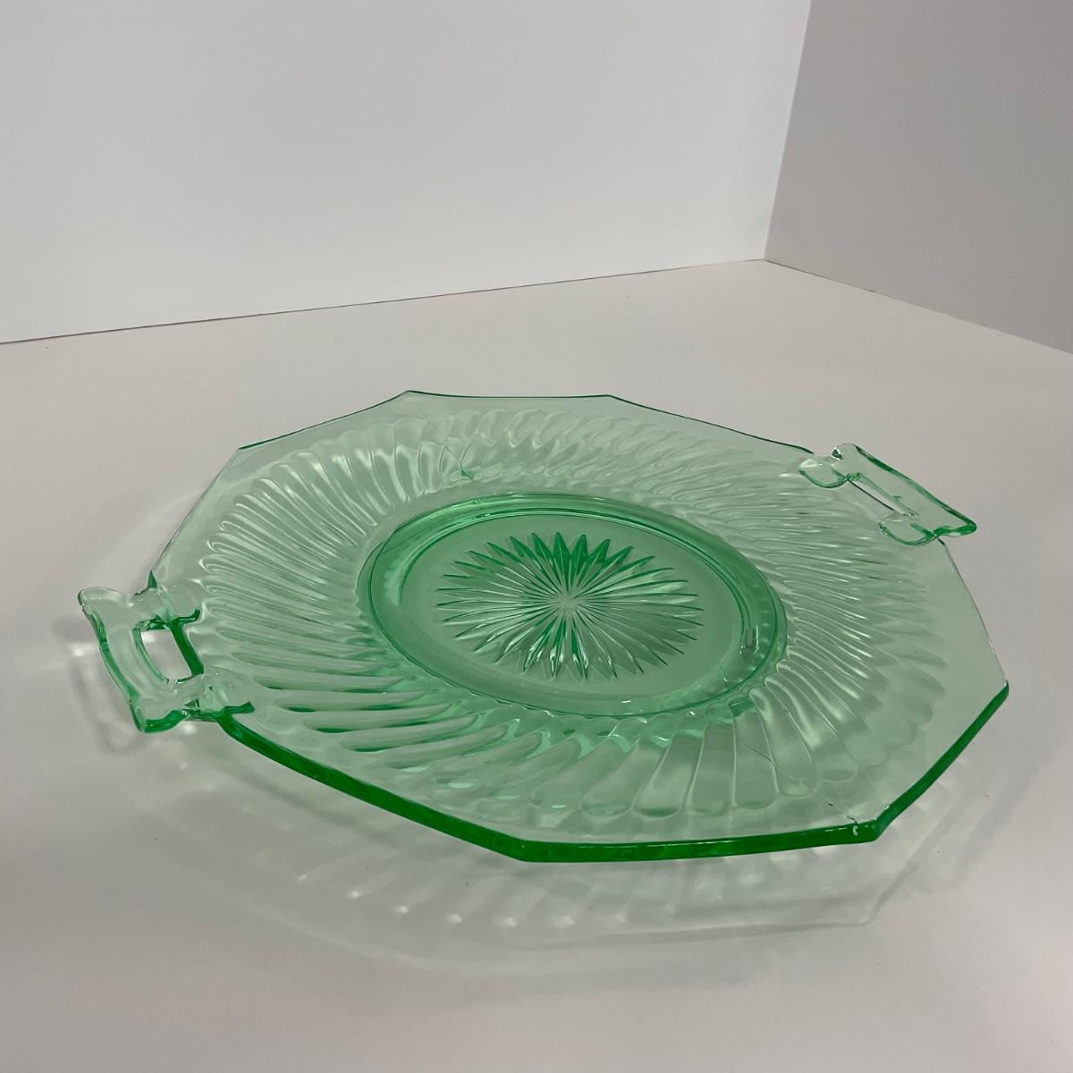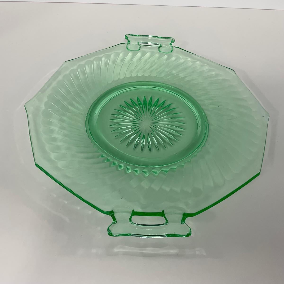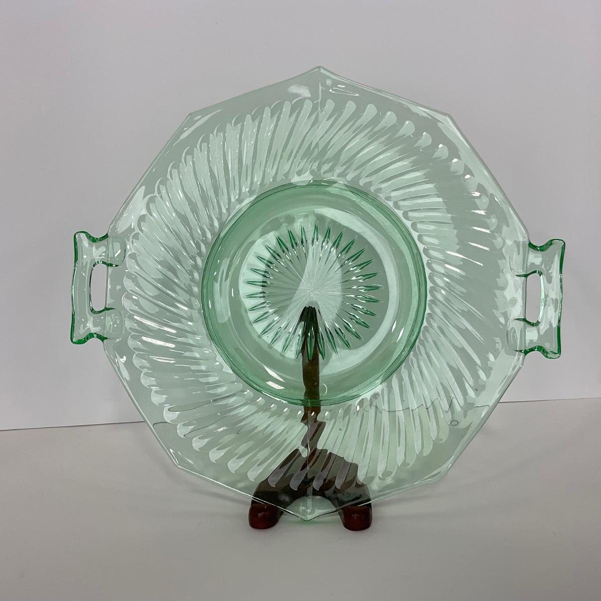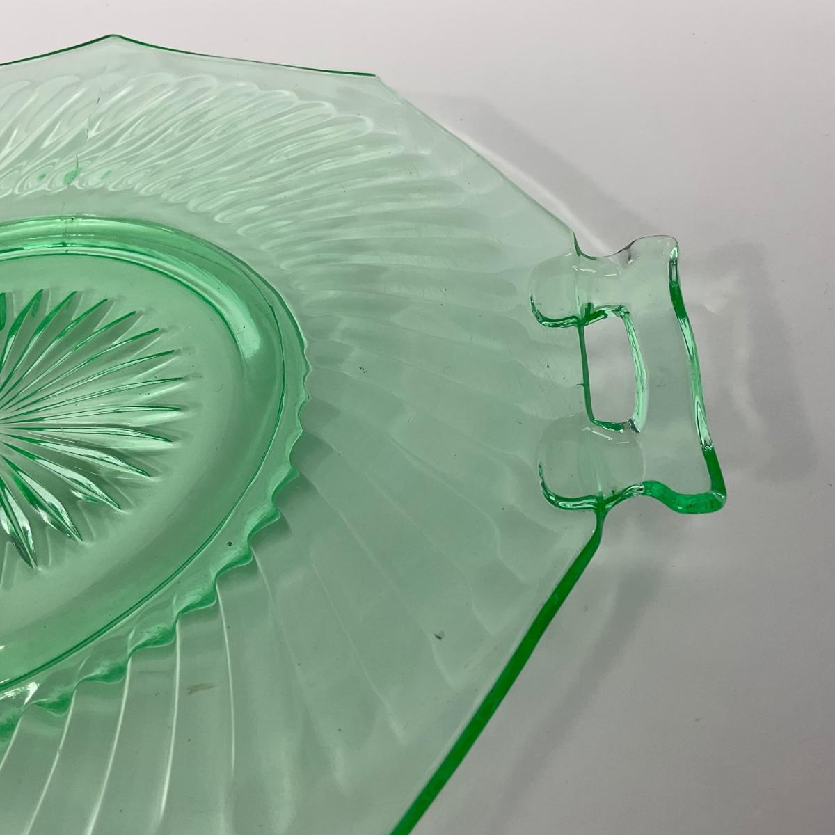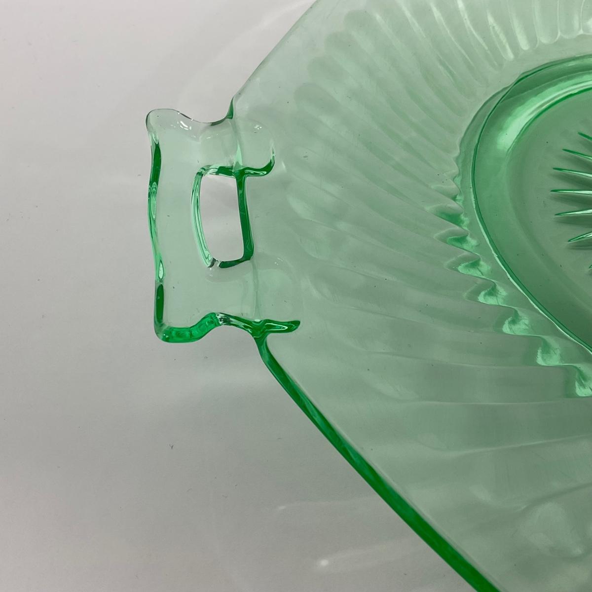 -149- URANIUM | Green Imperial Twisted Optic Cake Plate