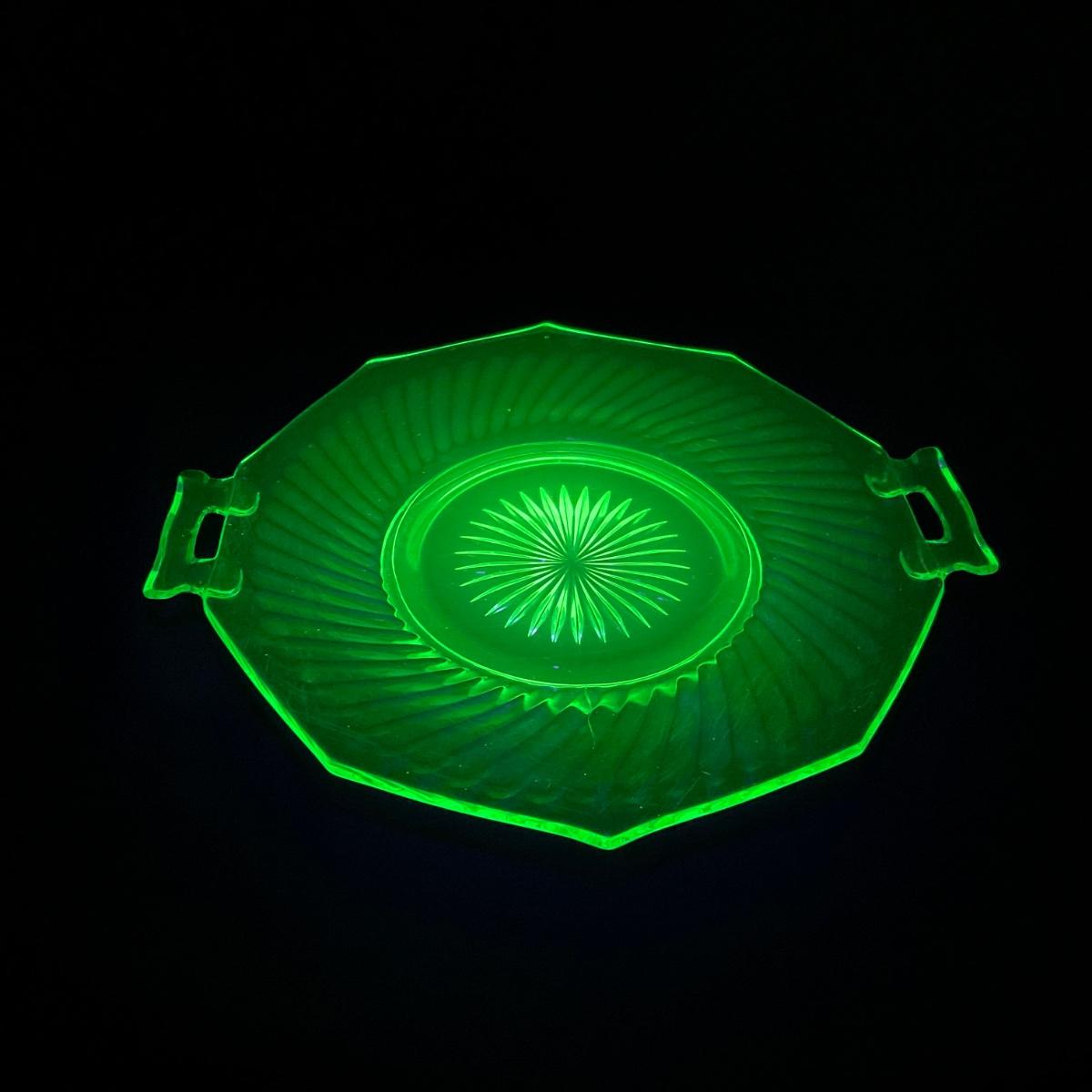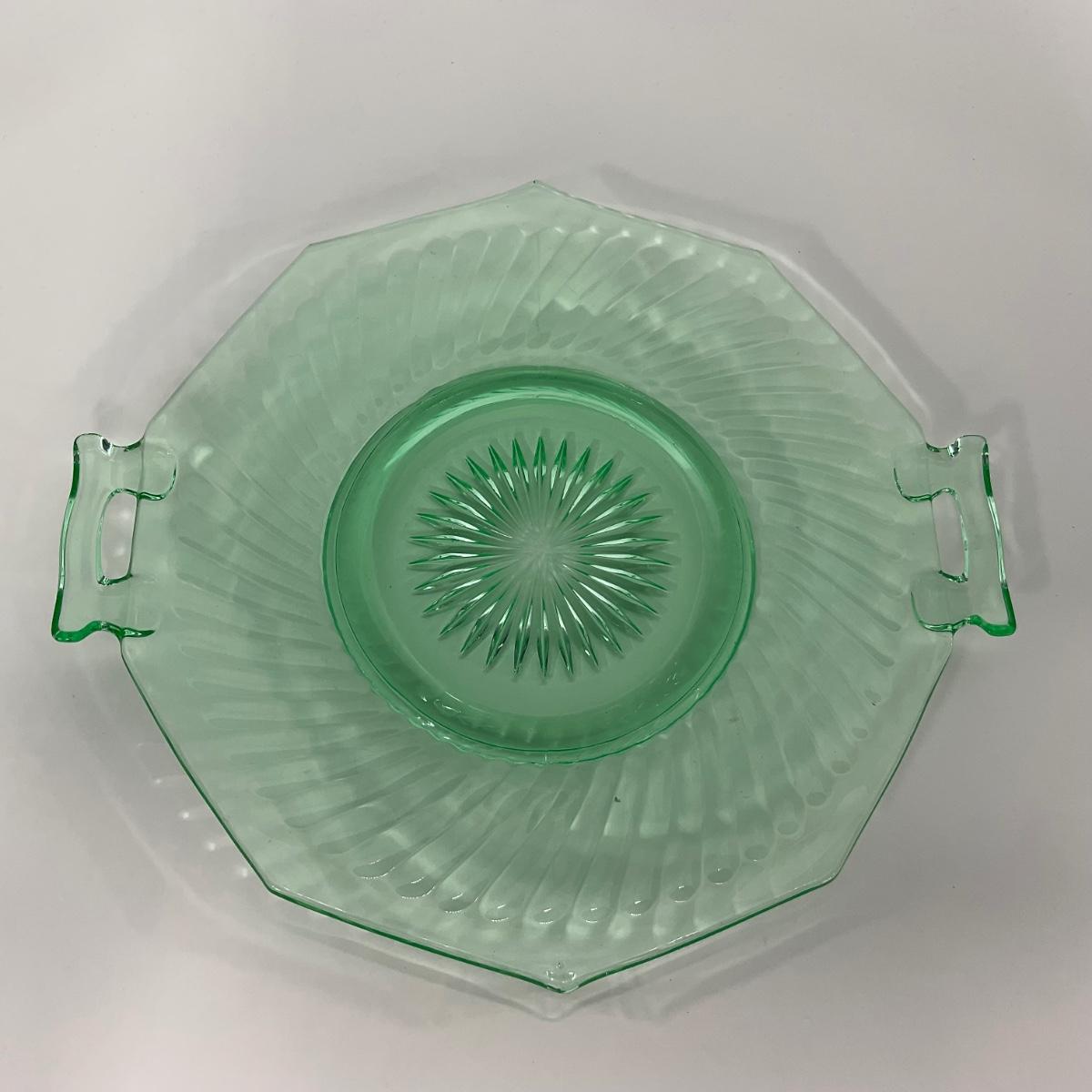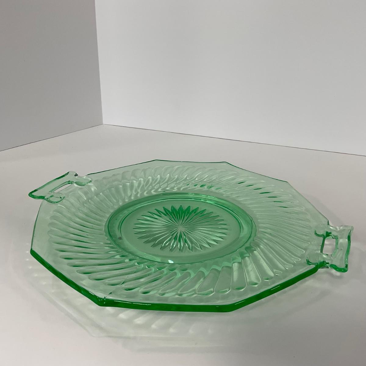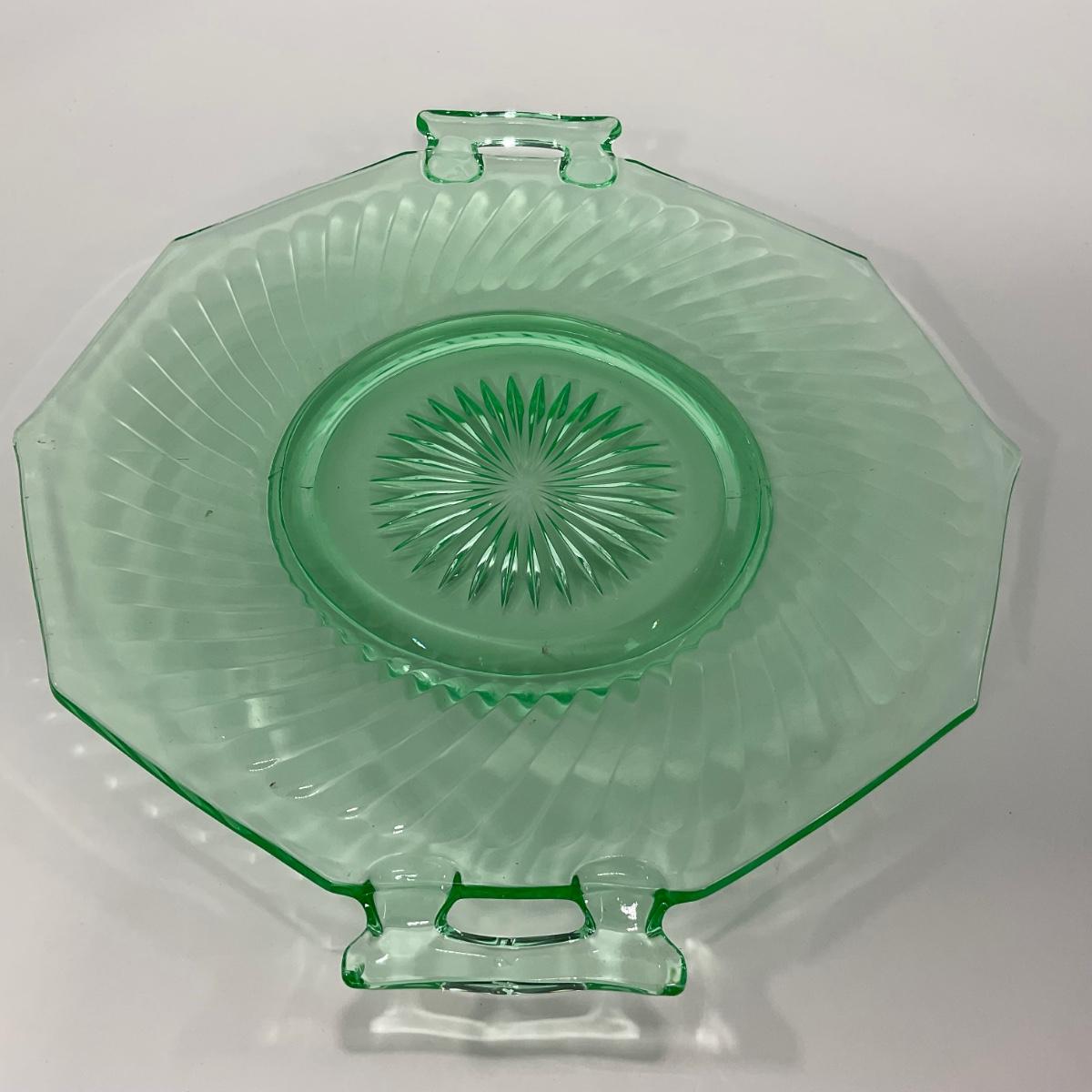 -149- URANIUM | Green Imperial Twisted Optic Cake Plate