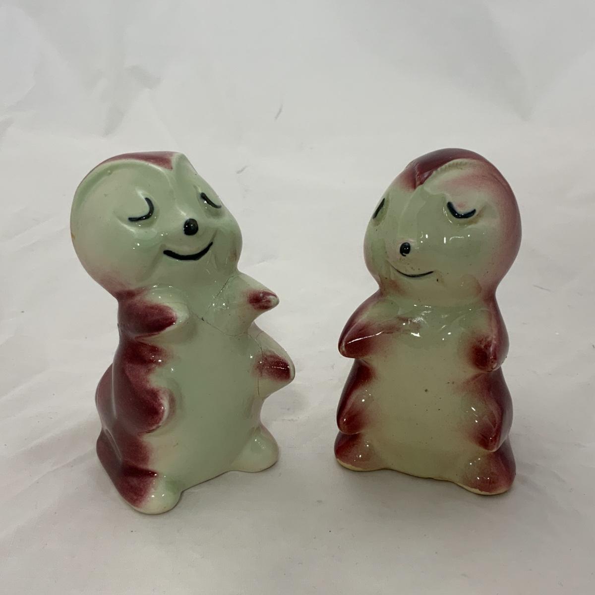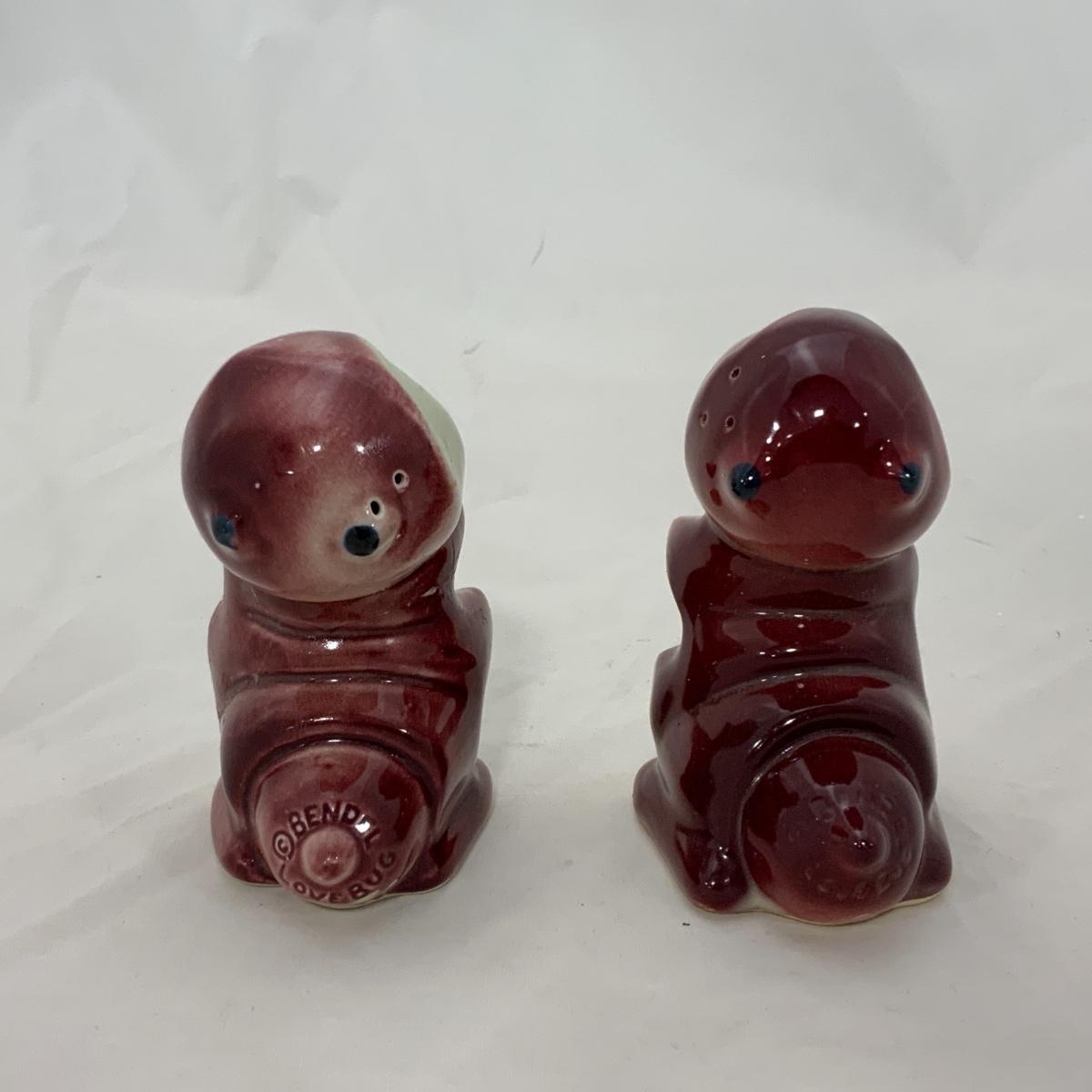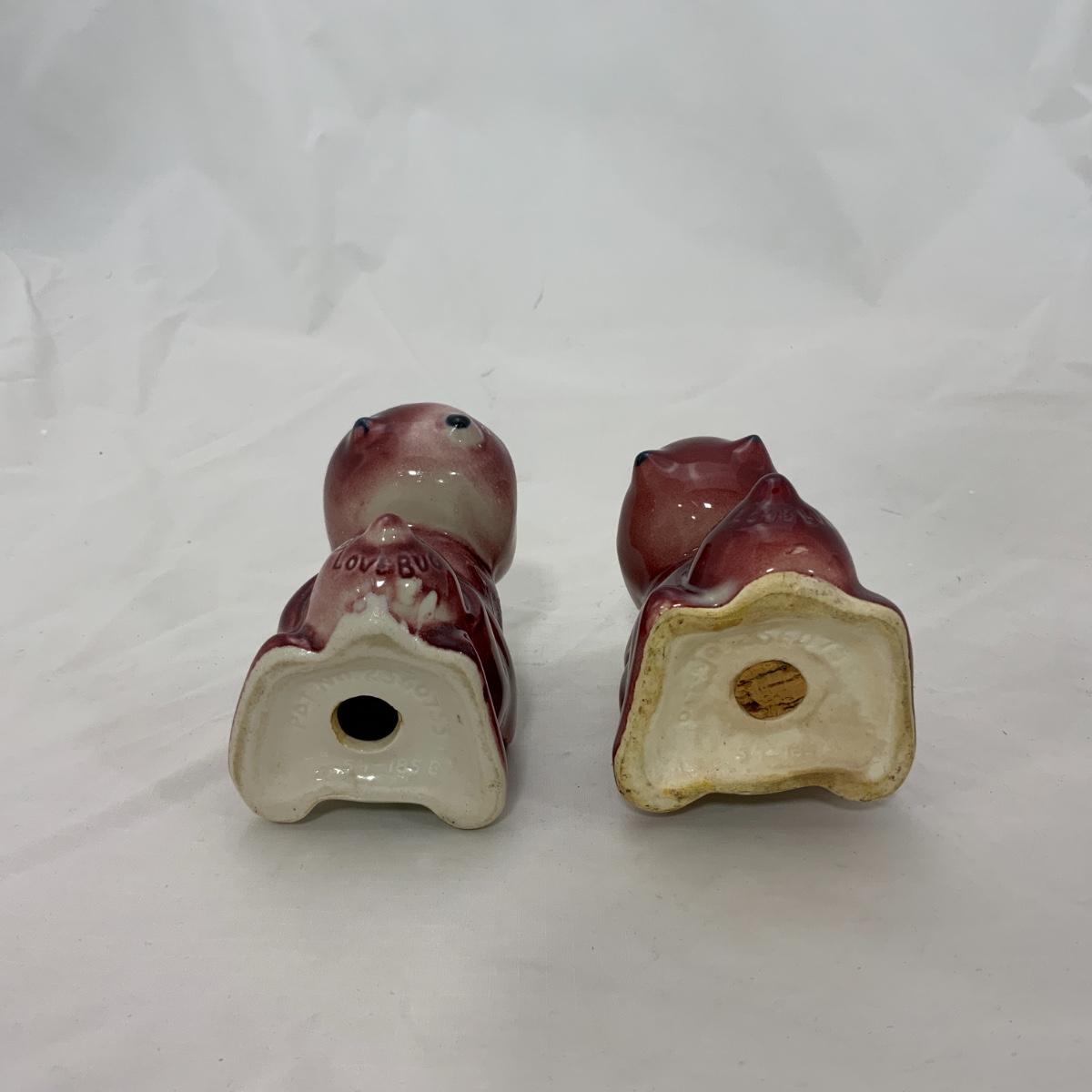 From the Estate of Peter and Alice Radovanovich: Vintage 1950s set of Love Bug Huggies, Copyright R. Bendel. One of them did take a tumble and has been repaired. PLEASE see photos for details and condition. ::: Shipping is NOT available on this lot. If you have any questions regarding this lot please contact the auctioneer either via this website, by direct email or by phone. PICK UP TIMES and other important information can be found in the TERMS and DESCRIPTION of the auction. Please take a look for pertinent information. Thanks!