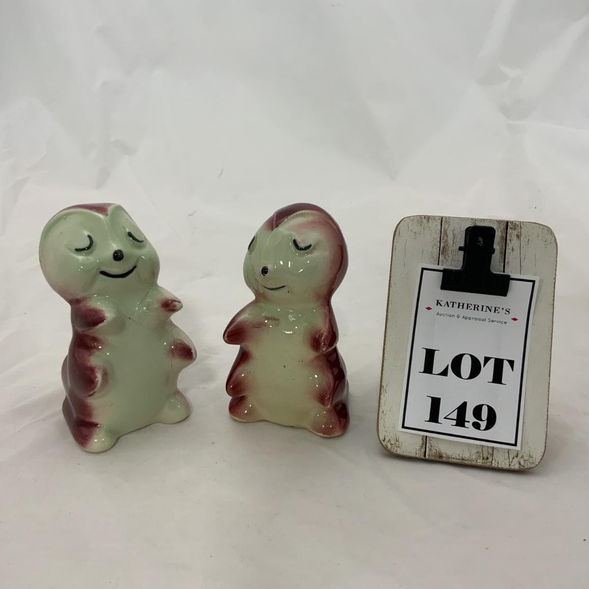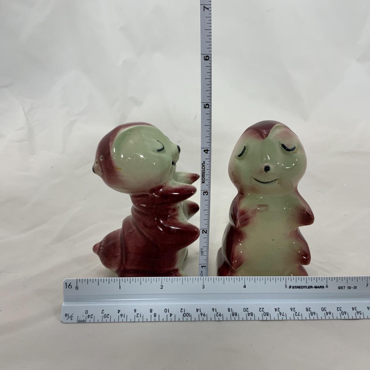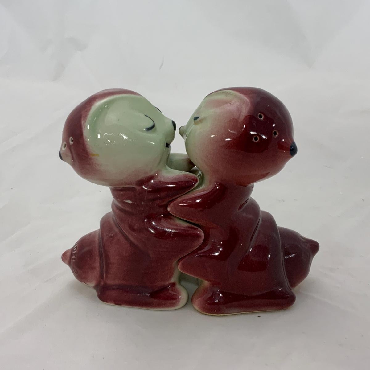 From the Estate of Peter and Alice Radovanovich: Vintage 1950s set of Love Bug Huggies, Copyright R. Bendel. One of them did take a tumble and has been repaired. PLEASE see photos for details and condition. ::: Shipping is NOT available on this lot. If you have any questions regarding this lot please contact the auctioneer either via this website, by direct email or by phone. PICK UP TIMES and other important information can be found in the TERMS and DESCRIPTION of the auction. Please take a look for pertinent information. Thanks!