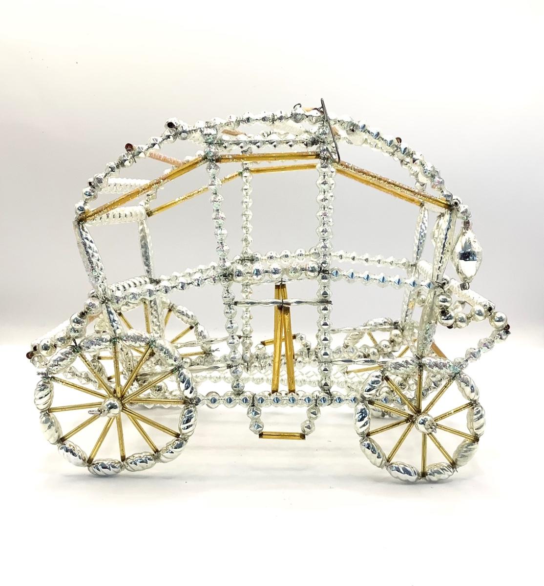 1490 Vintage Large Mercury Glass Carriage Ornament