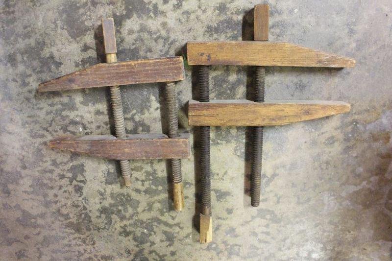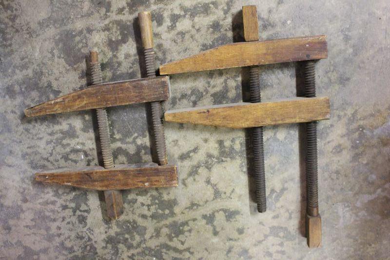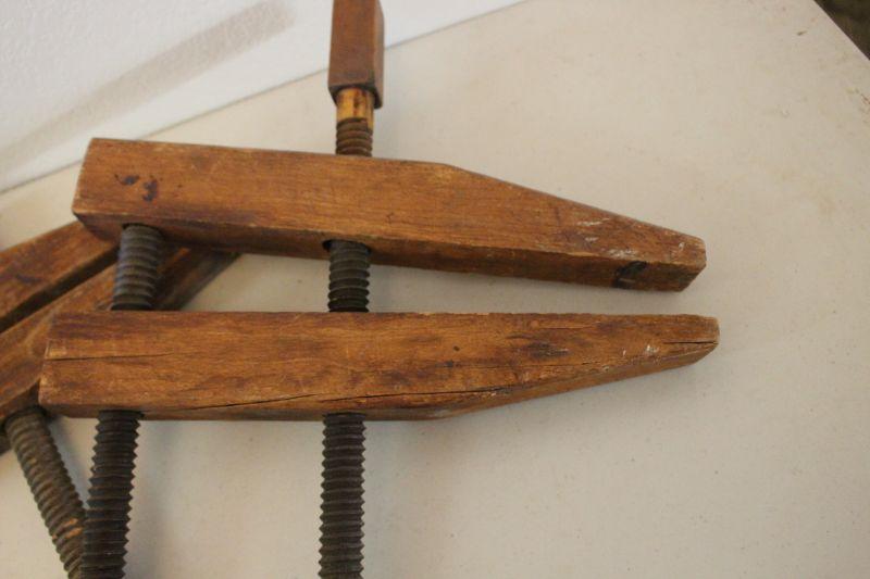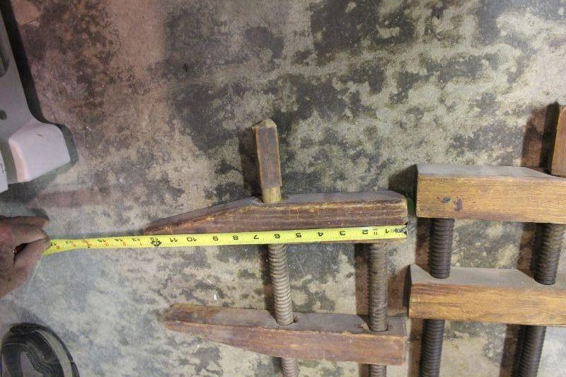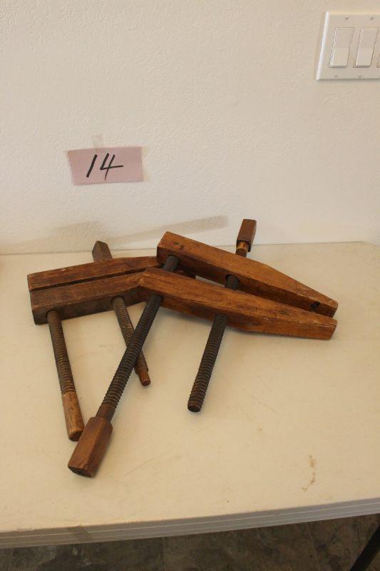 14-Antique Wood Carpenter Clamps w/ Wood Turn Screws (2) Unmarked