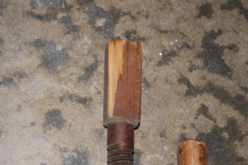 Antique Wood Carpenter Clamps w/ Wood Turn Screws (2) Unmarked -They do have cracks in the wood and one has a chip on the op of the crank. 14" clamp w/19 turn screw, 12" clamp w/14" turn screw