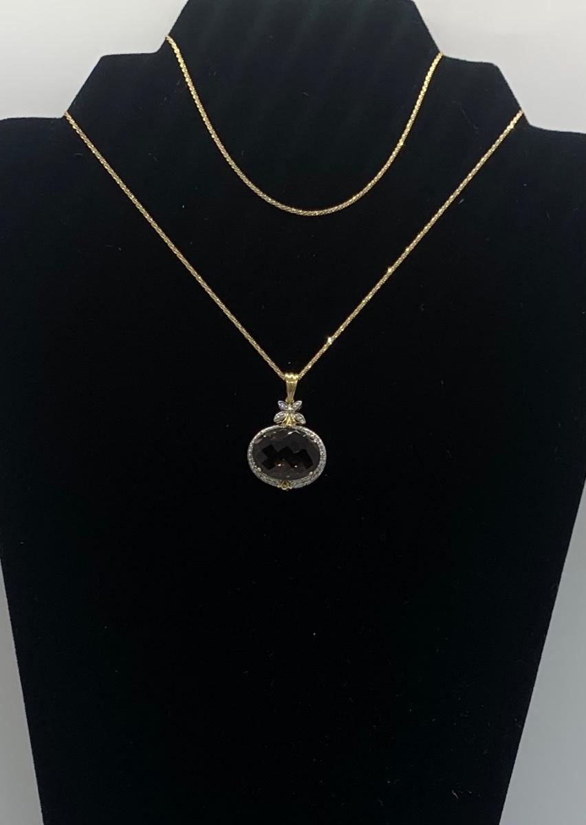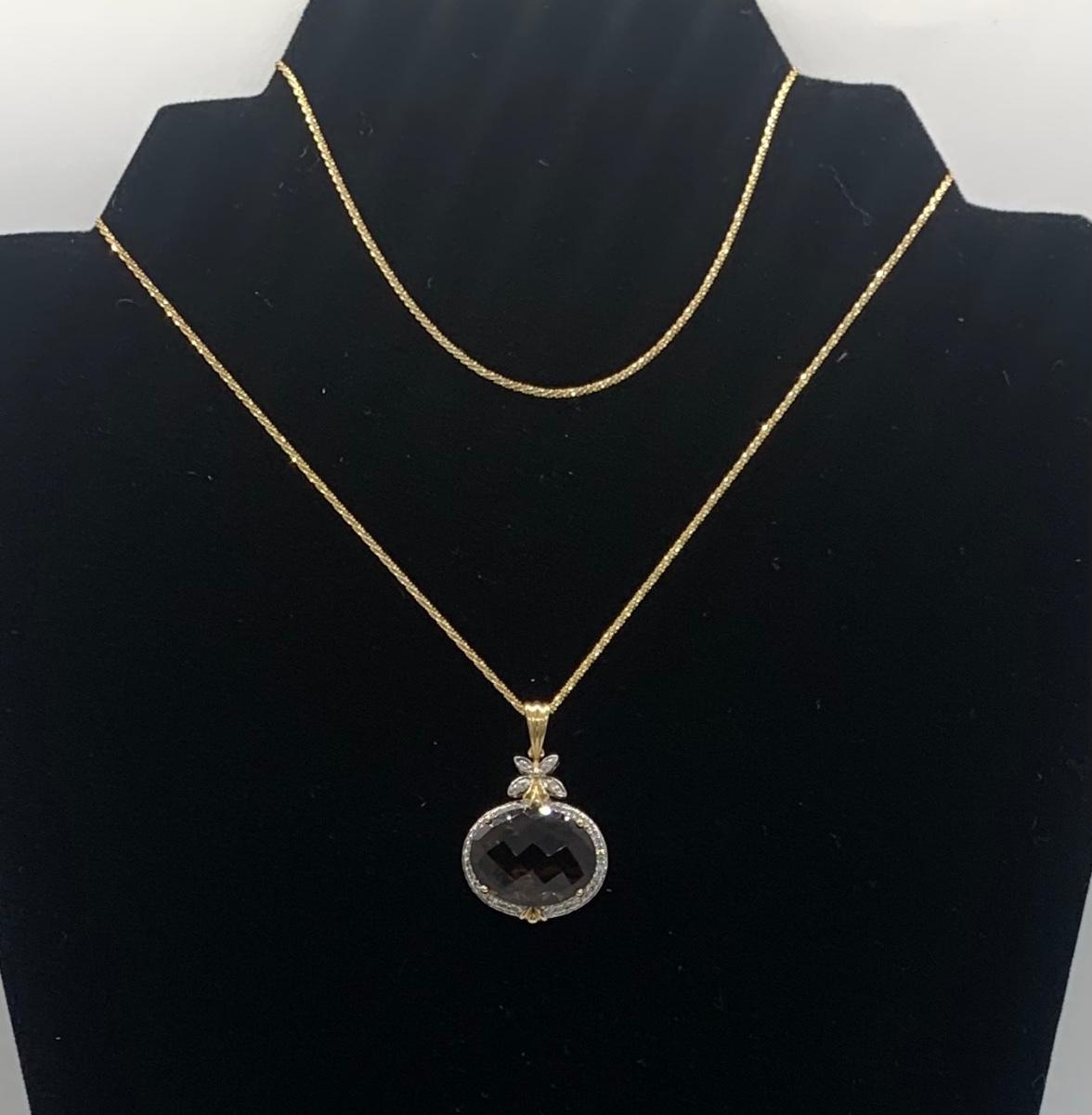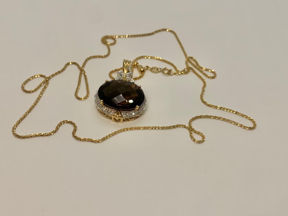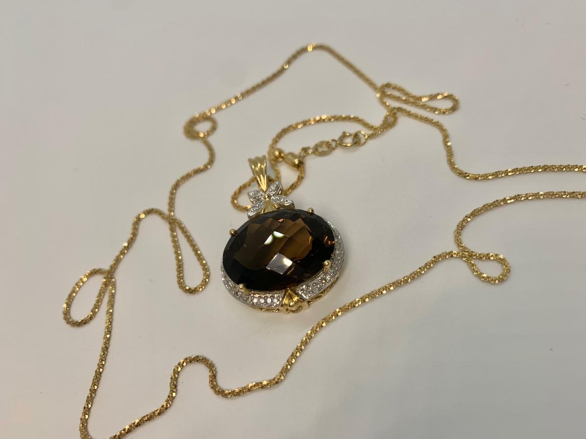 14k 10.4g Topaz and diamond pendant & adjustable slide chain.