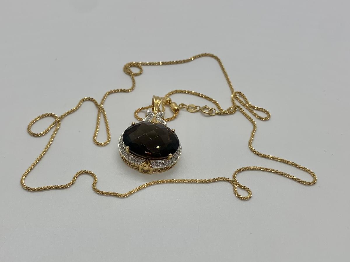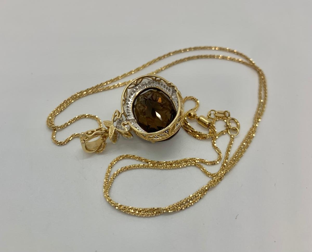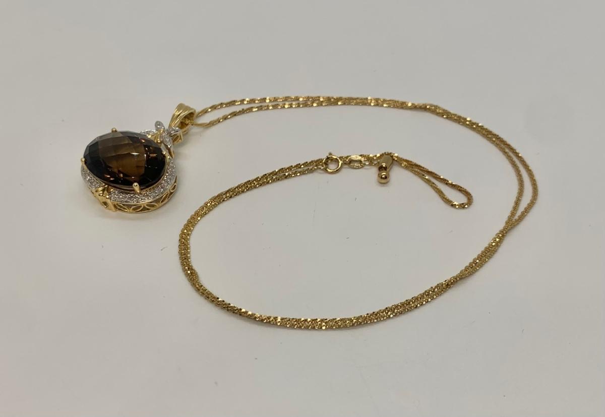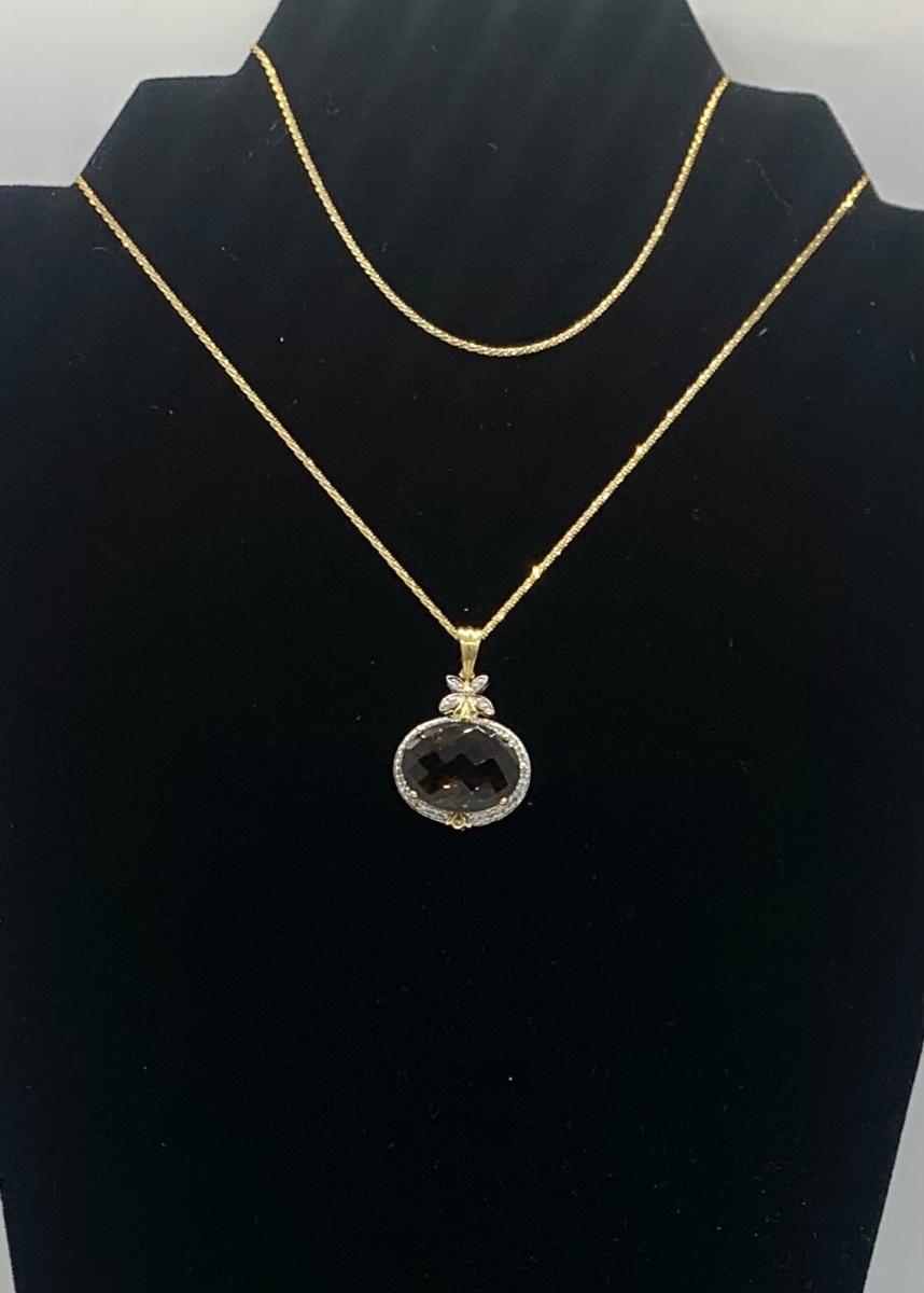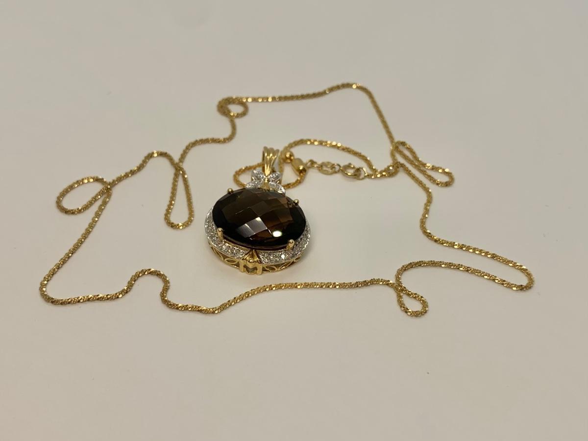14k 10.4g Topaz and diamond pendant & adjustable slide chain.
